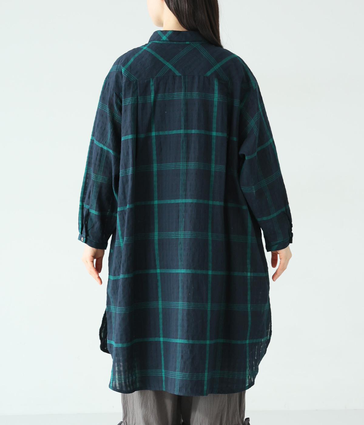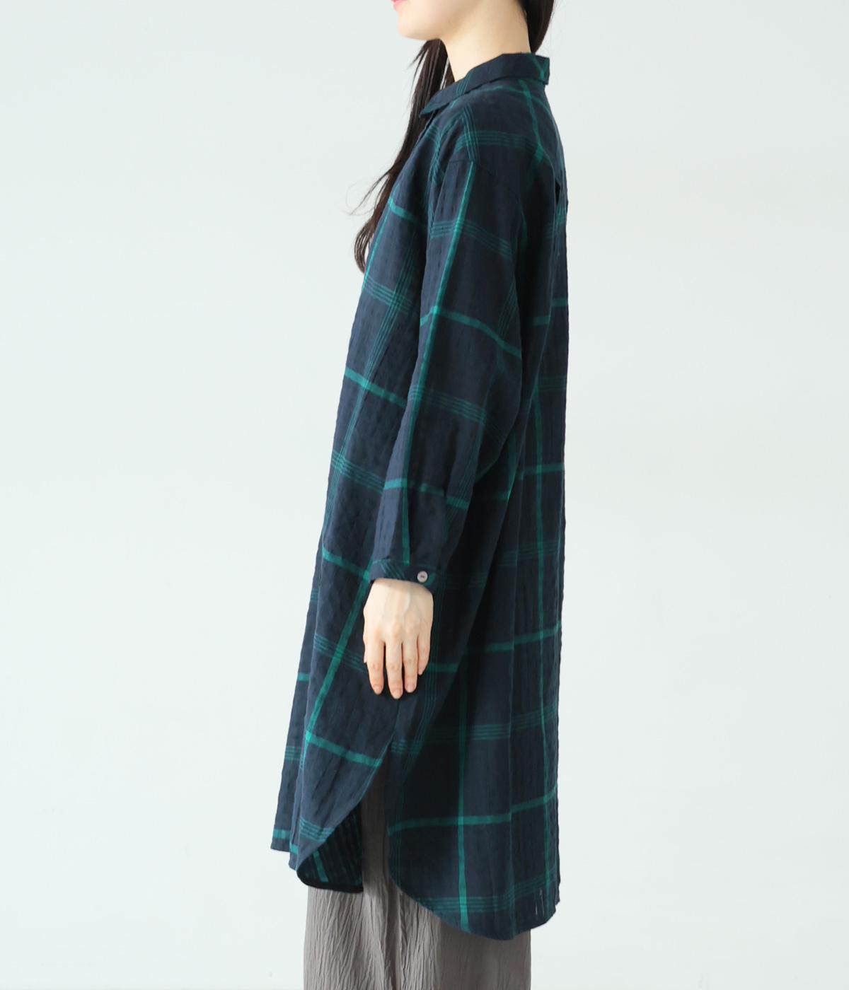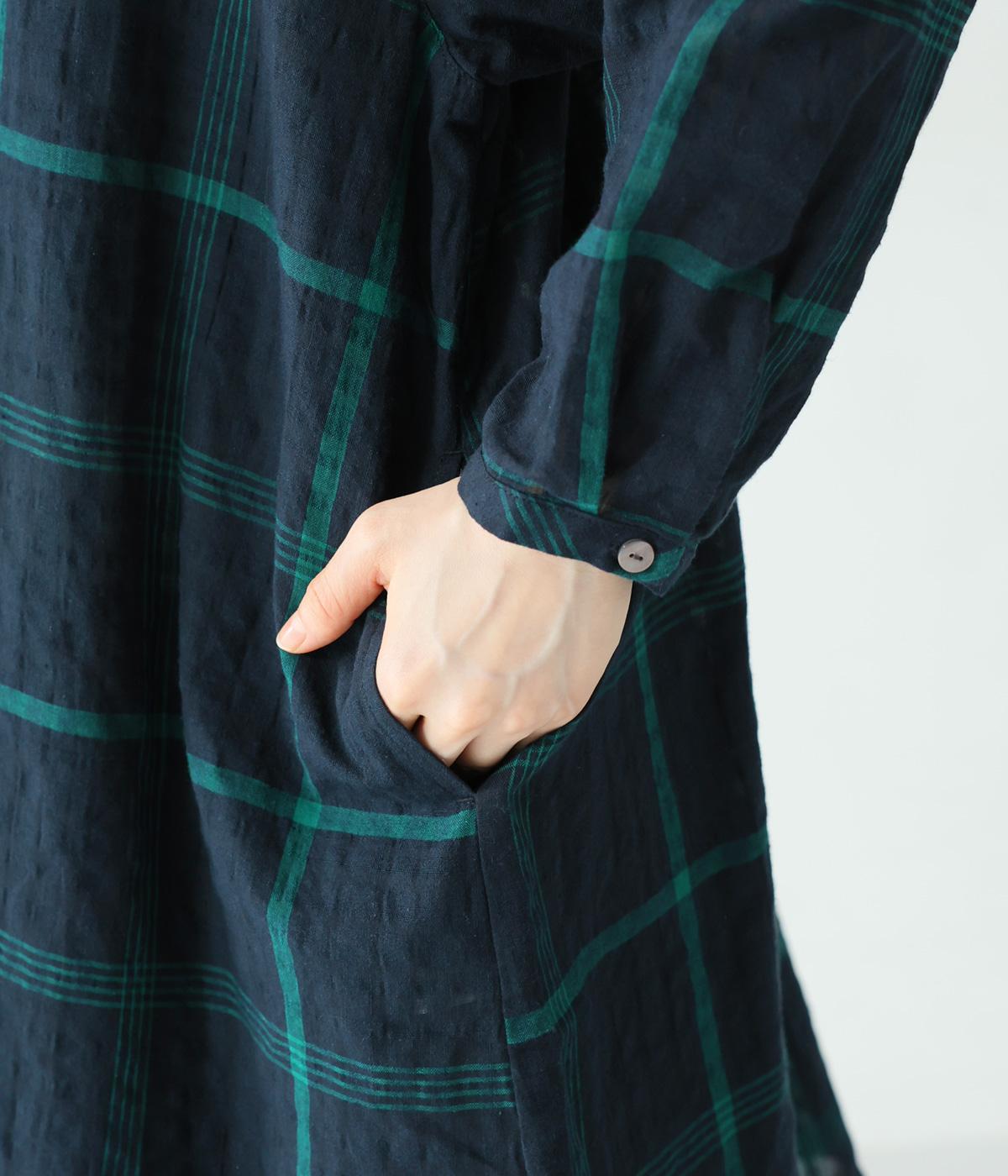 ドライタッチで清涼感のあるコットンリネン。かたさが軽減された、ふっくらとやわらかな肌ざわりです。シボ感のあるナチュラルな風合いがチェック柄に奥行きをもたらします。