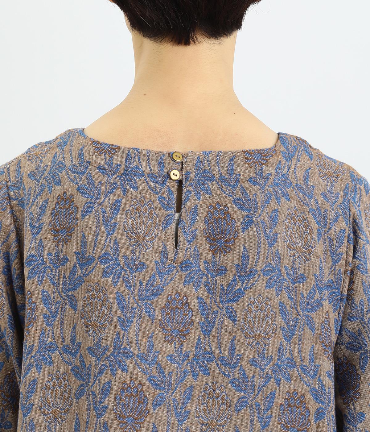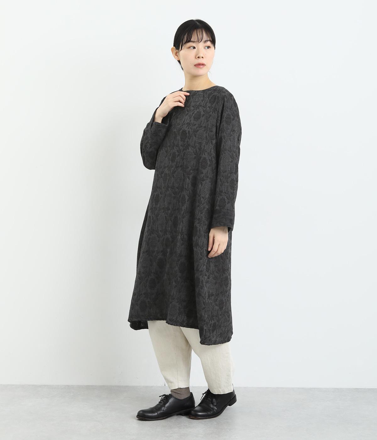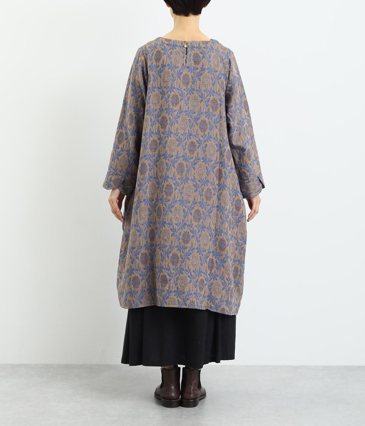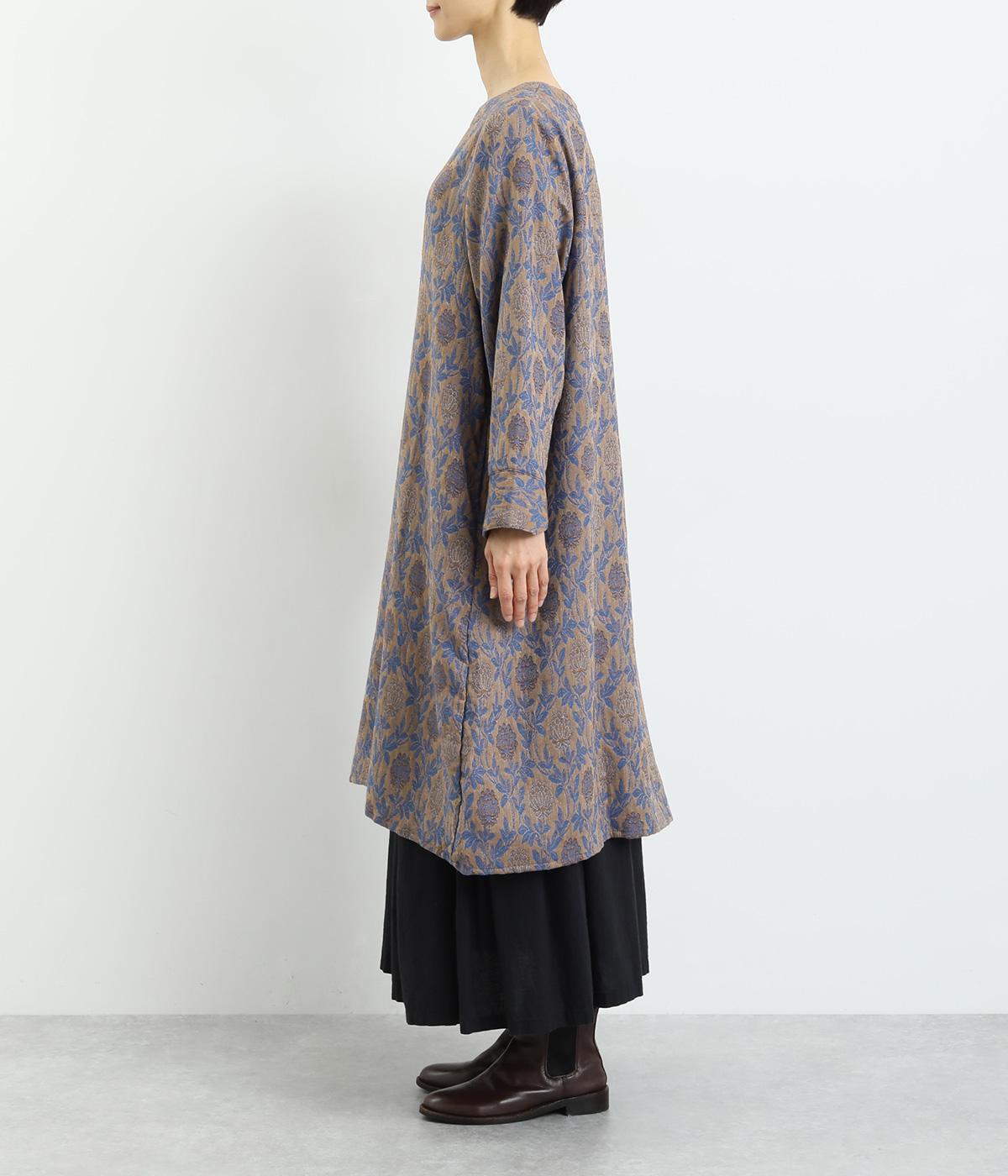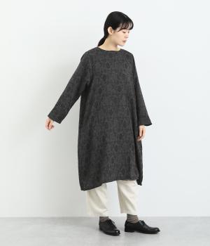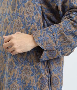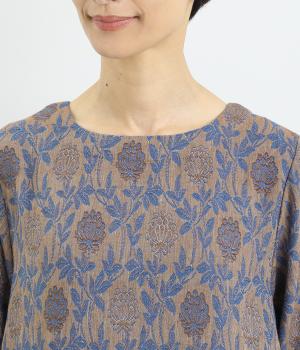 心地よい厚さでぬくもりを感じさせるコットンジャガードは肌ざわりもなめらか。品のある光沢感は女性らしさを感じさせます。ふくらみのある素材で花模様を表現しています。