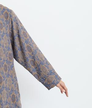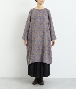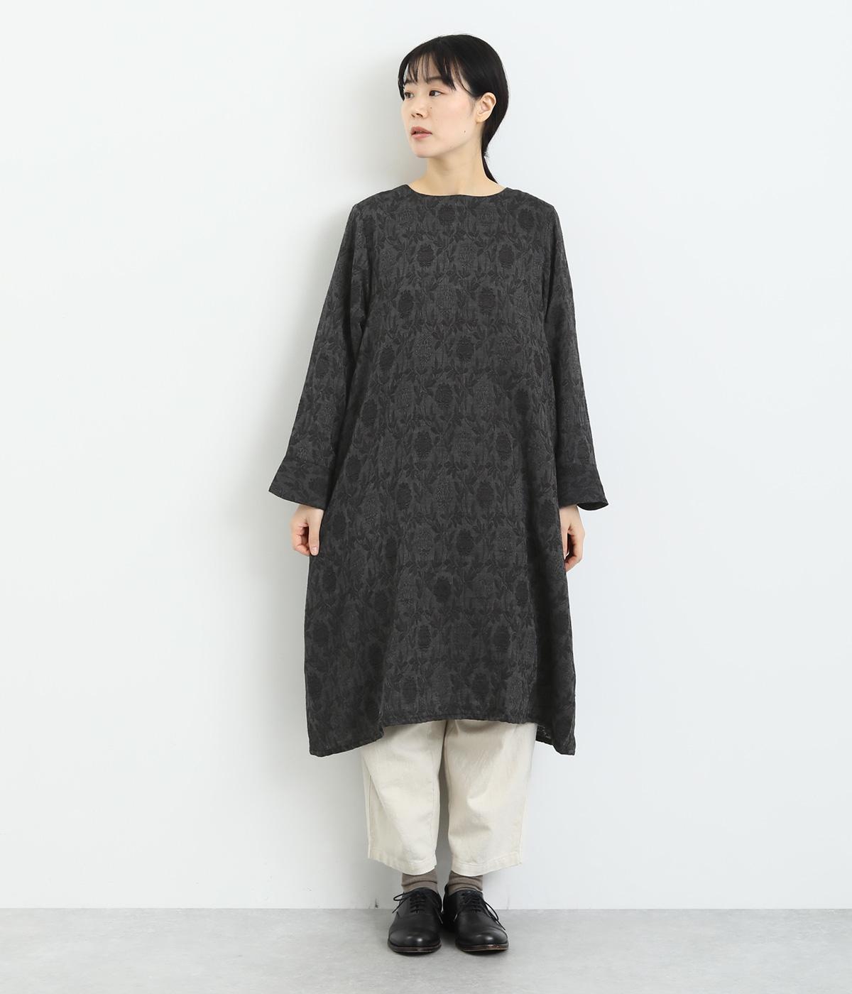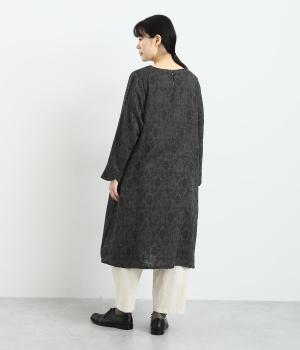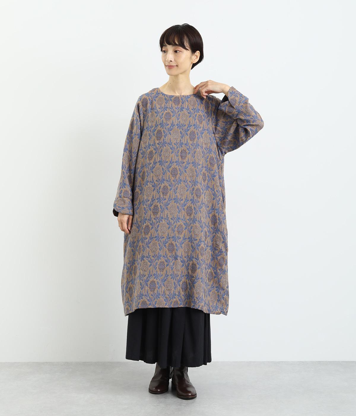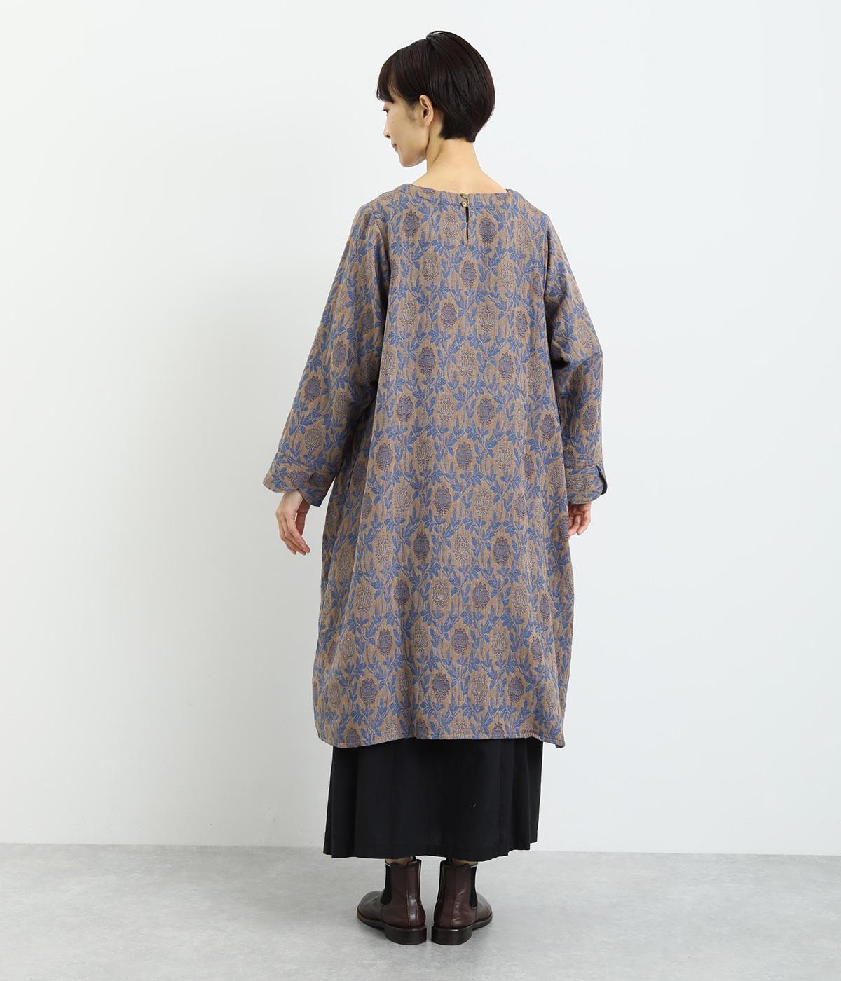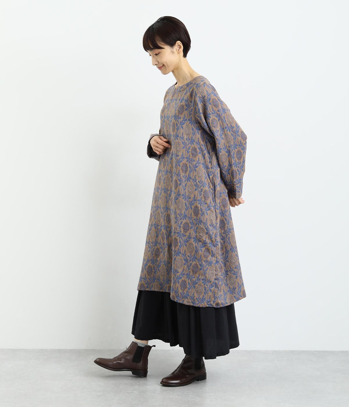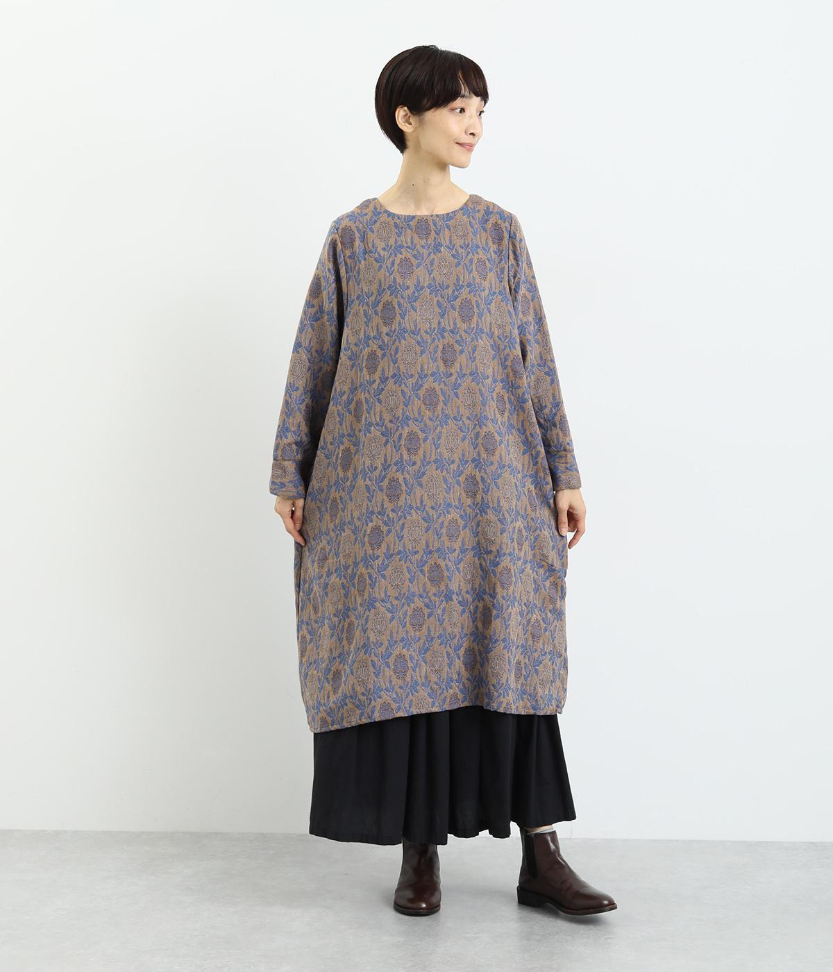 心地よい厚さでぬくもりを感じさせるコットンジャガードは肌ざわりもなめらか。品のある光沢感は女性らしさを感じさせます。ふくらみのある素材で花模様を表現しています。