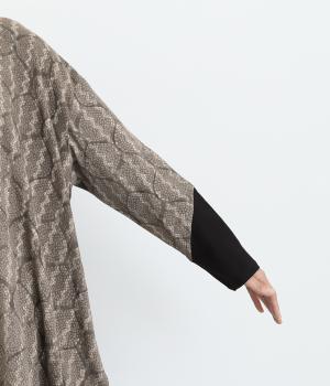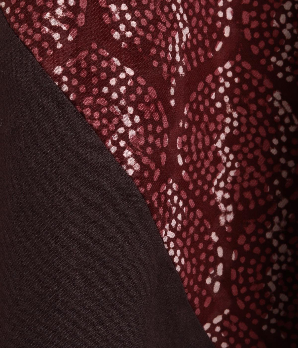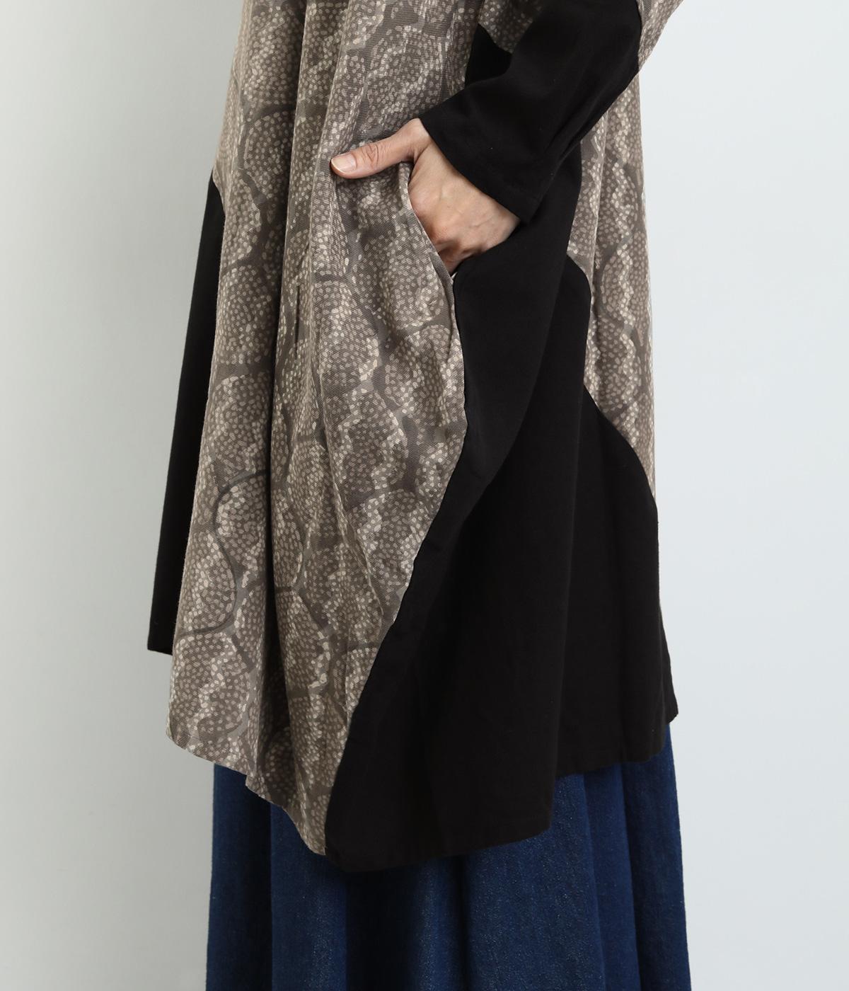 やや厚みのあるコットンで、生地の動きが楽しめる一枚です。さまざまな表情をみせてくれる異なる生地のコントラストで、個性的な雰囲気をつくりだせます。