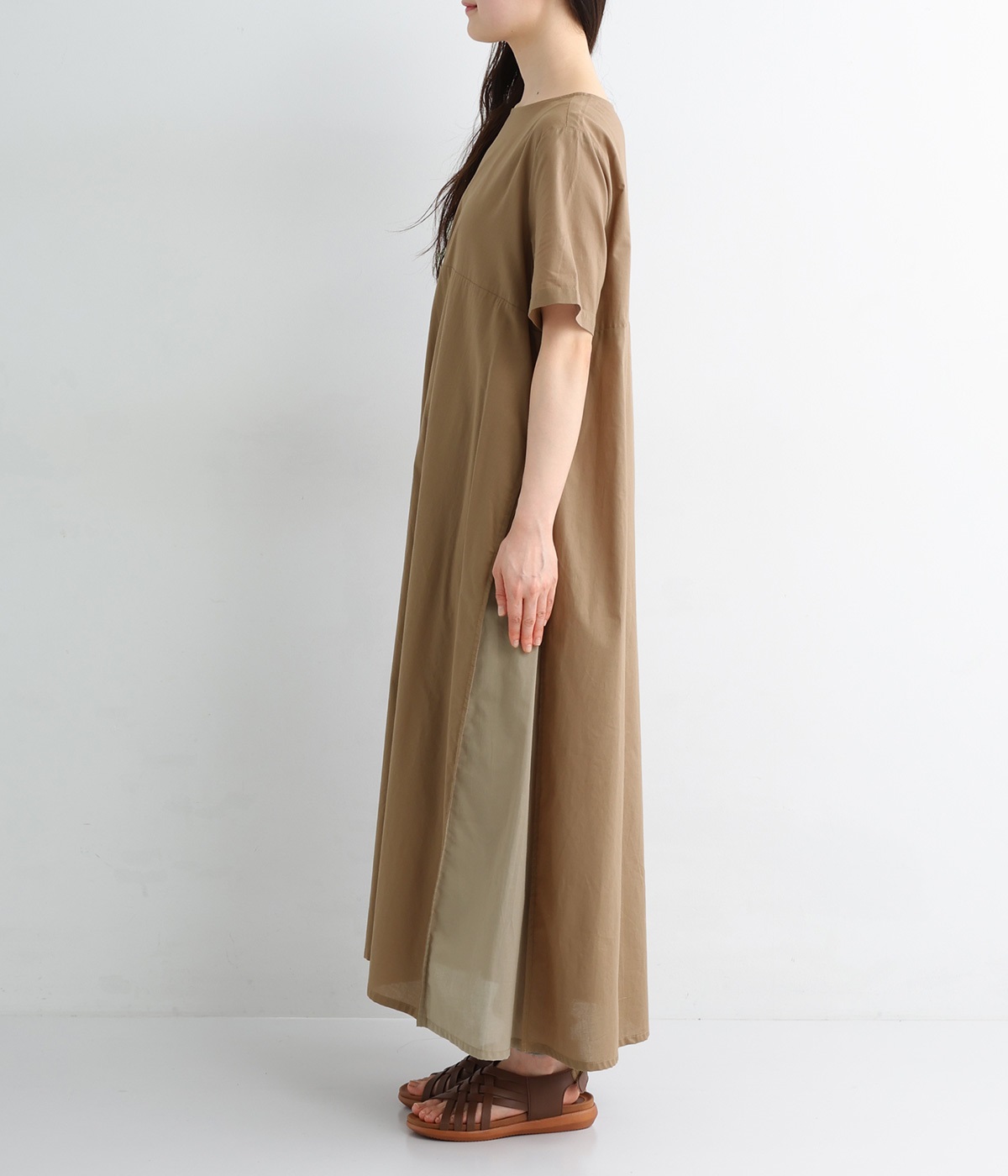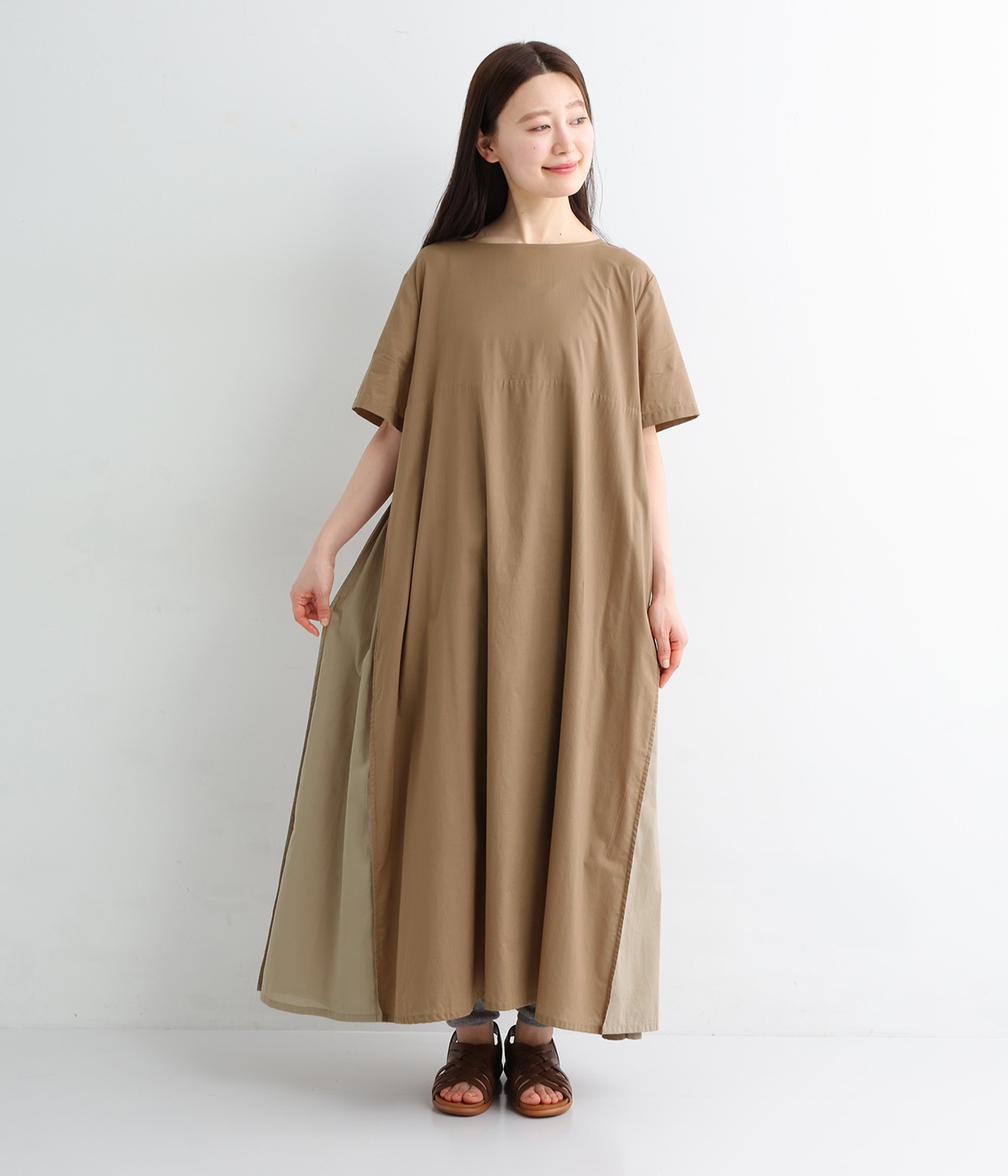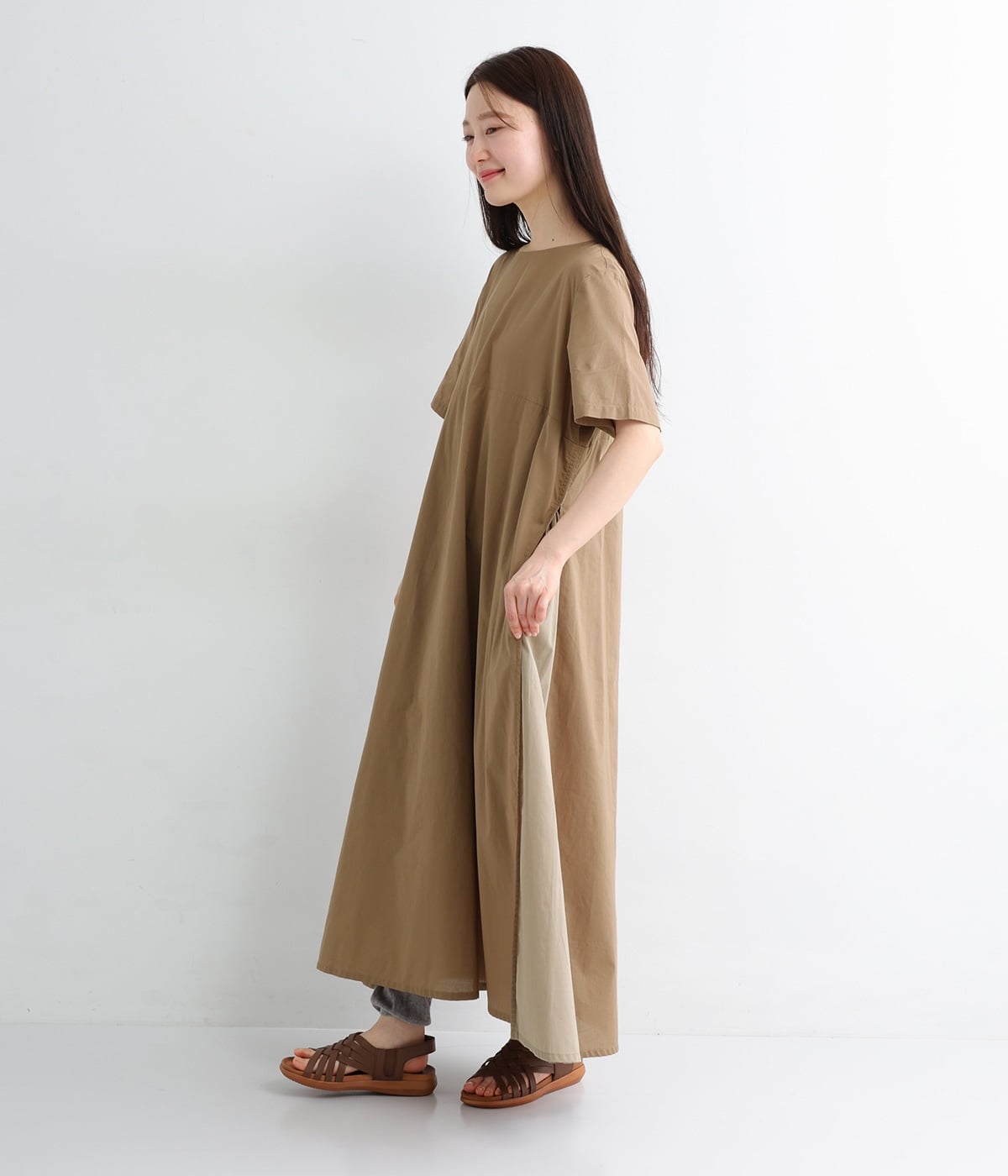 サイド異素材切り替えワンピース(モカ-ONESIZE)