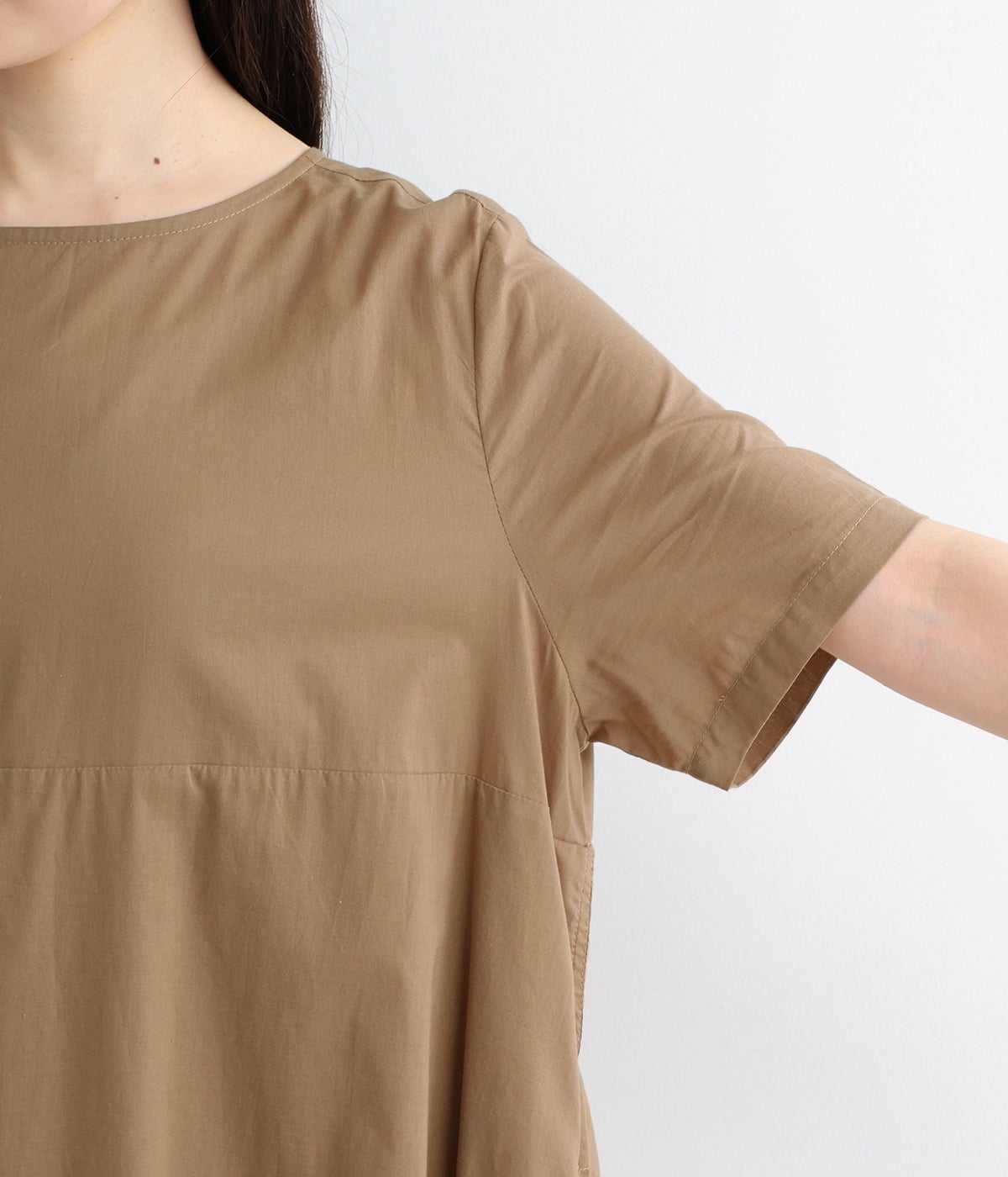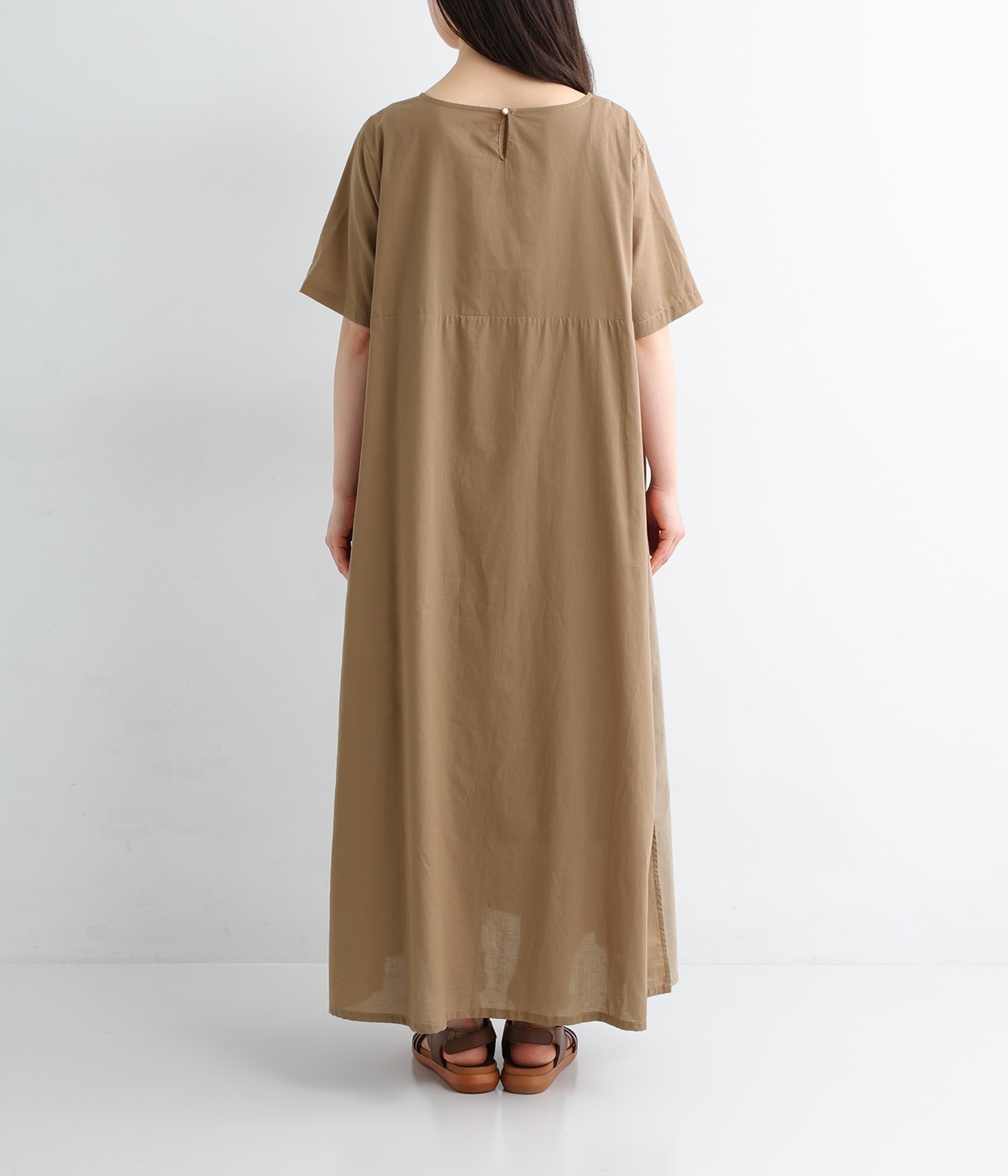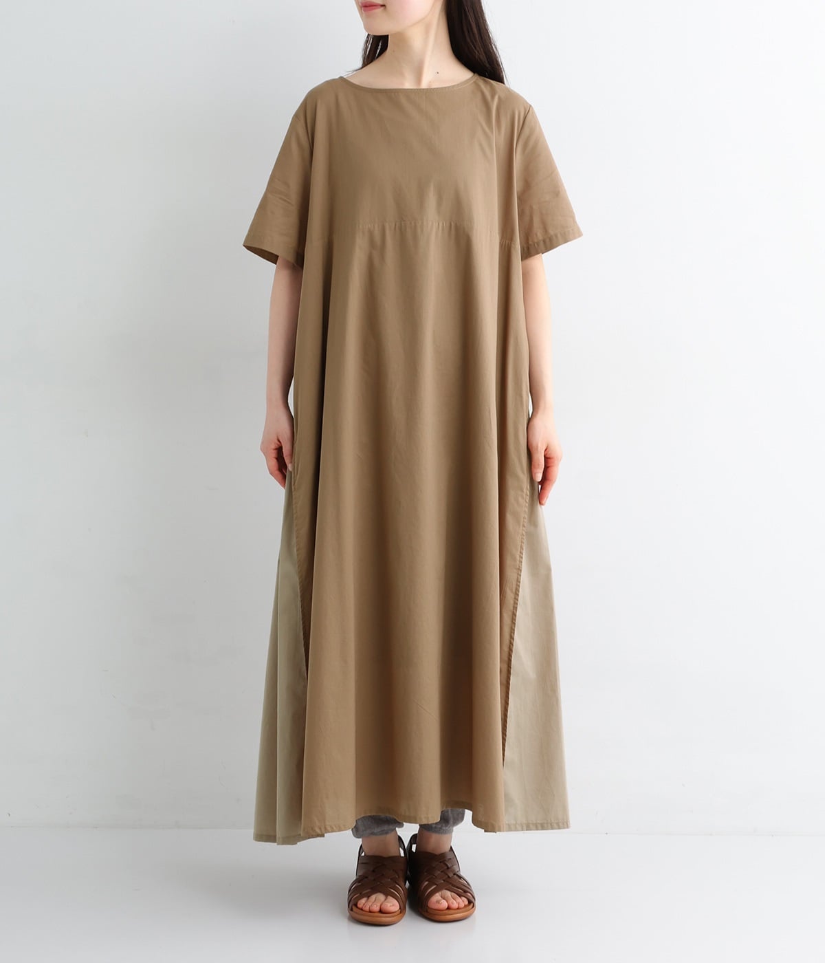 サイド異素材切り替えワンピース(モカ-ONESIZE)