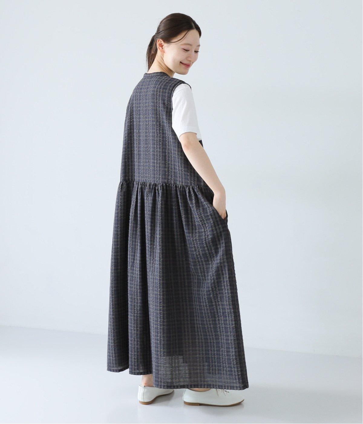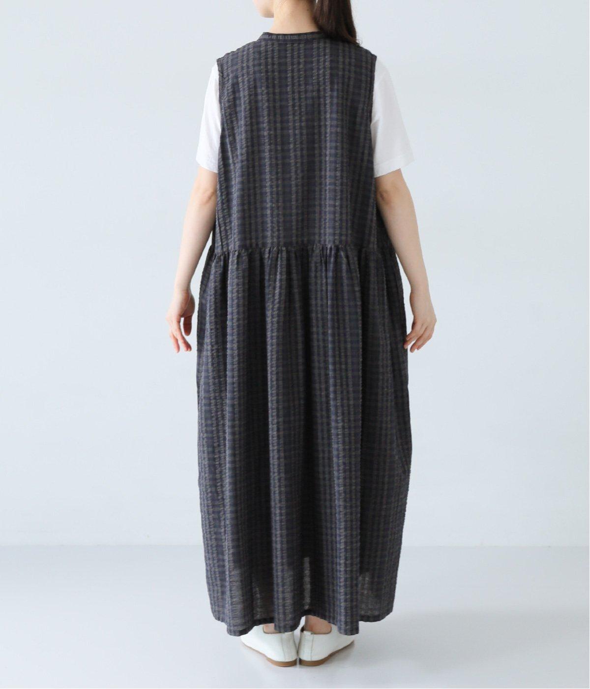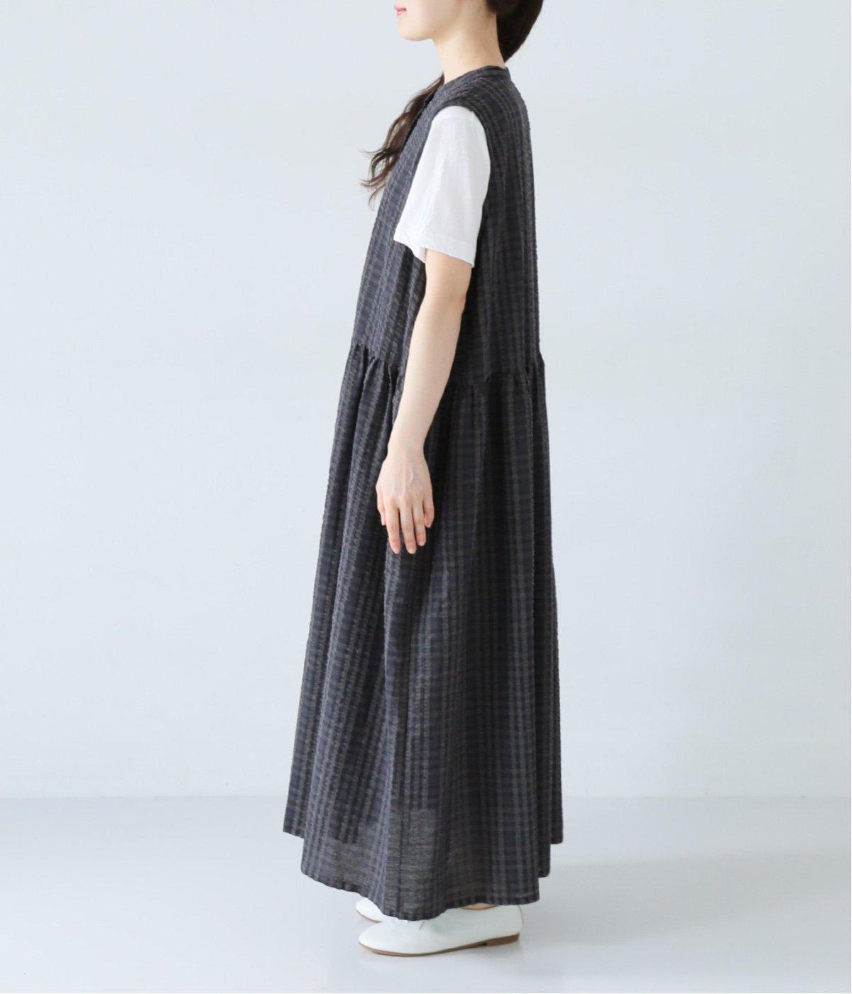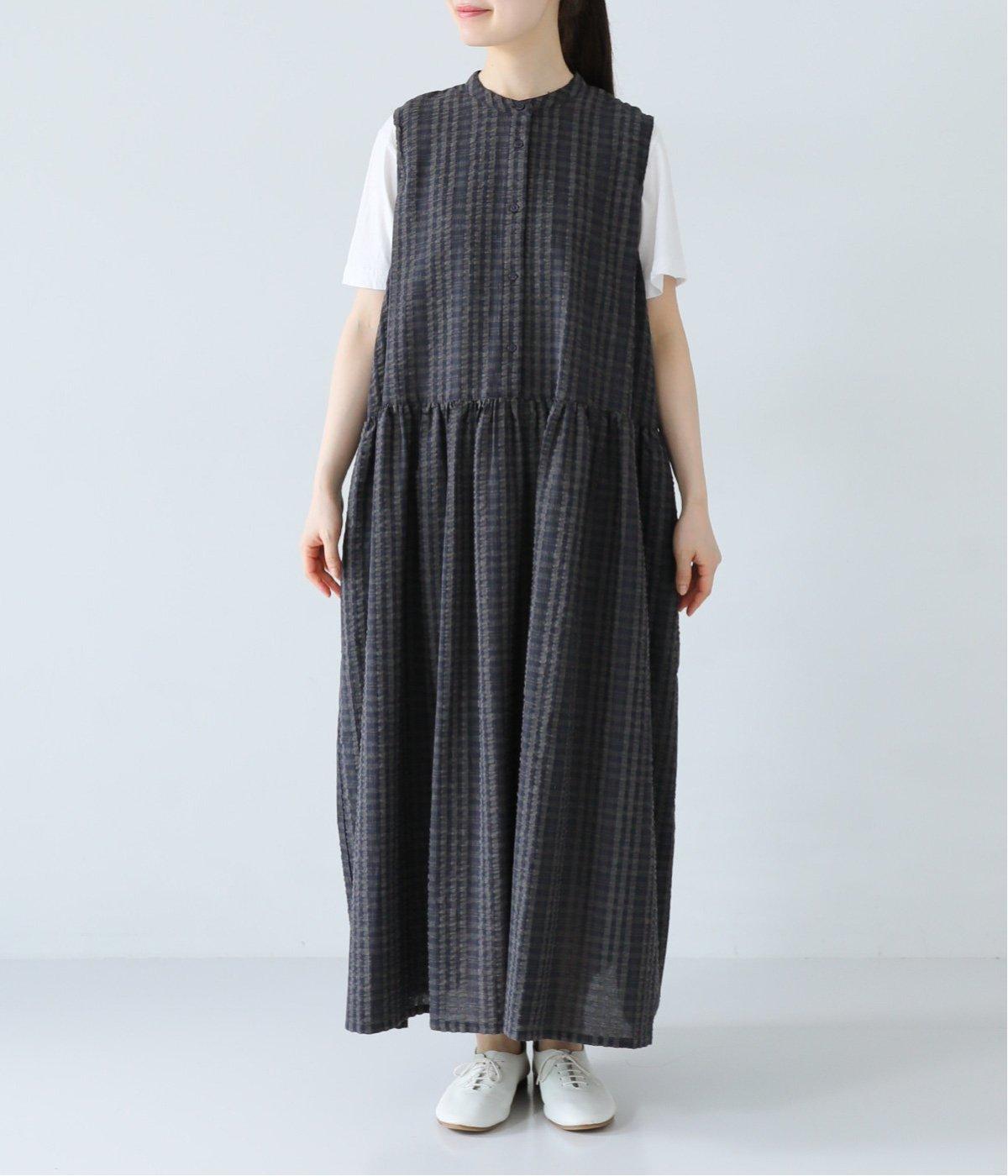 ウエスト位置にたっぷりとギャザーを入れた、女性らしいふわりとしたシルエットが素敵なワンピースです。サッカー生地を使用し、分量感のあるシルエットも軽やかな仕上がりに。一枚着ではもちろん、Tシャツやカーディガンとのレイヤードでロングシーズン着まわせます。
