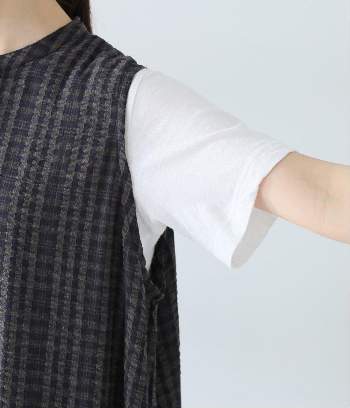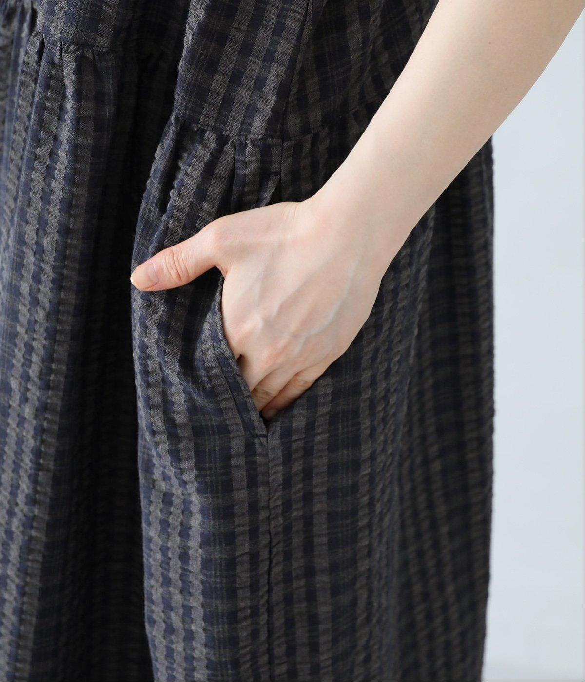 ぽこぽことした凹凸感のある、チェック柄のサッカー生地を使用しています。薄手で軽く、通気性が良いので汗ばむ時期にもぴったり。ご自宅で手洗い可能なのも嬉しいポイントです。