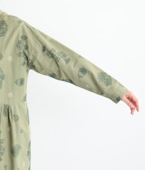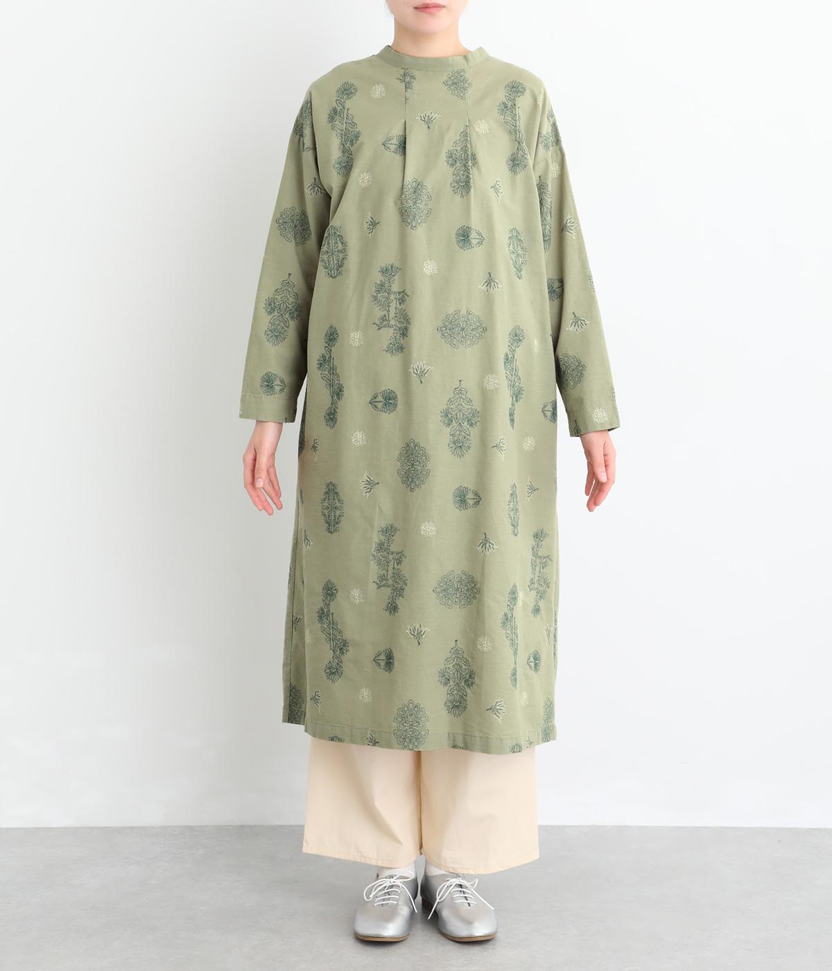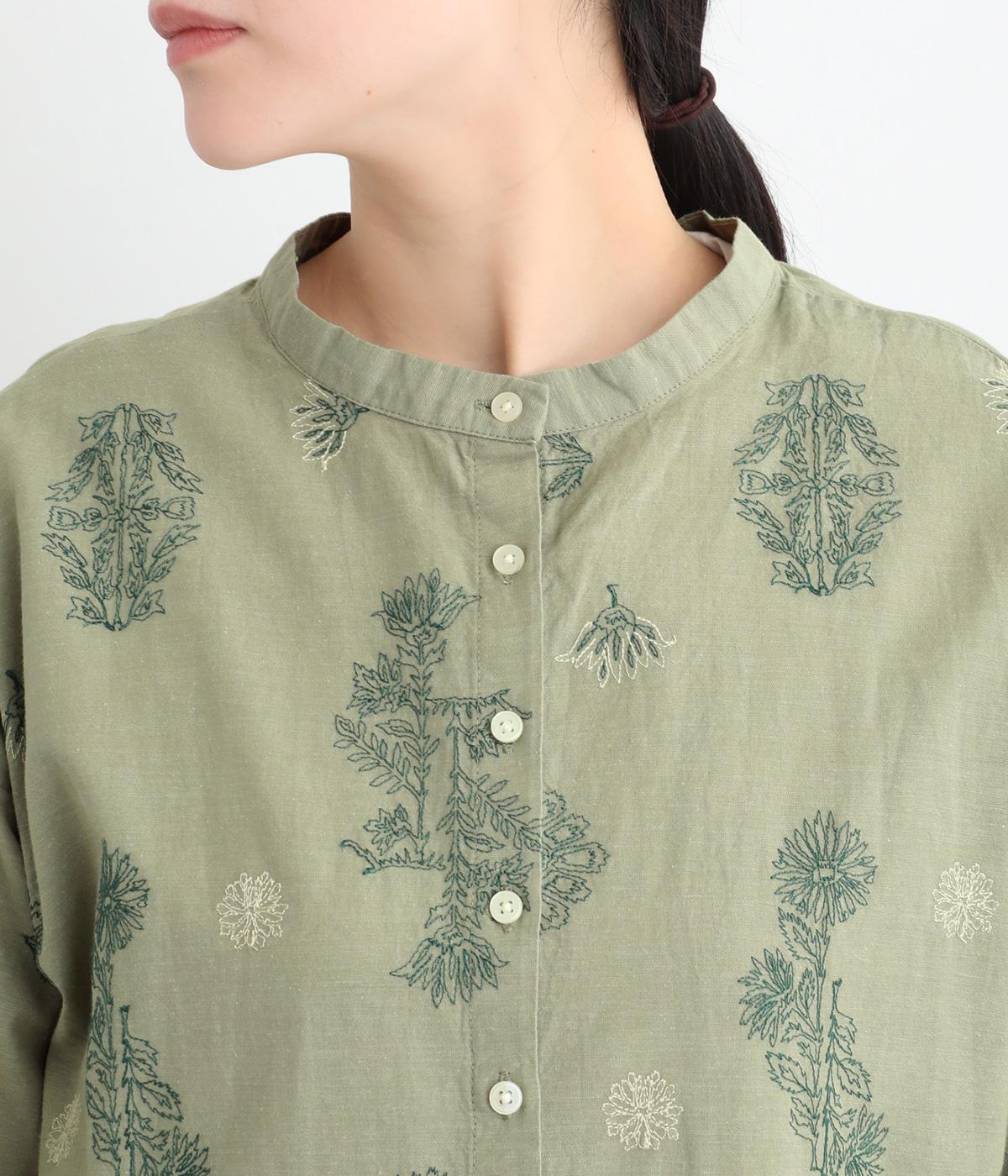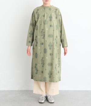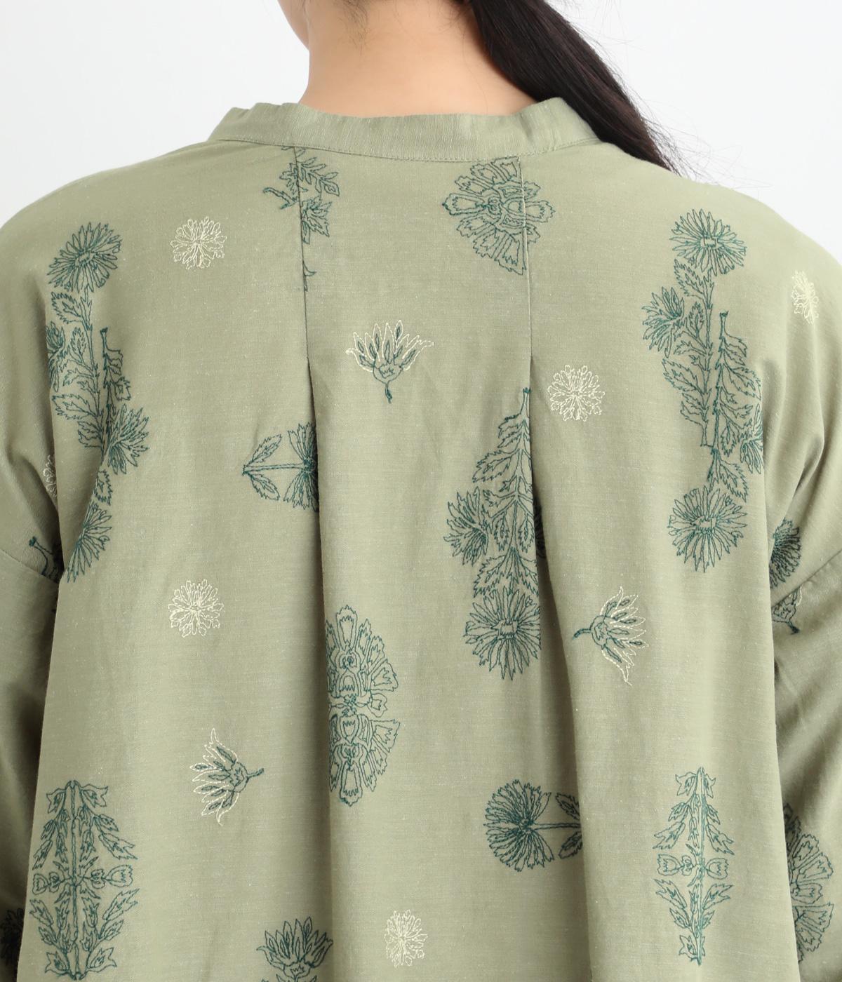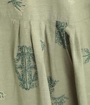 やや薄手で軽やかなコットンリネン生地に総柄刺しゅうをあしらいました。通気性に優れ涼やかな素材感で、快適な着心地です。洗うたびに風合いを増す雰囲気も魅力です。