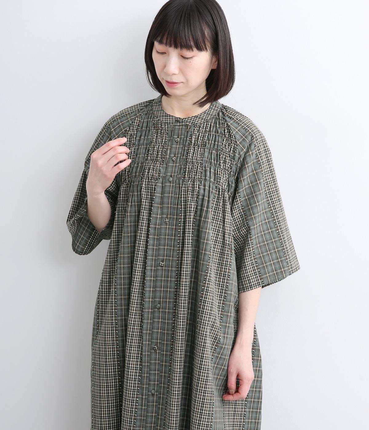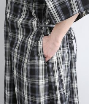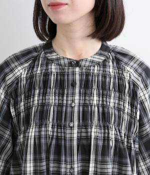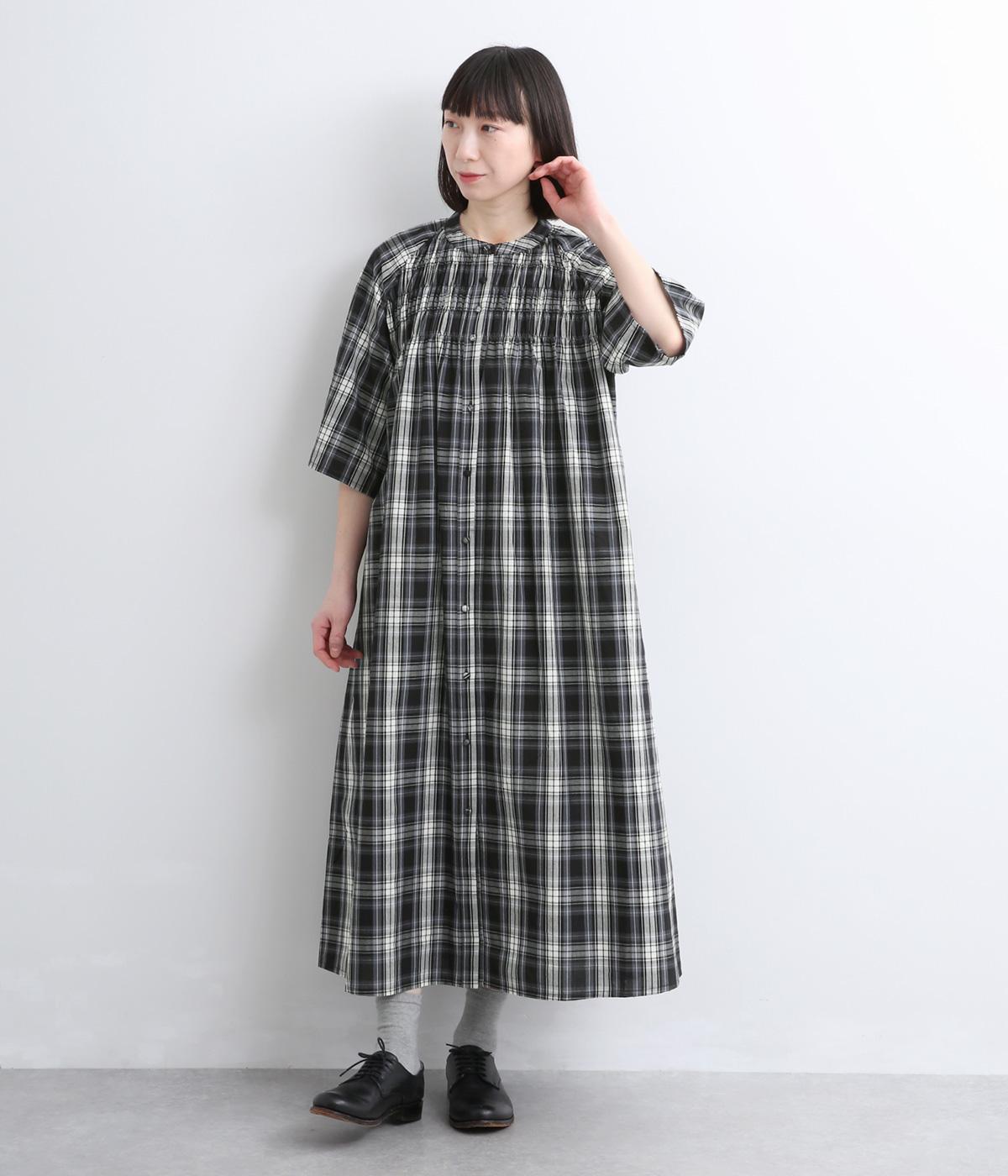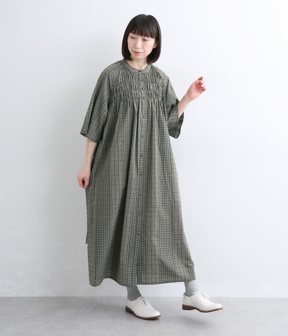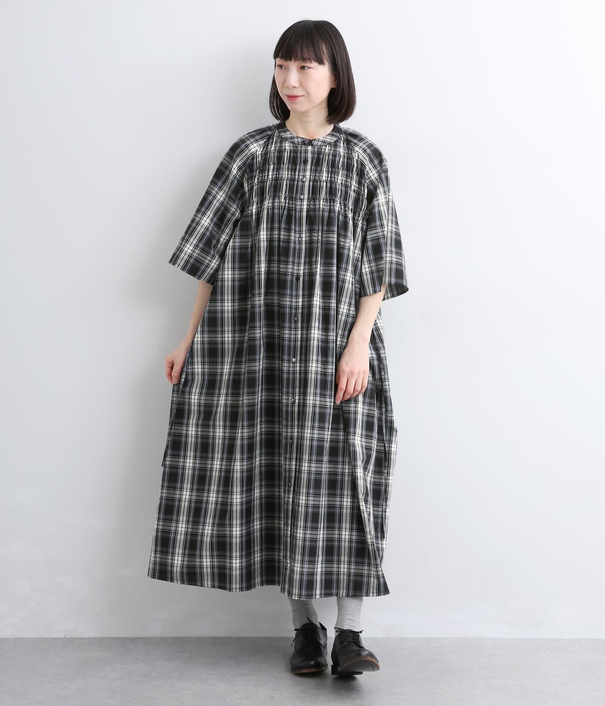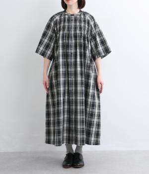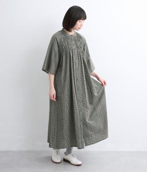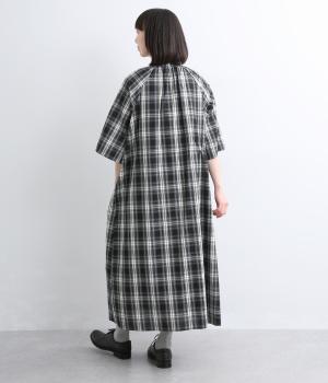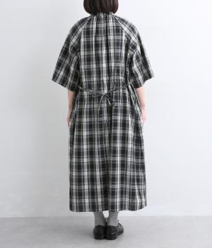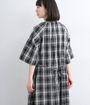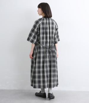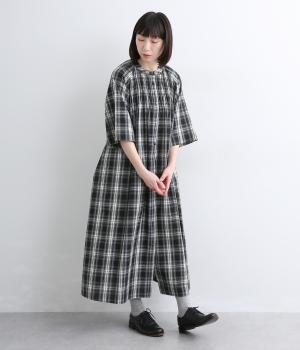 着映え力の高いチェック柄に胸元のシャーリングでより表情を豊かにつけたワンピース。ゆったりとしたシルエットが着心地よく、後ろウエストをリボンでしぼるアレンジも可能。ひじが隠れるほどの6分袖で長袖をレイヤードするなど季節問わず着まわせます。