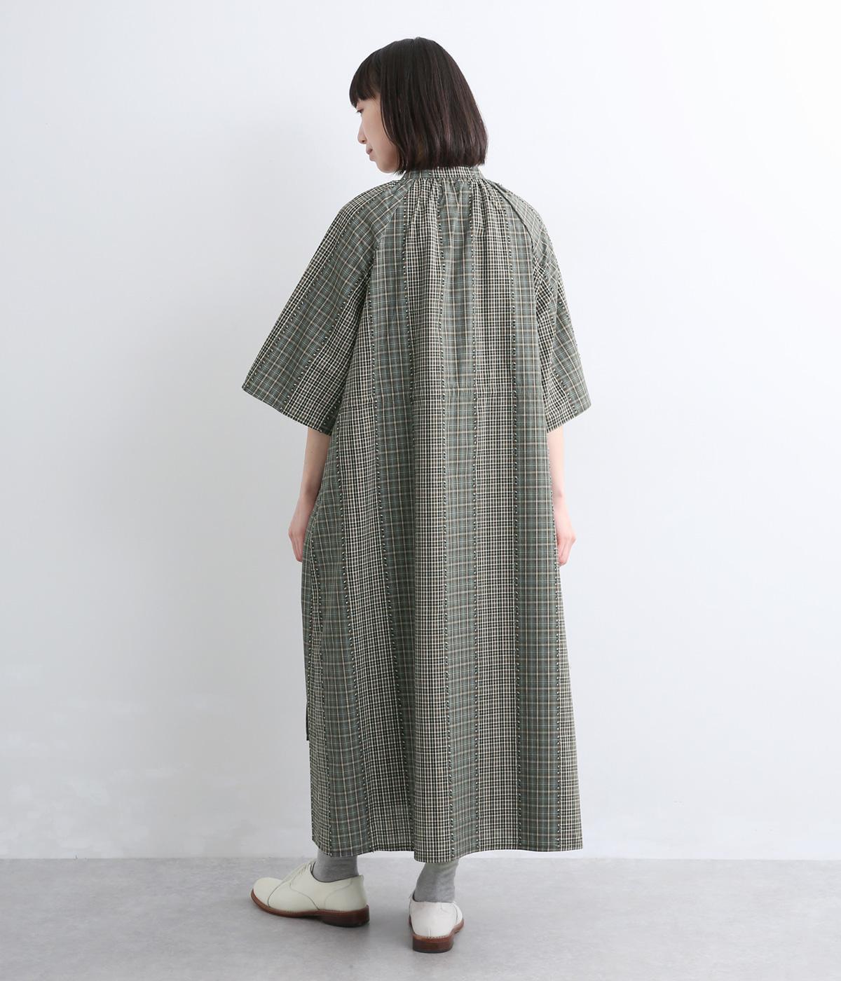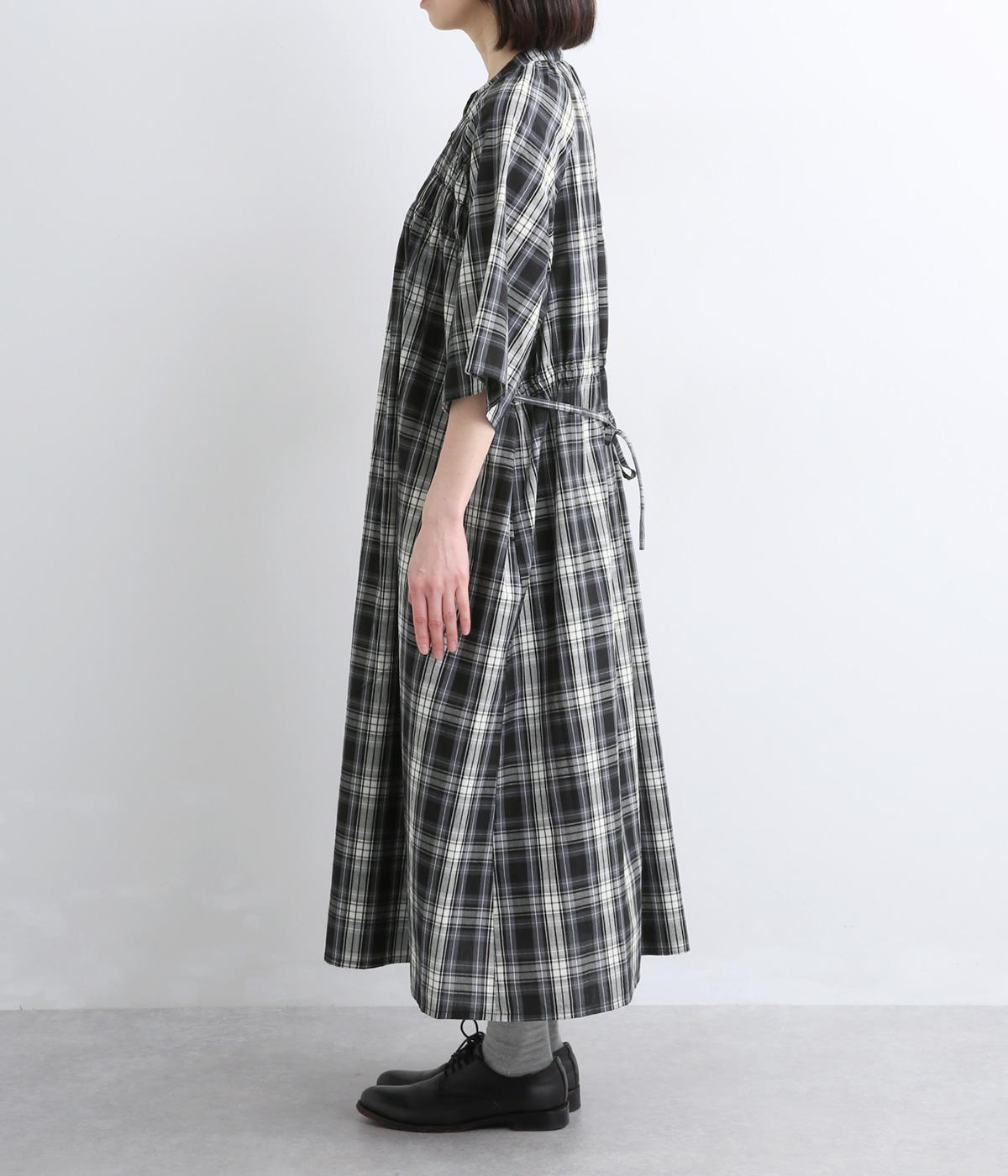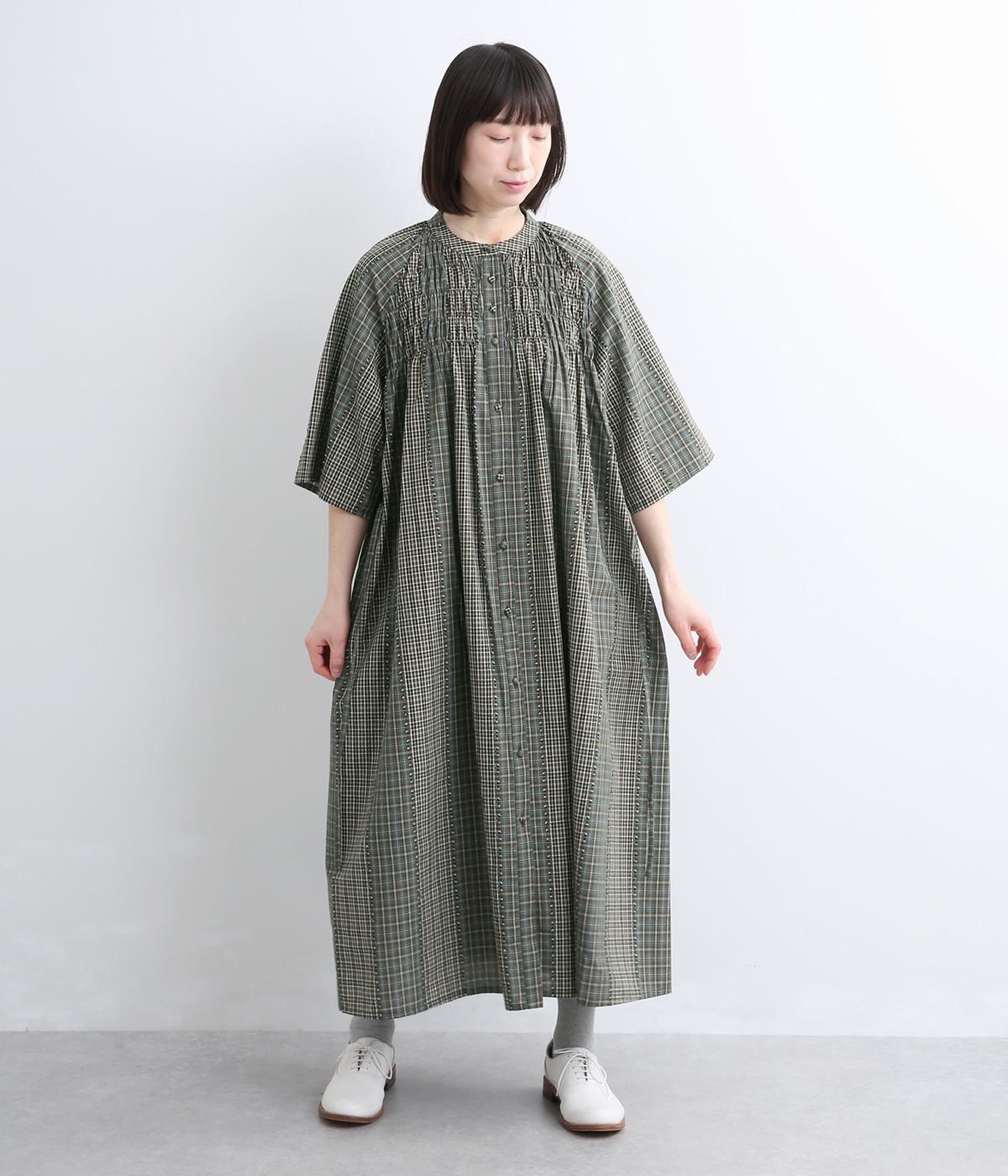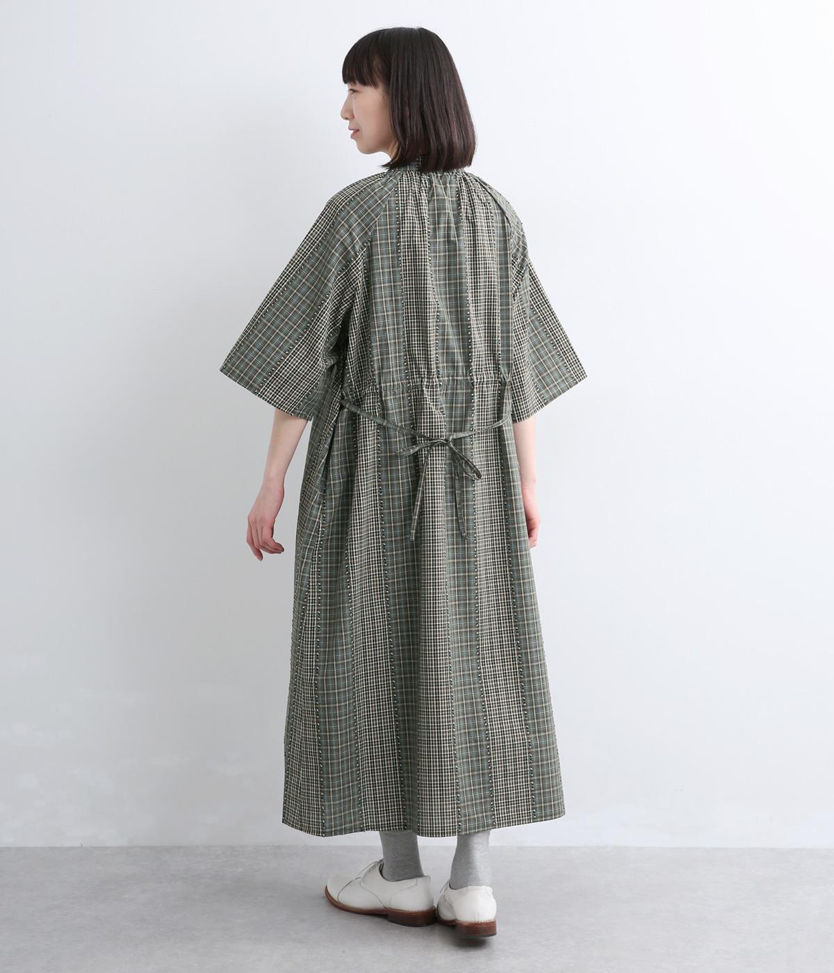 着映え力の高いチェック柄に胸元のシャーリングでより表情を豊かにつけたワンピース。ゆったりとしたシルエットが着心地よく、後ろウエストをリボンでしぼるアレンジも可能。ひじが隠れるほどの6分袖で長袖をレイヤードするなど季節問わず着まわせます。
