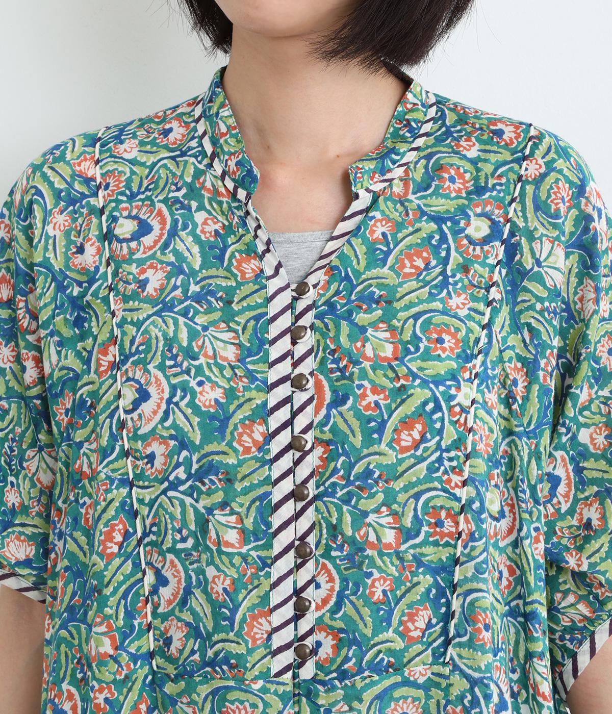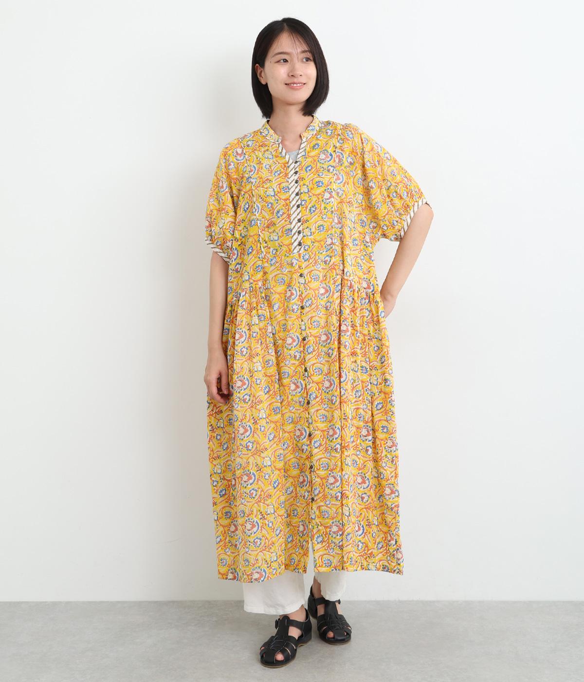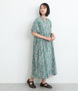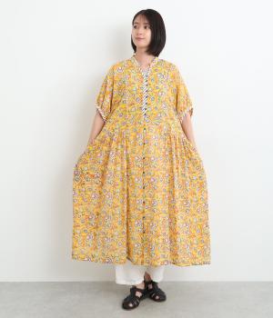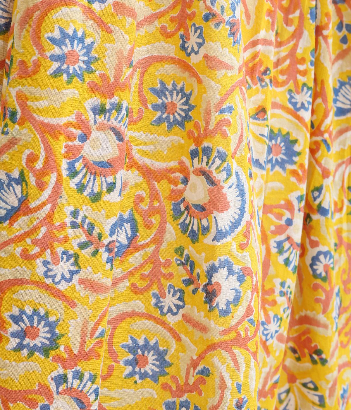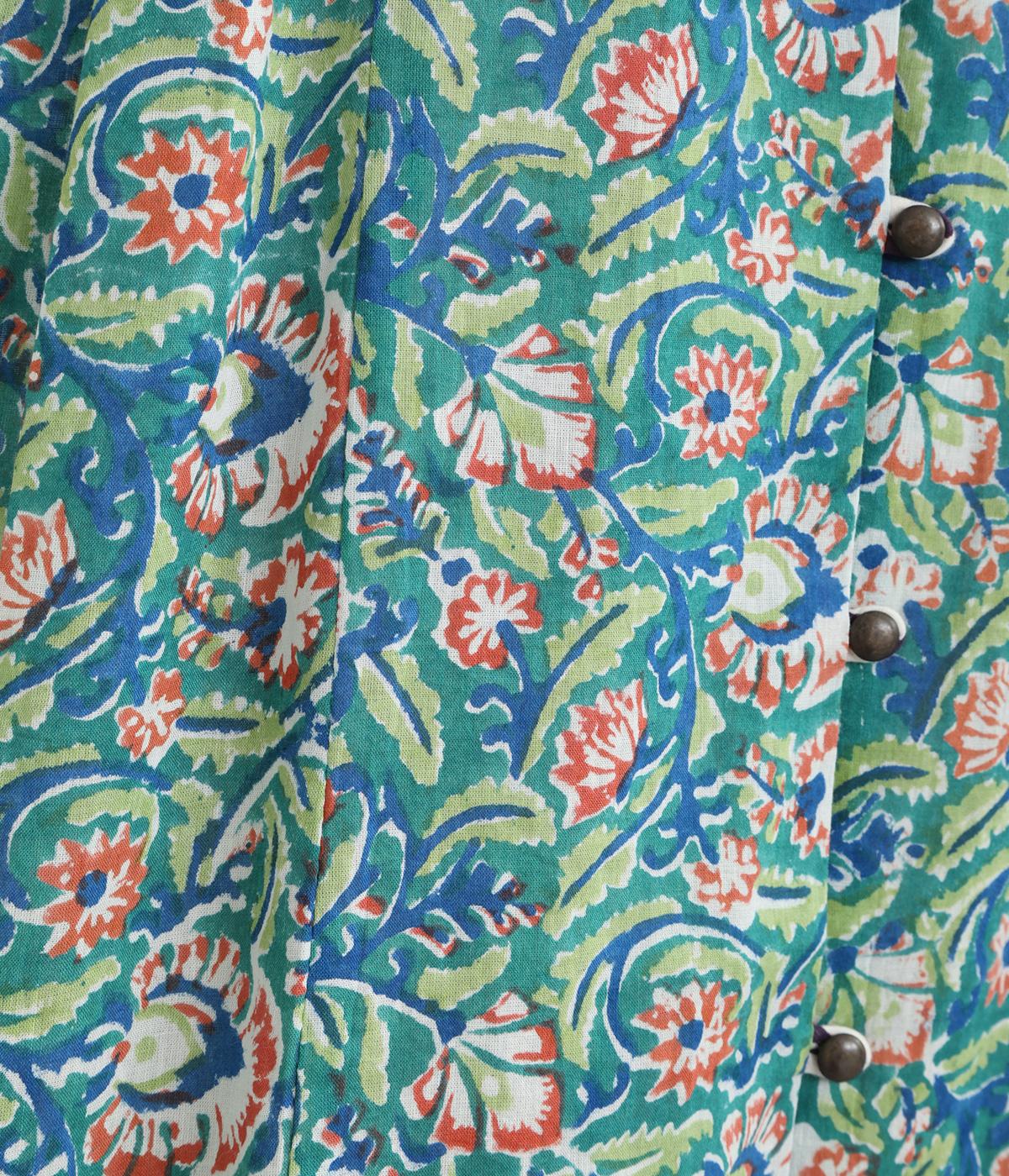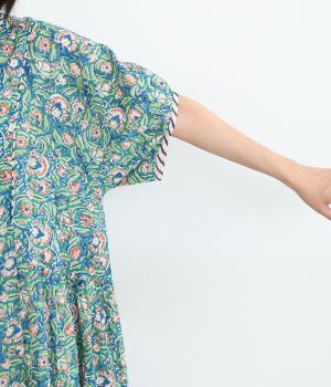 明るく鮮やかな色みが特徴的なラピドプリントをほどこしたコットン生地を採用しています。華やかな総柄ながらも薄手コットンで涼しく着用できる軽やかな仕上がりです。