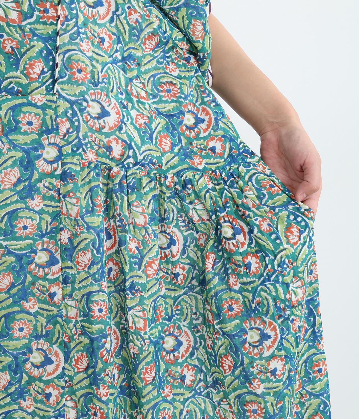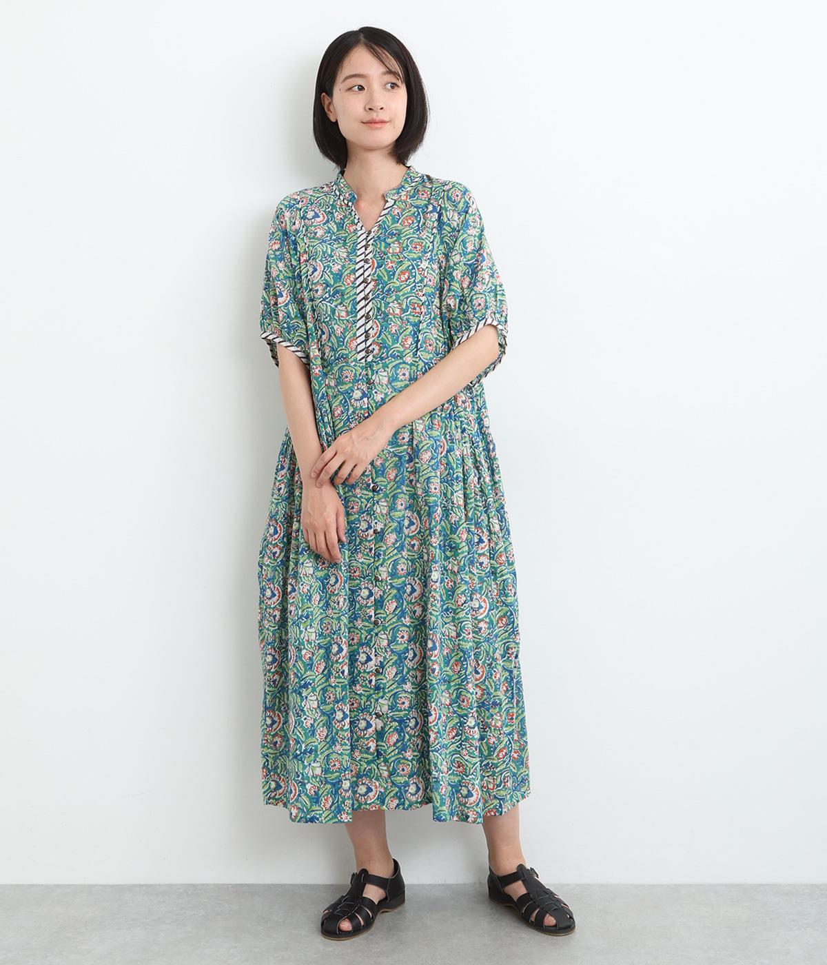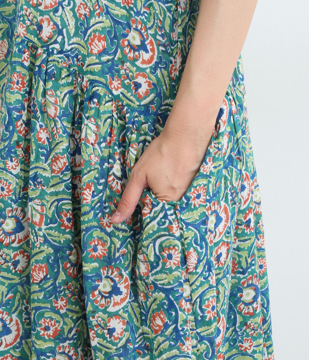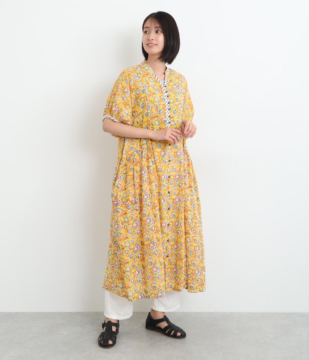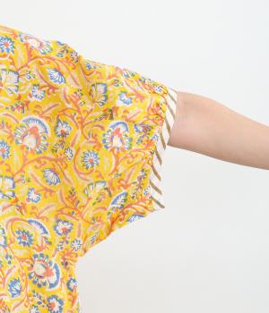 明るく鮮やかな色みが特徴的なラピドプリントをほどこしたコットン生地を採用しています。華やかな総柄ながらも薄手コットンで涼しく着用できる軽やかな仕上がりです。