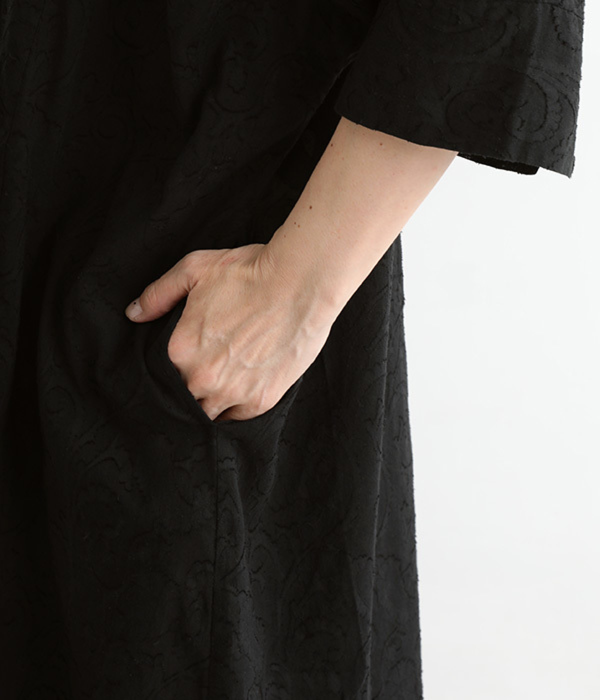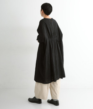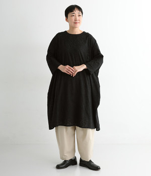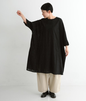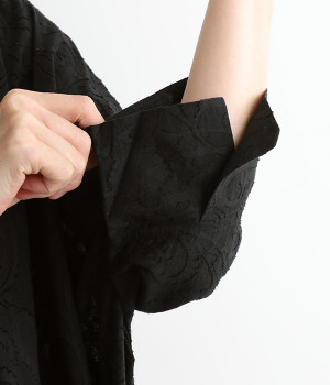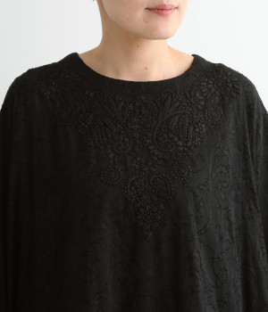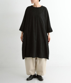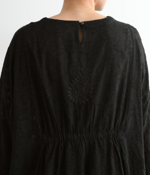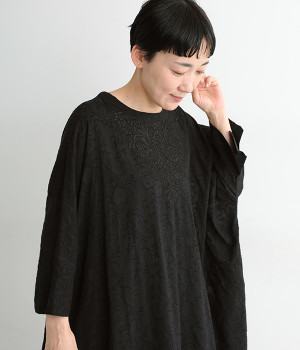 ふわりとした軽さが魅力のインド綿のジャカード織り生地を使用。前後には生地と同色の糸で、インド伝統のラクノウ刺しゅうを施しています。