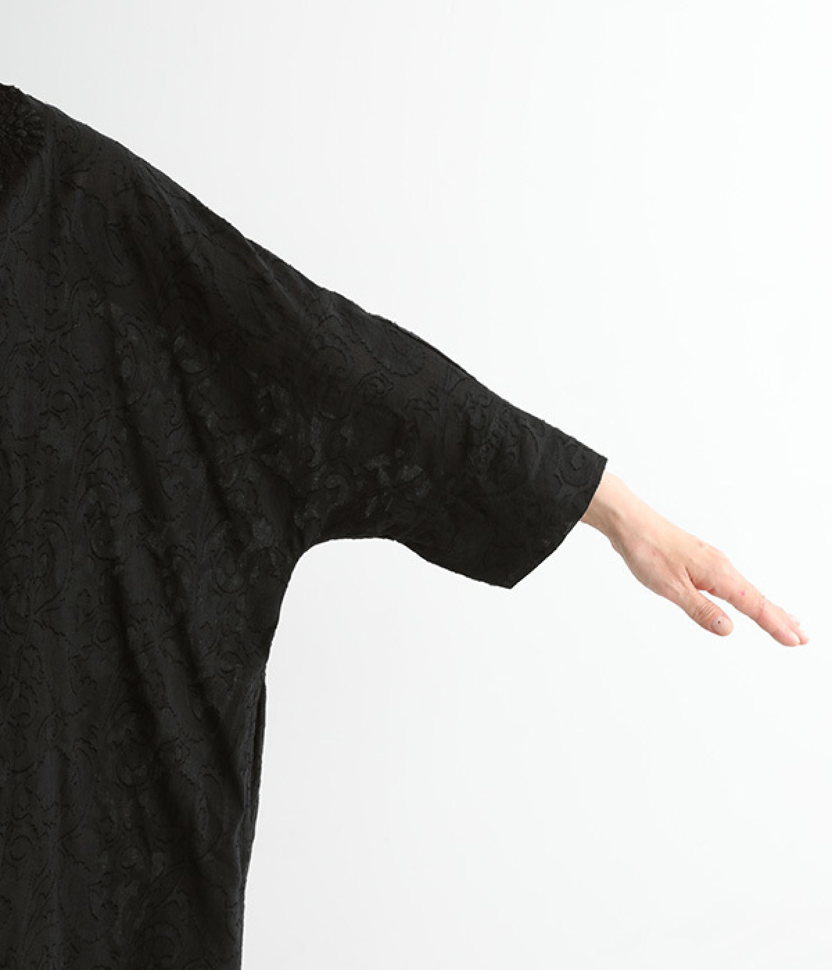 きれいなドレープを描く、ボリュームのあるシルエットが魅力のワンピース。体のラインを拾いにくく、リラックスした着心地が楽しめます。袖口にはスリット入りで、一折してもアクセントに。デイリーにはもちろん、お呼ばれなどの華やかなシーンでも活躍する一枚です。