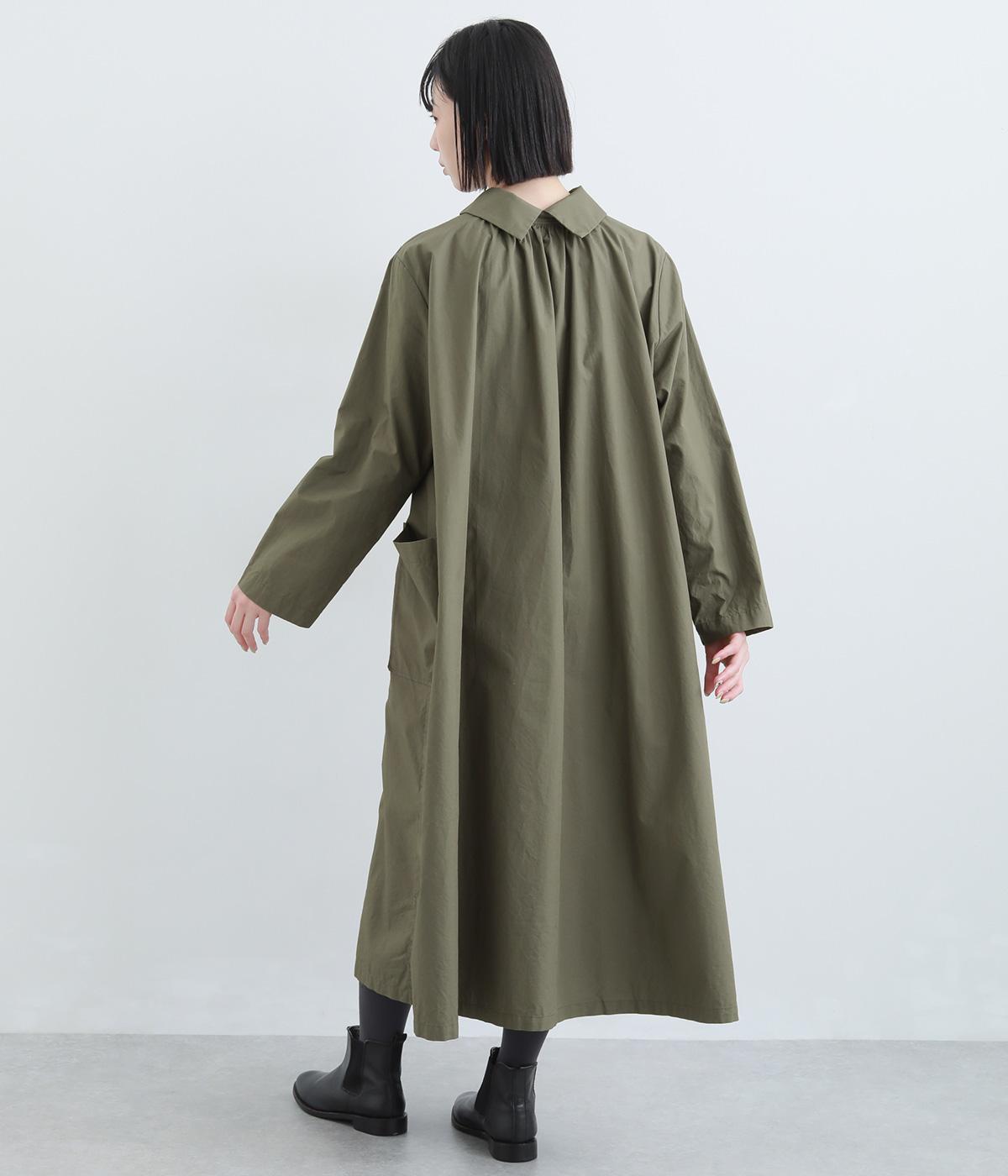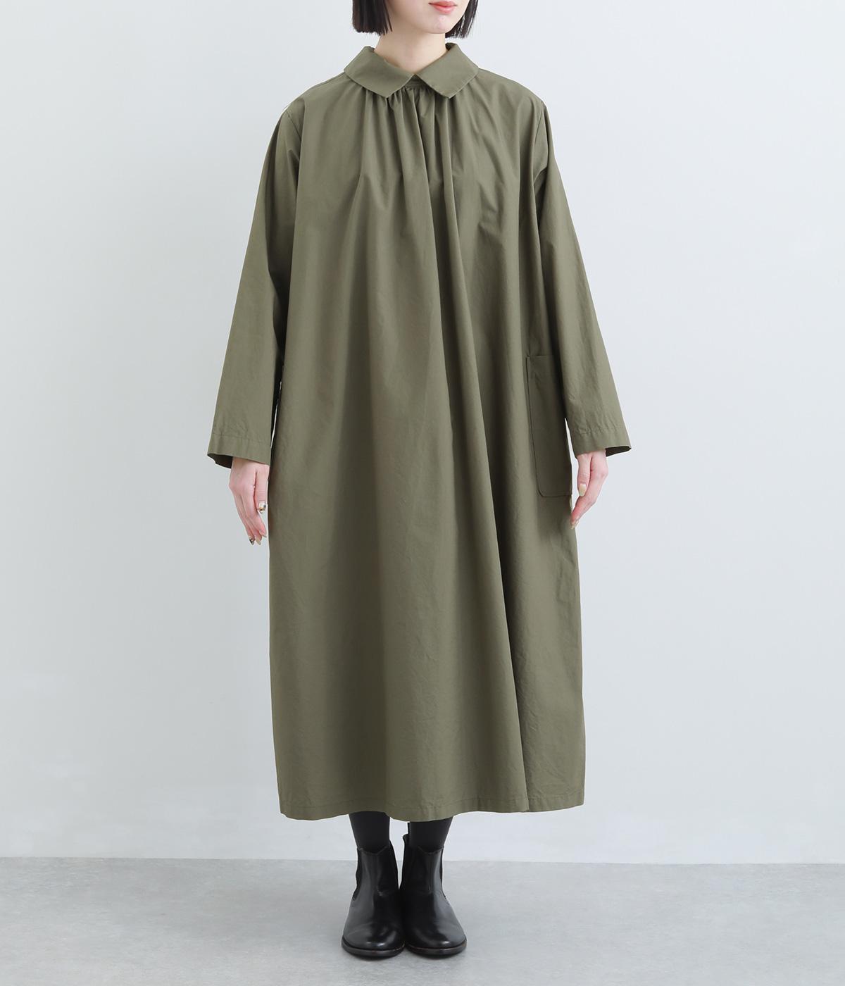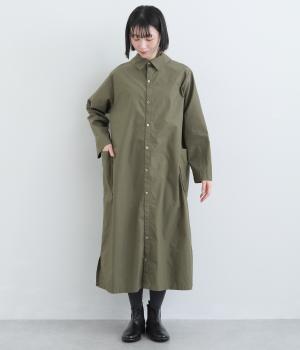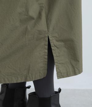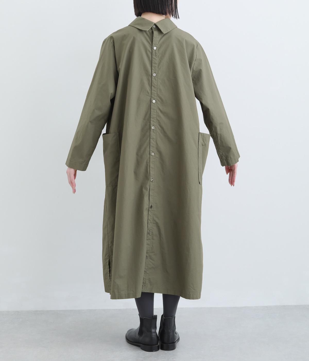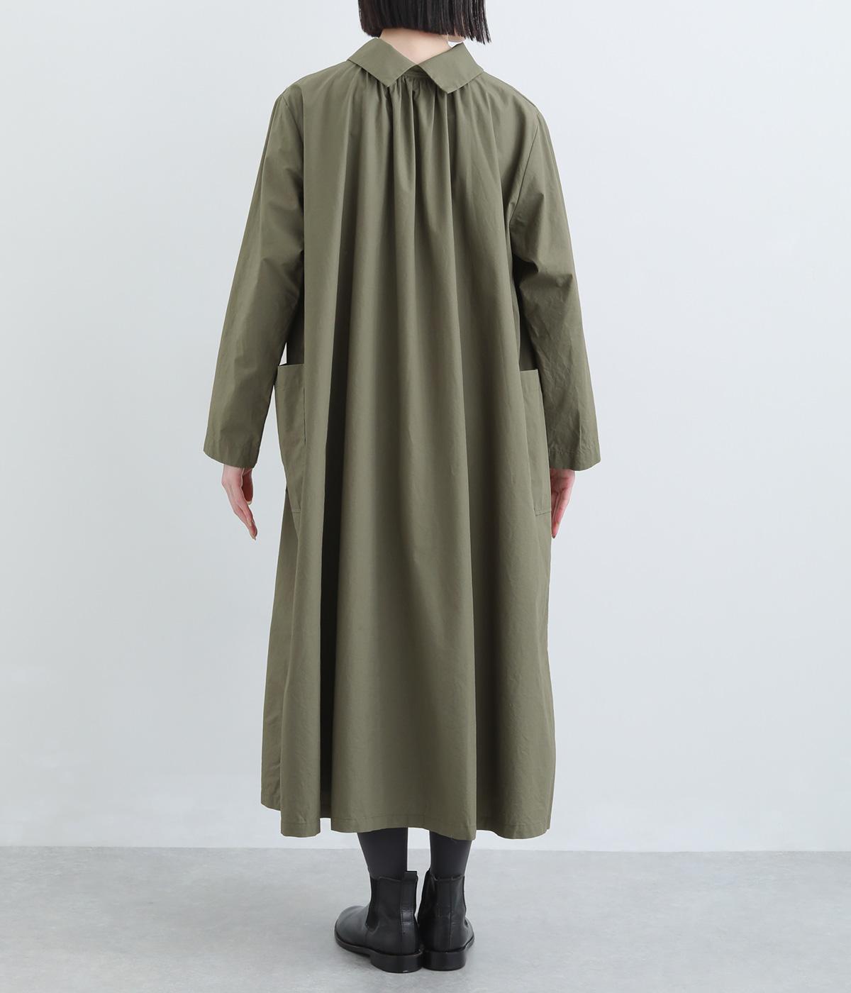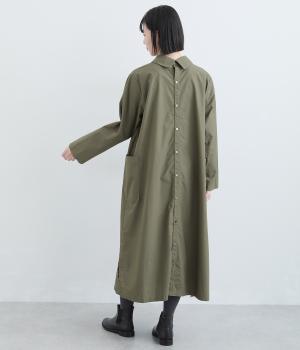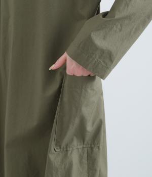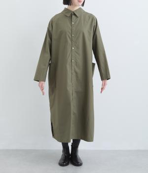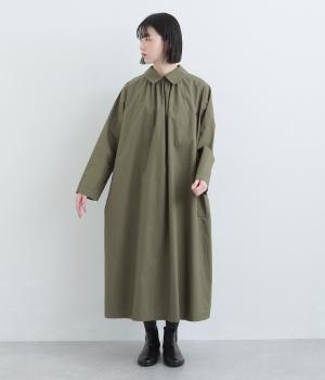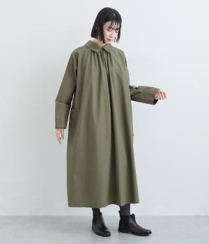 たっぷりしたボリューム感の主役ワンピースを前後2wayに仕立てました。前後どちらもフラットな襟元がデザインポイントになっています。サイドポケットが腰まわりをカバーしつつシルエットにアクセントを添えています。