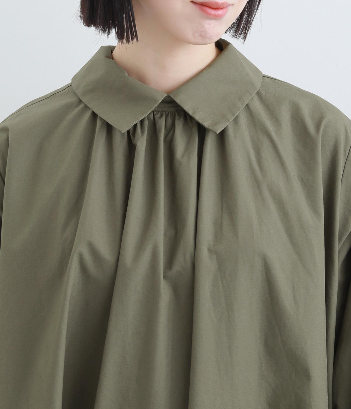 肌ばなれのよいさらりとしたコットン生地を使用しました。清涼感があり、きちんとした印象を与えます。きちんとしたハリがドレープやシルエットをきれいに描きます。