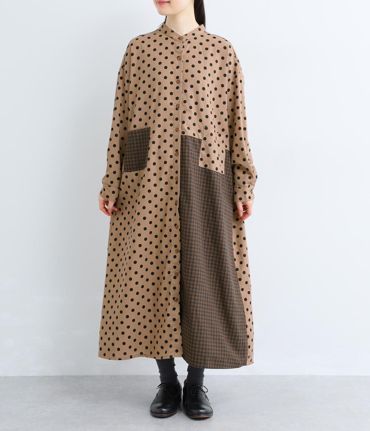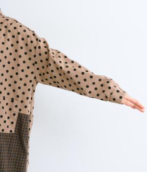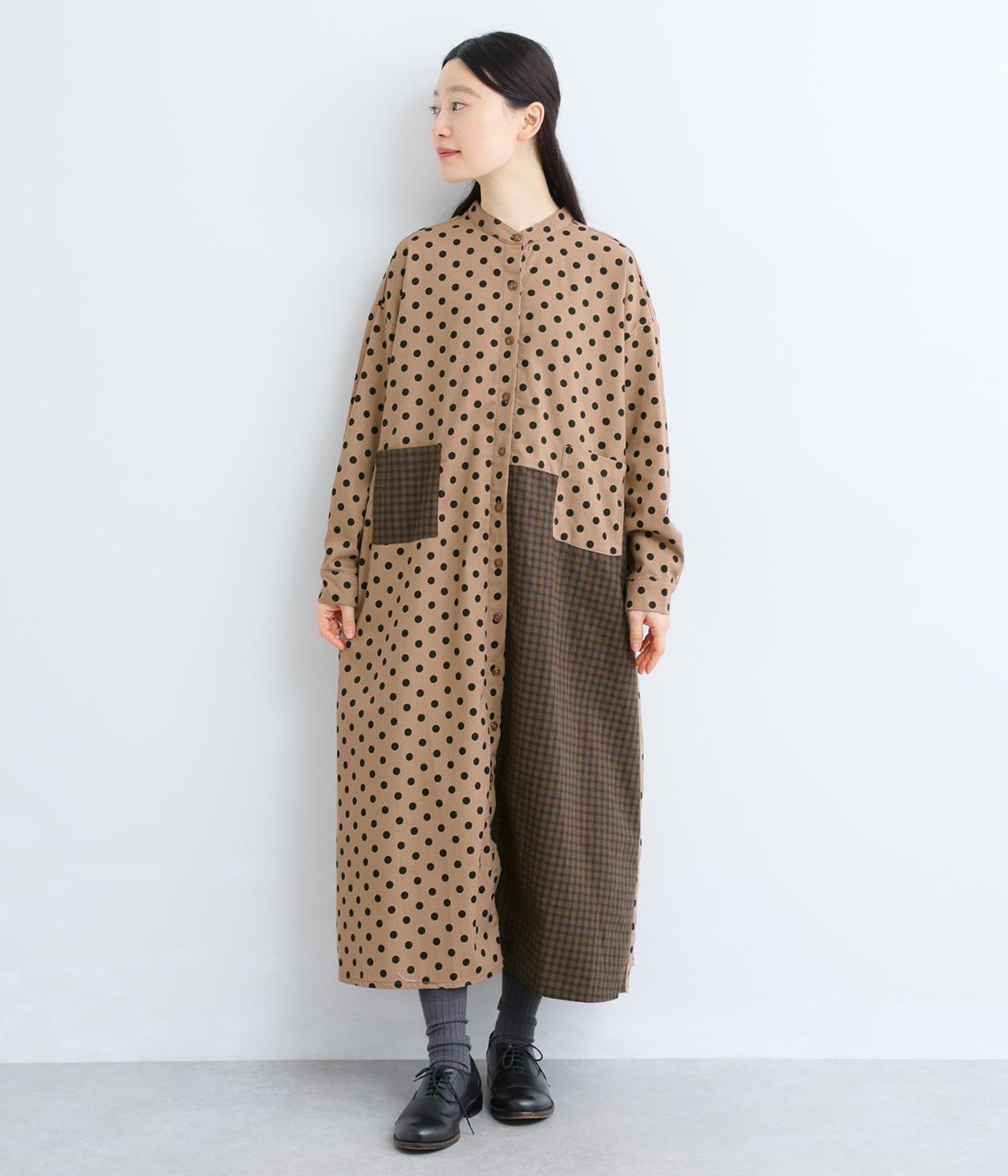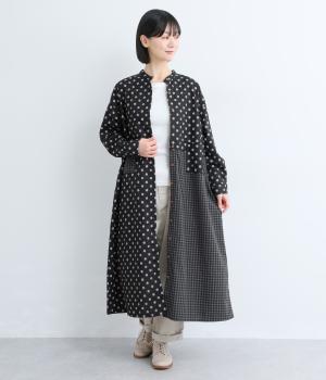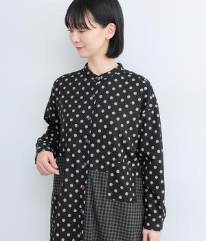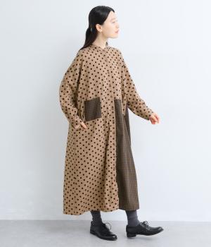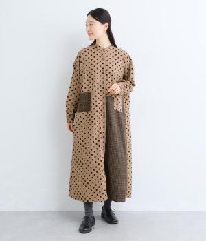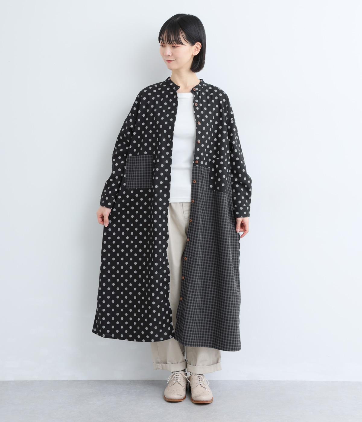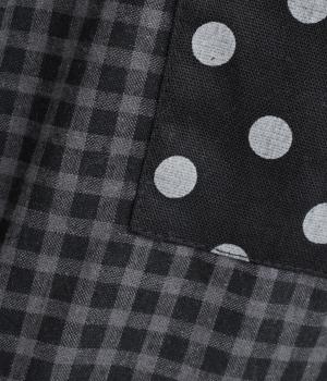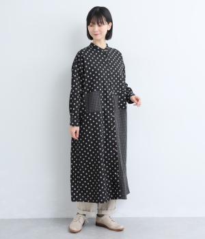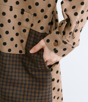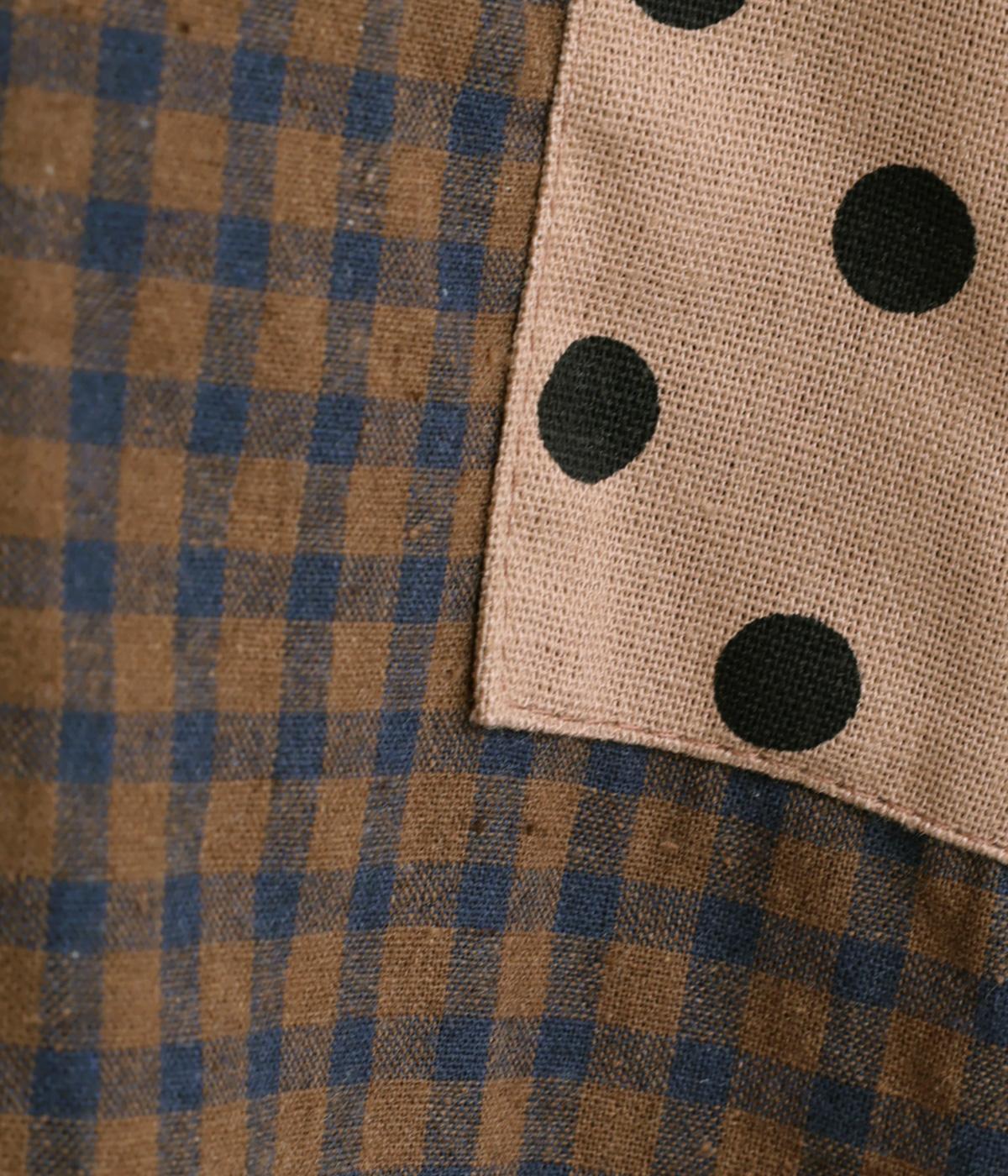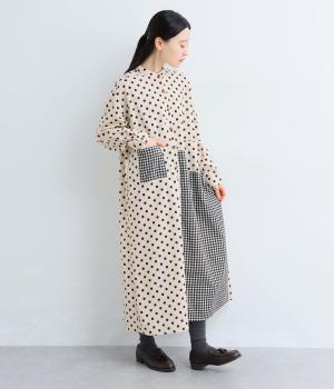 ドット柄はややハリをもたせたレーヨン混紡の綿麻素材を、チェック柄はナチュラル感のあるやわらかな質感の綿素材を使ったドッキング仕立てです。