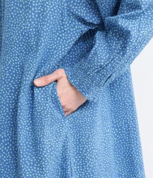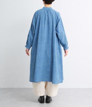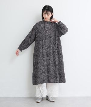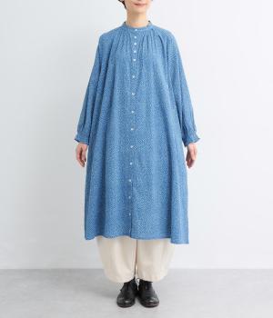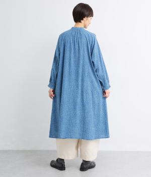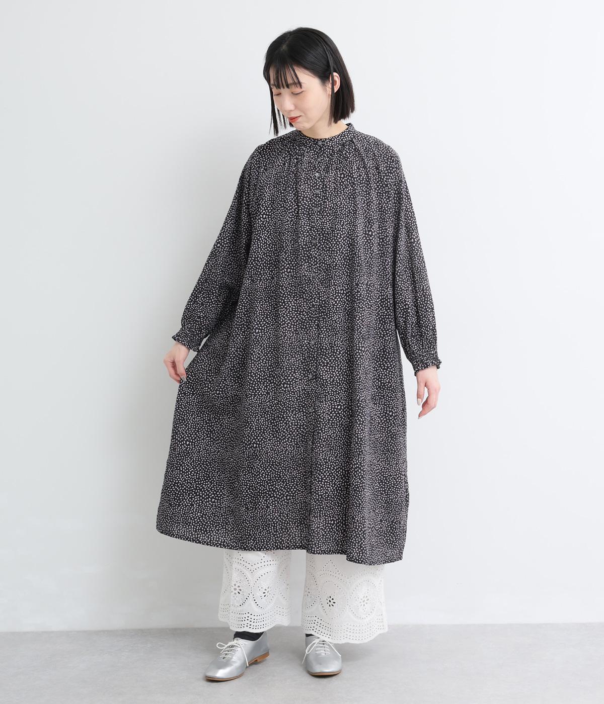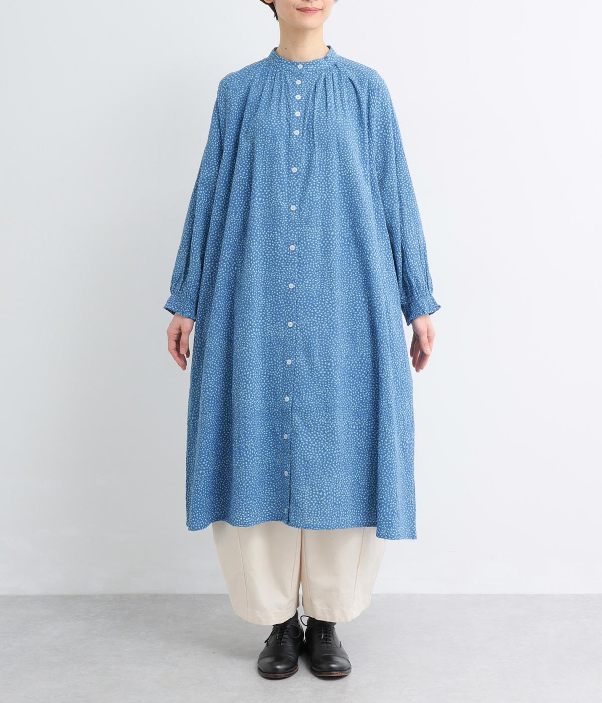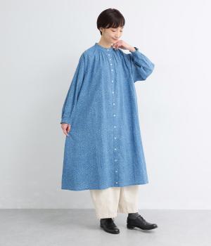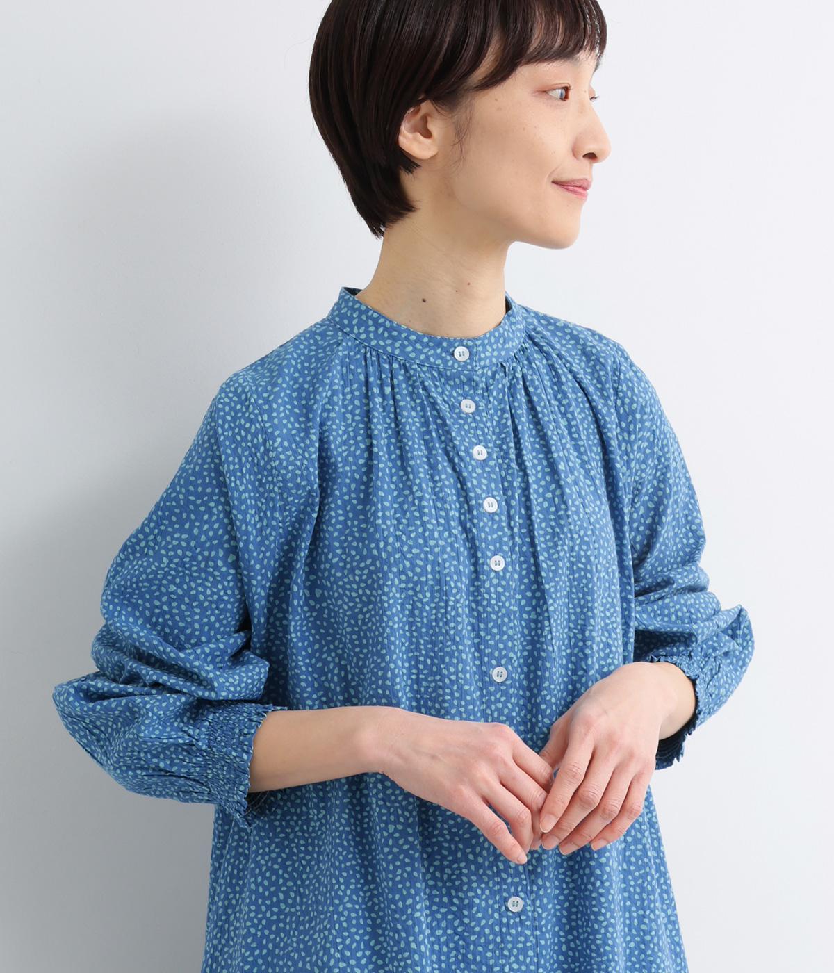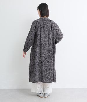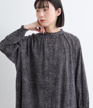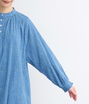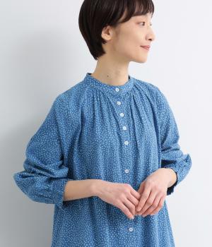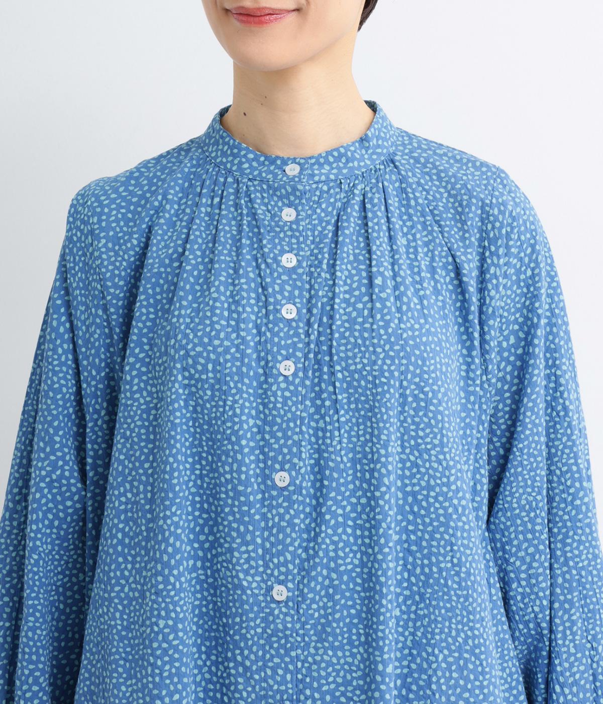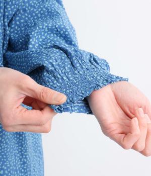 ニュアンスのあるしずくドットプリントが、さわやかな印象を添え、大人の可愛らしさを引き立てます。前開き仕様で、ボタンを閉じて一枚で着るのはもちろん、羽織りとしても活躍。さっと着るだけで雰囲気のあるスタイリングが完成します。