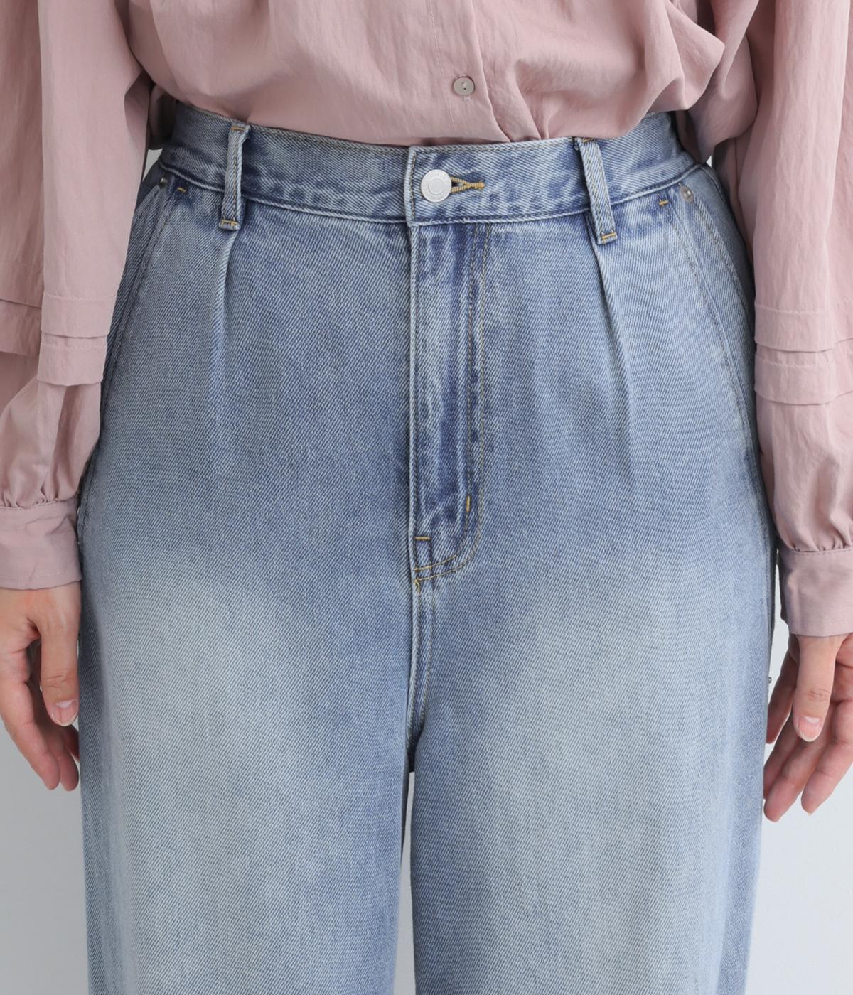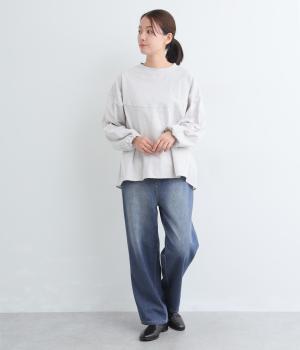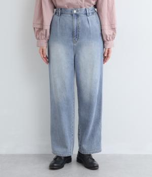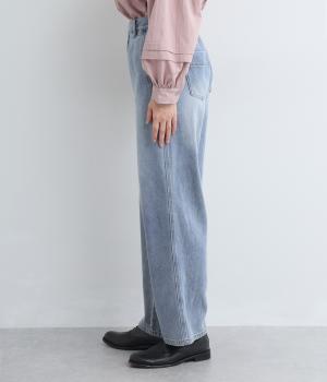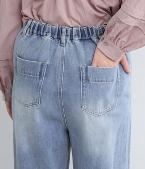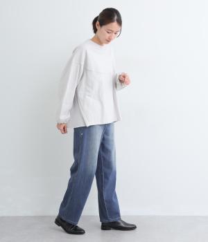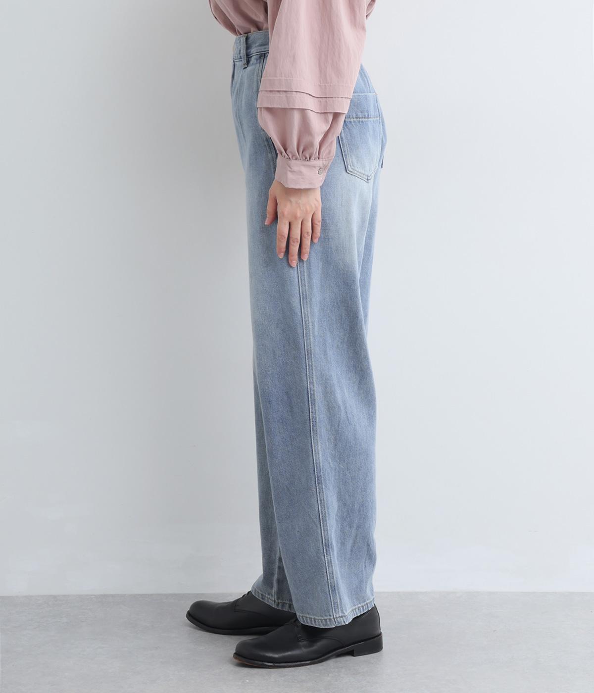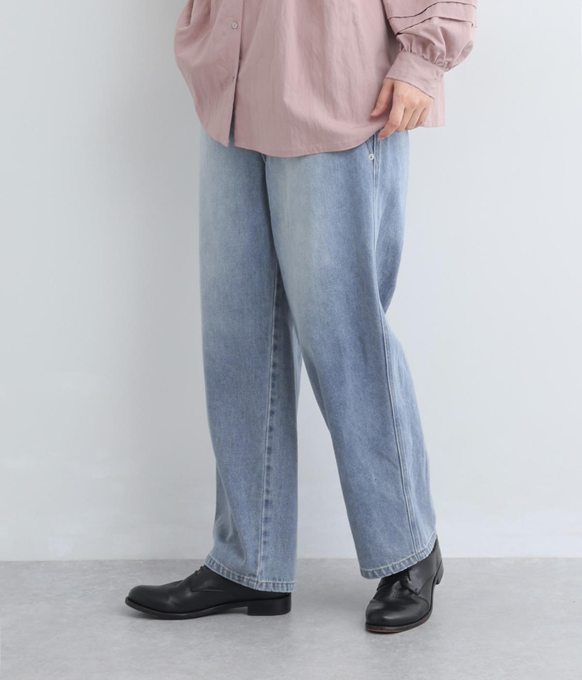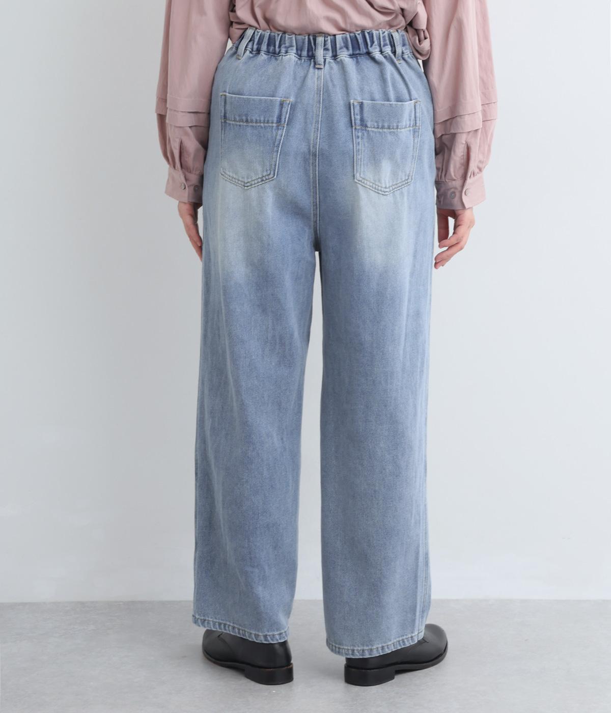 ポケット口に添うように入れたサイド切り替えが特徴的なデニムパンツ。適度なゆとりとすっきりとしたシルエットに色落ち感がこなれた印象を醸します。前ファスナーで脱ぎはきしやすく、後ろウエストゴムのリラックス仕様。