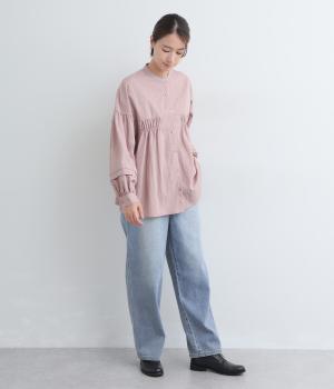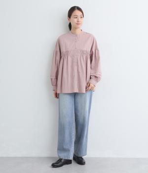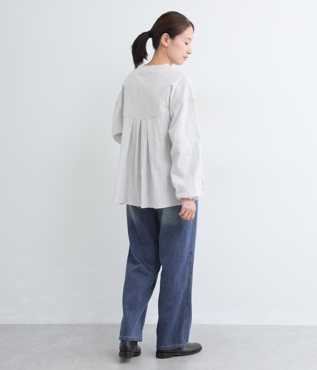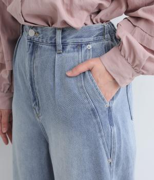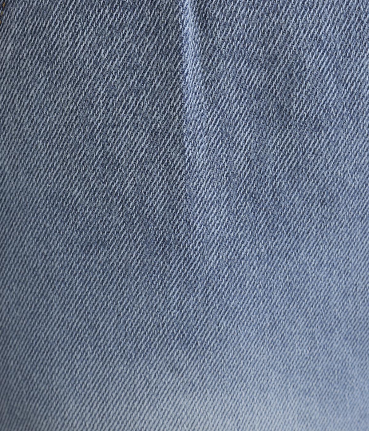 畝のはっきりとした綾織のカルゼ生地を使用しています。デニムならではの良さを活かしながらも、レーヨンなどもまぜてやわらかめに仕上げました。