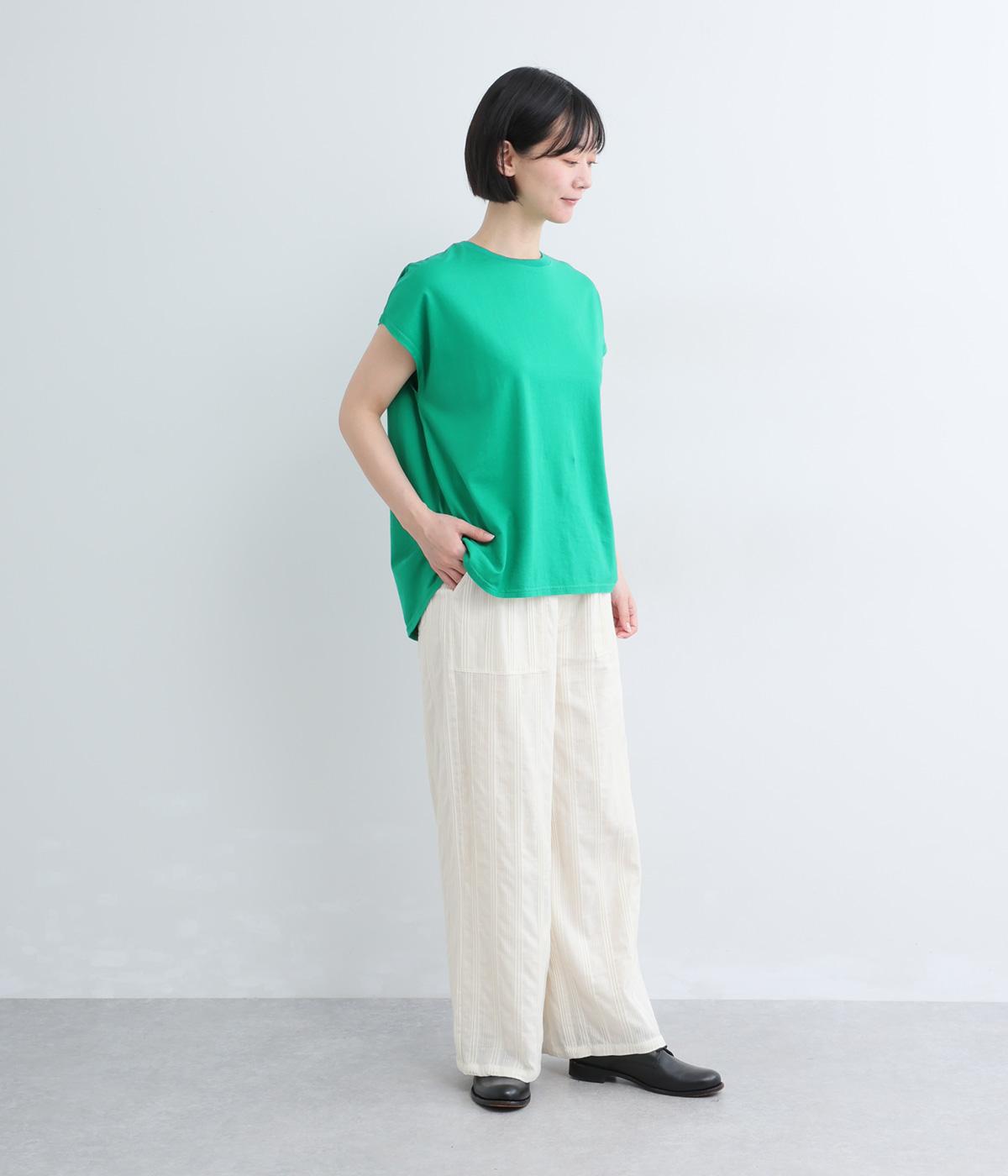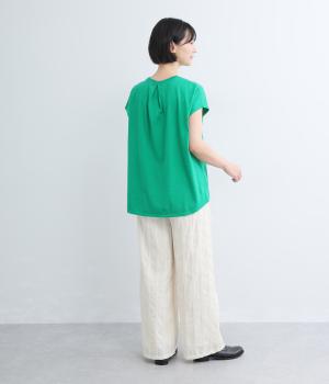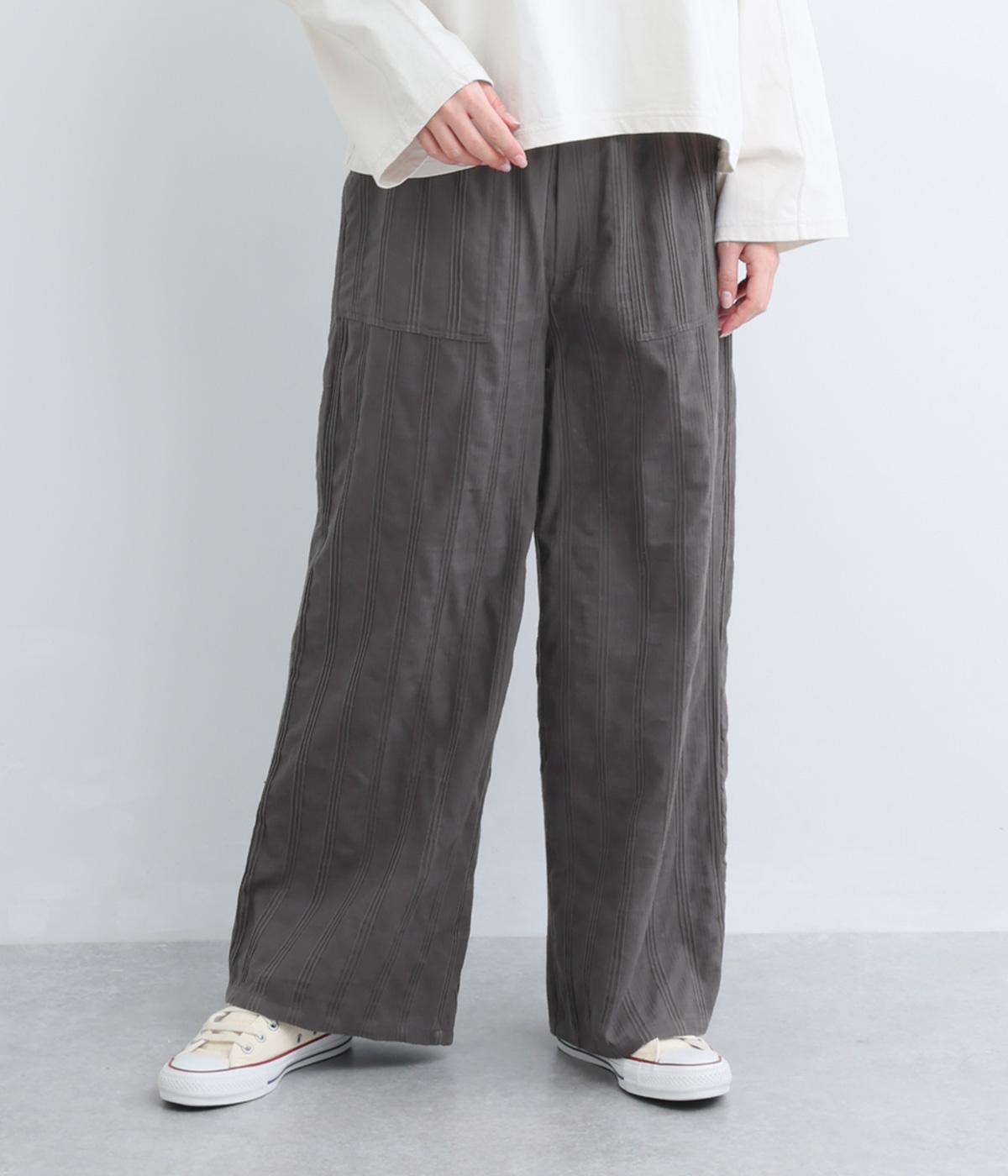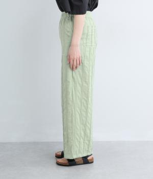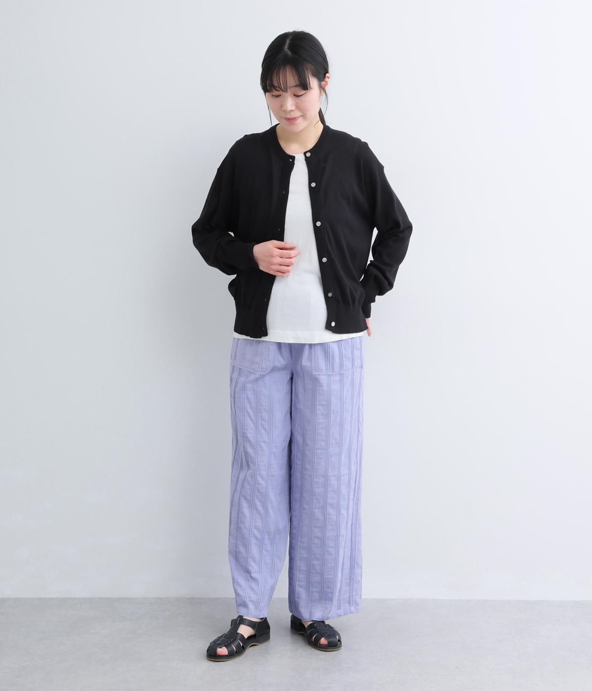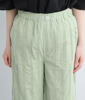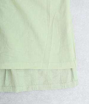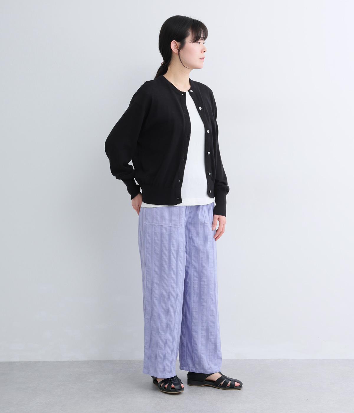 やわらかなコットンドビー生地を使用。織りによるドビーとタックを組み合わせたストライプ状の質感が、装いに奥行きを添えてくれます。肌なじみがよく、自然な風合いの素材です。