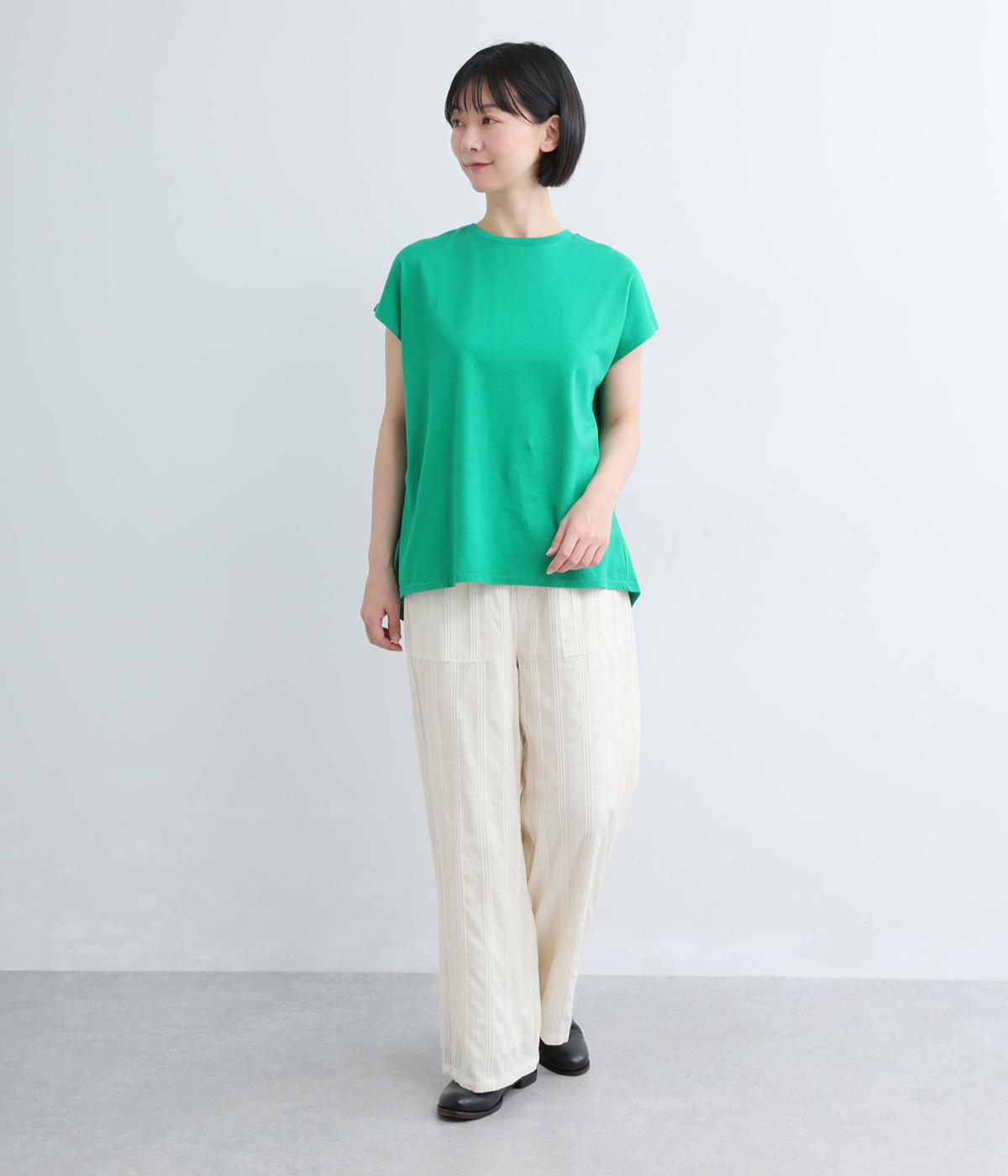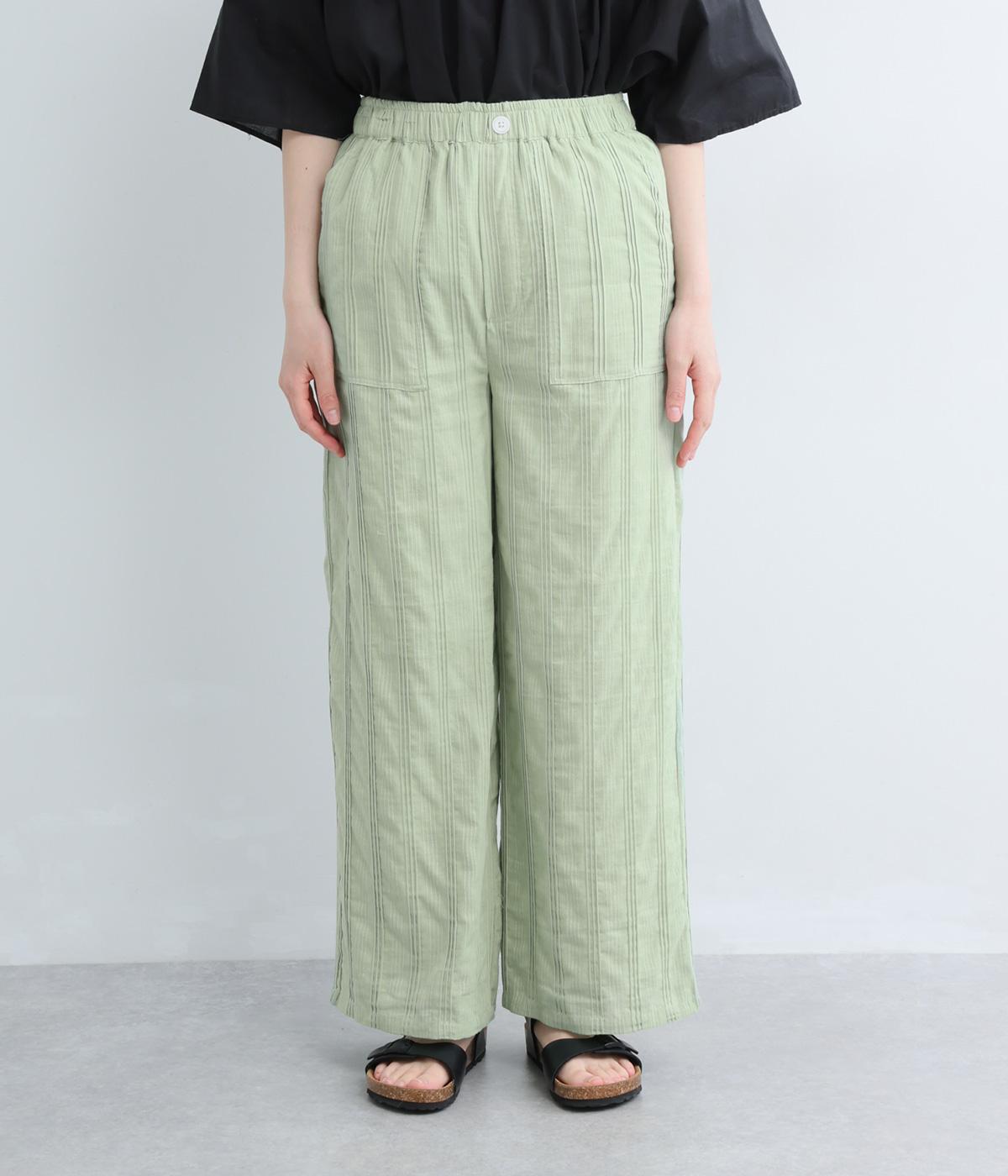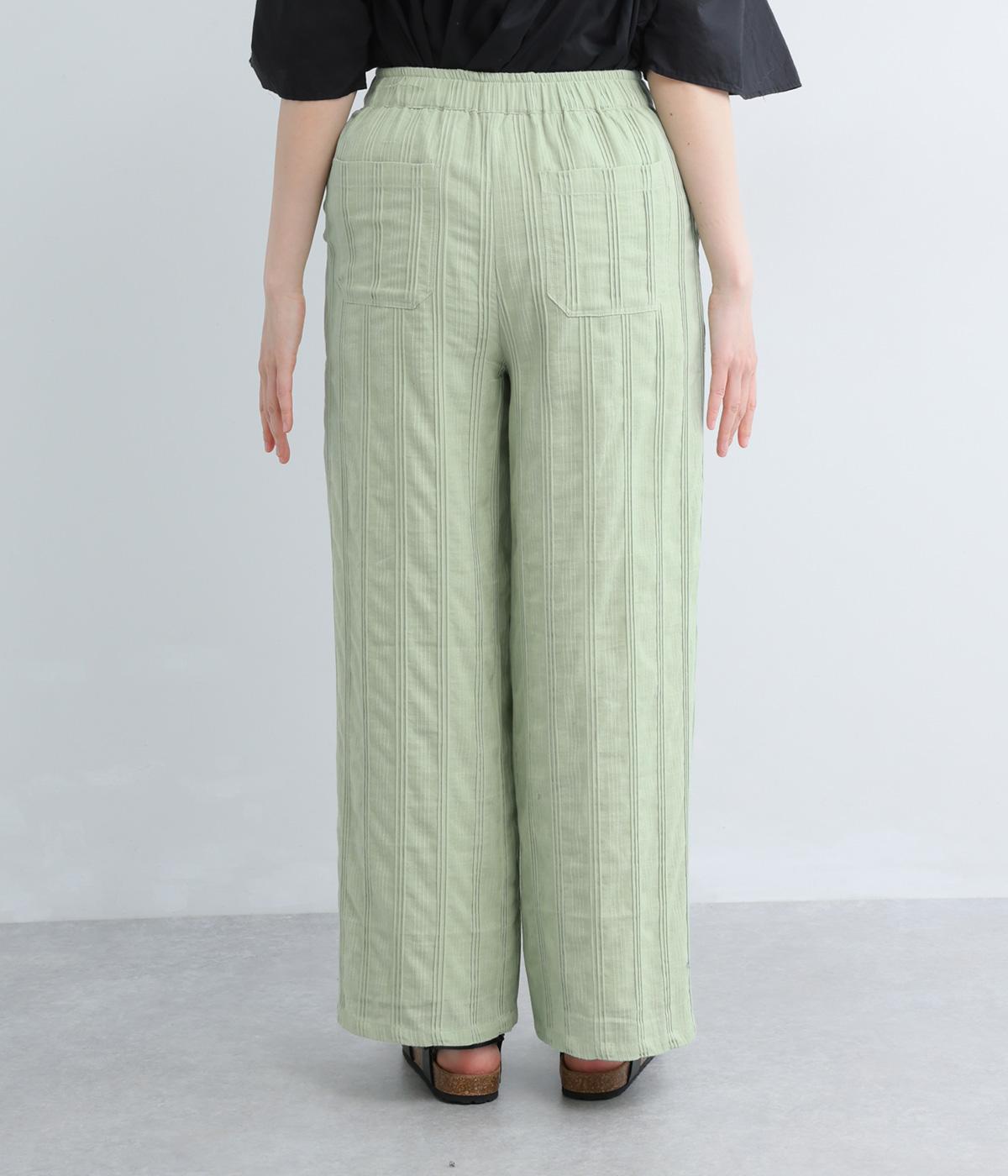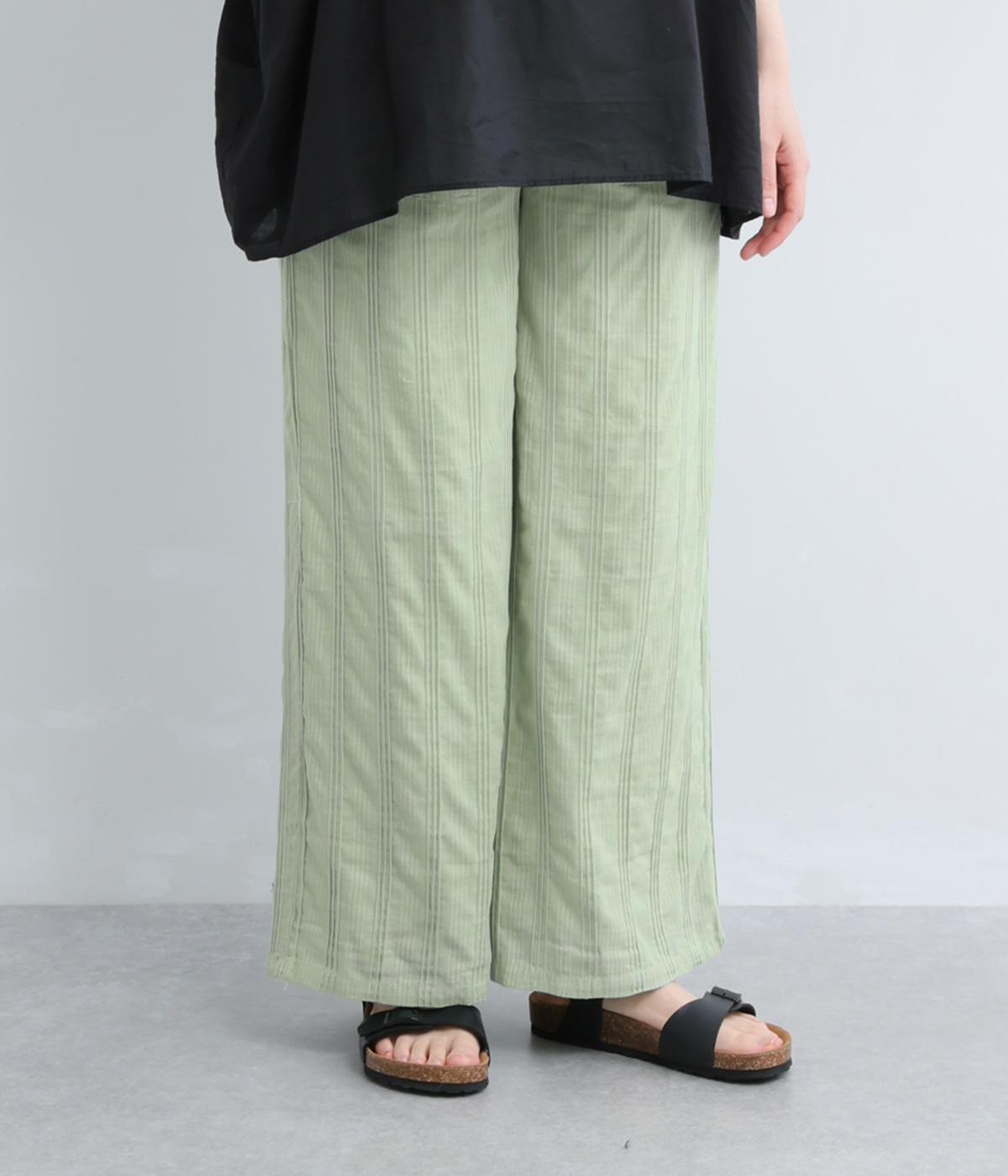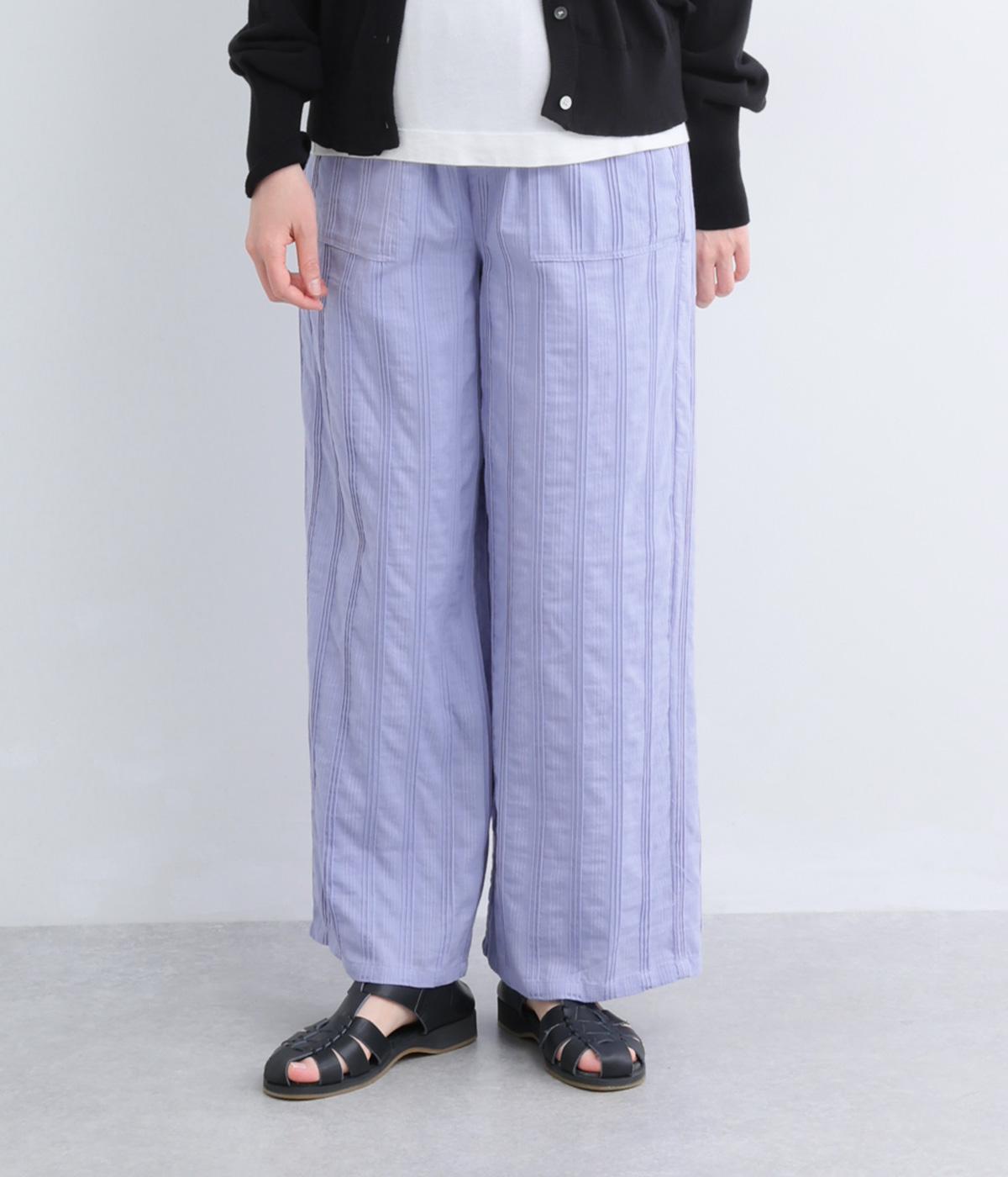 やわらかなコットンドビー生地を使用。織りによるドビーとタックを組み合わせたストライプ状の質感が、装いに奥行きを添えてくれます。肌なじみがよく、自然な風合いの素材です。