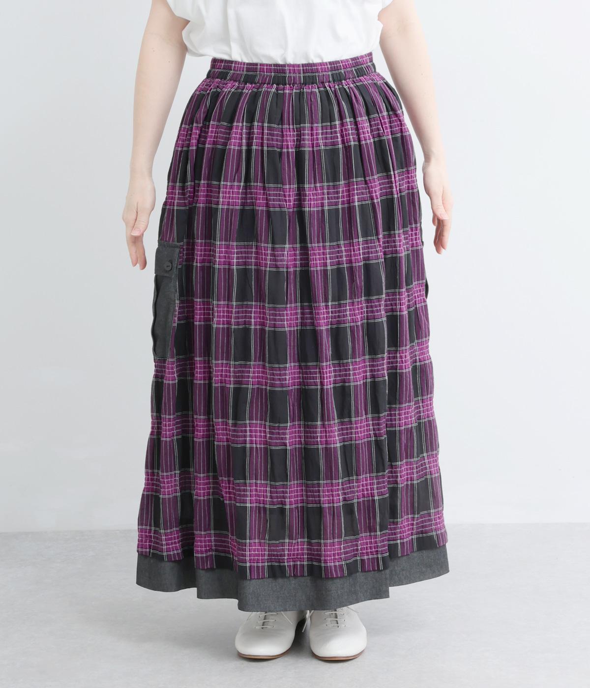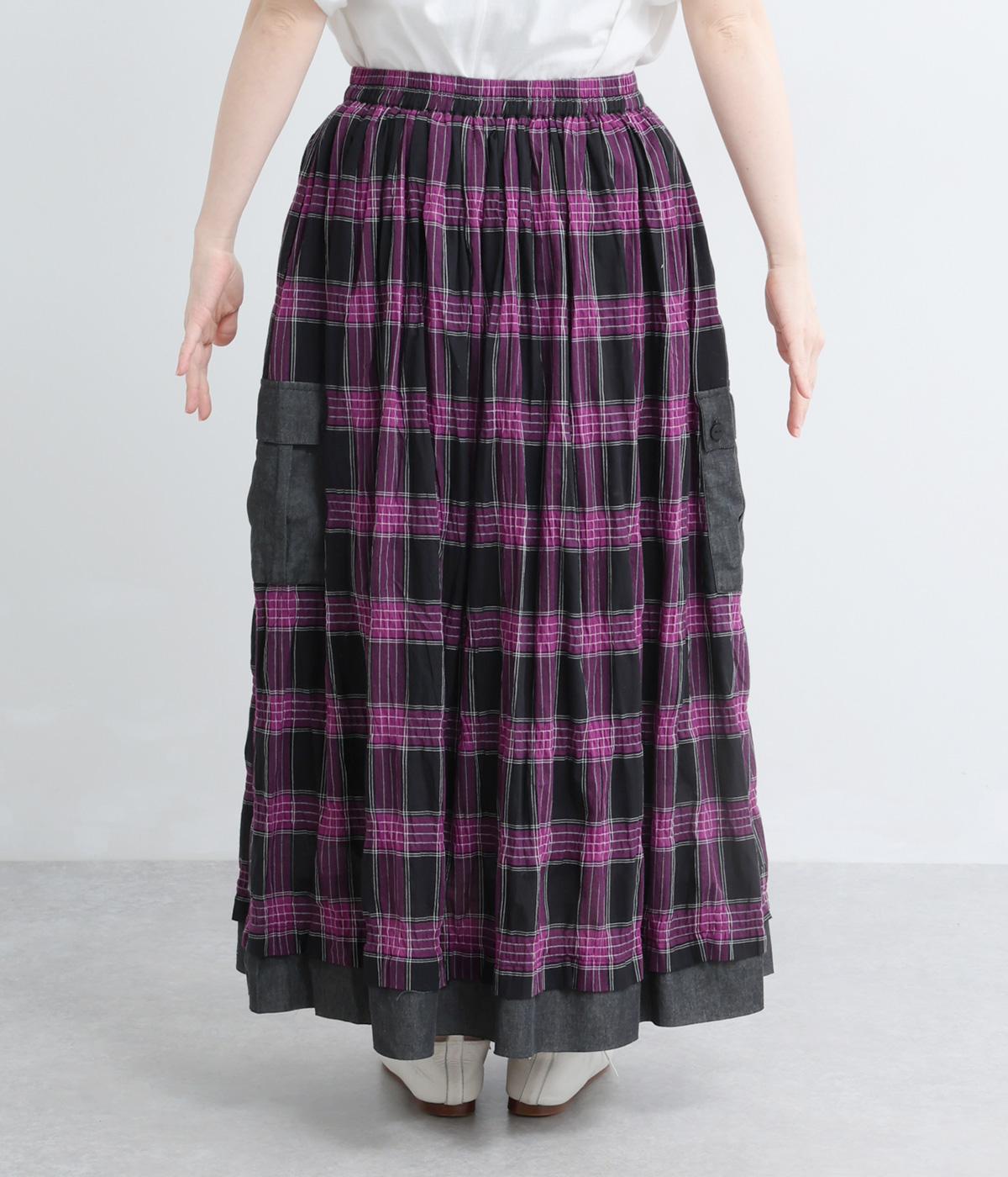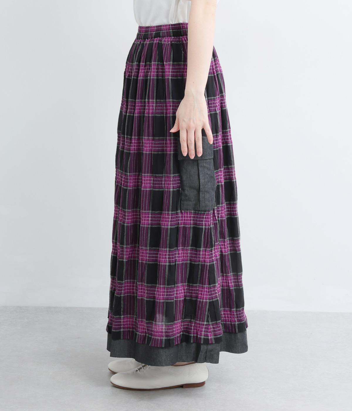 マドラスチェックタック入りギャザースカート