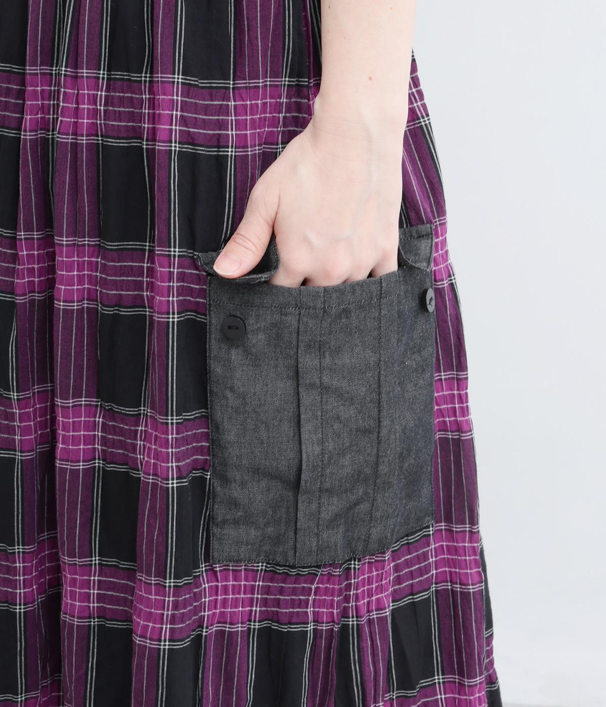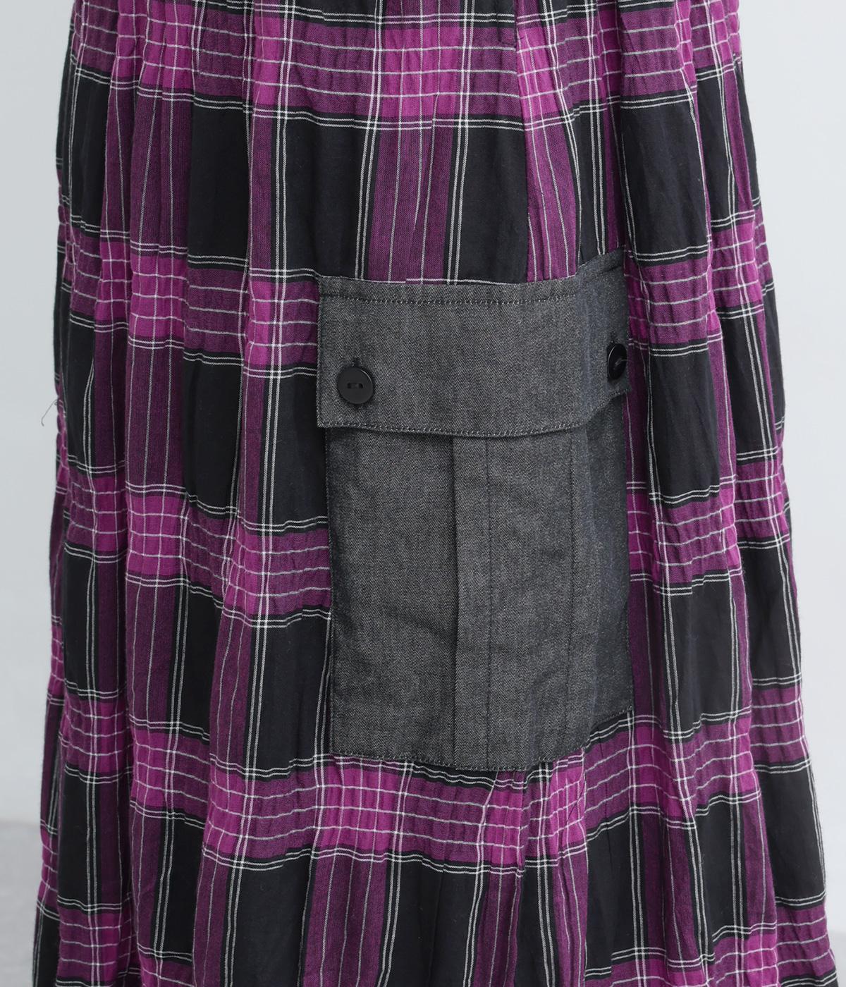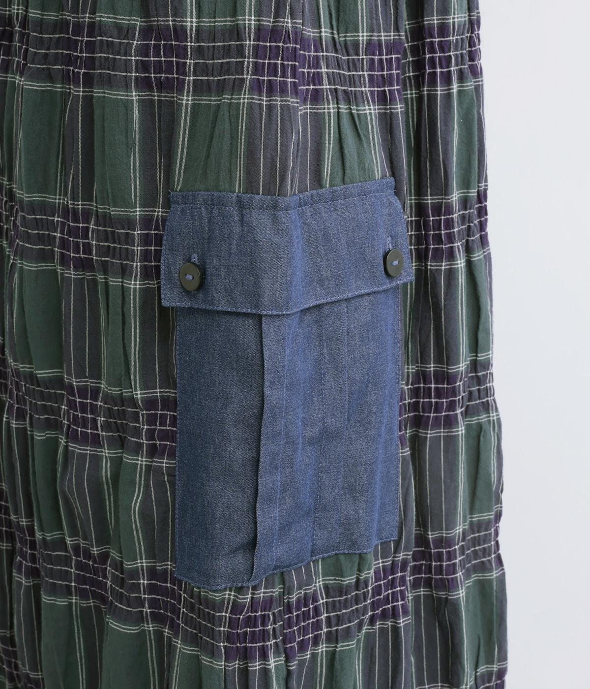 マドラスチェックタック入りギャザースカート