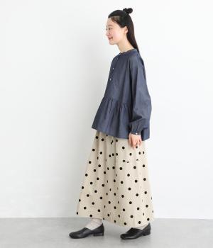 やわらかなコットンと清涼感のあるリネンをミックスして、しっかりとハリ感のある生地に織り上げました。素朴な風合いとソフトな質感が魅力でロングシーズン着まわせます。