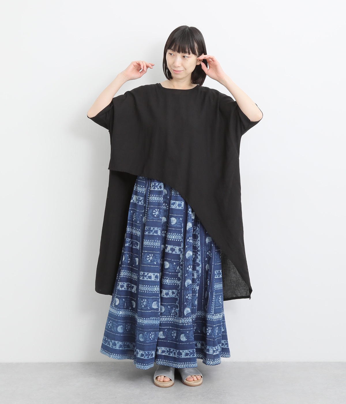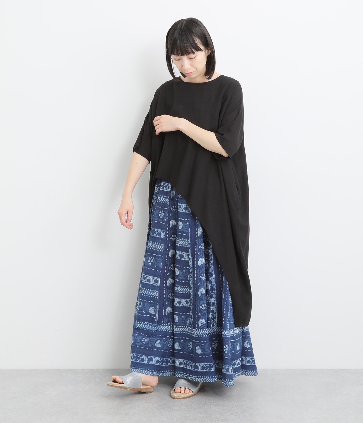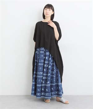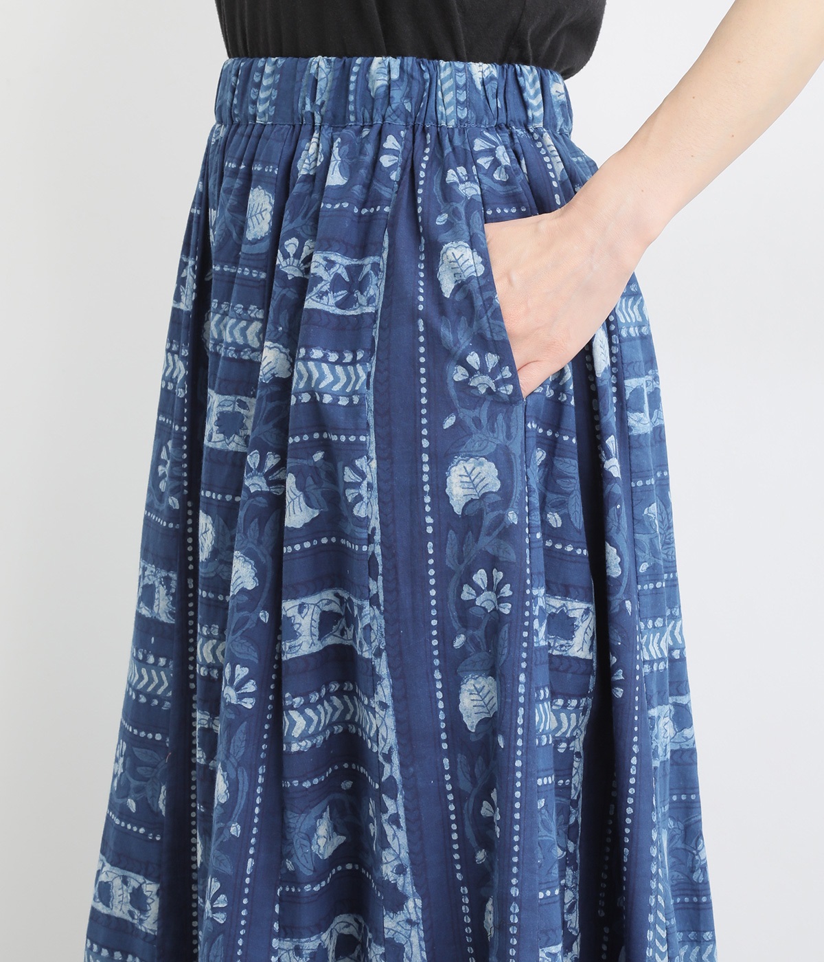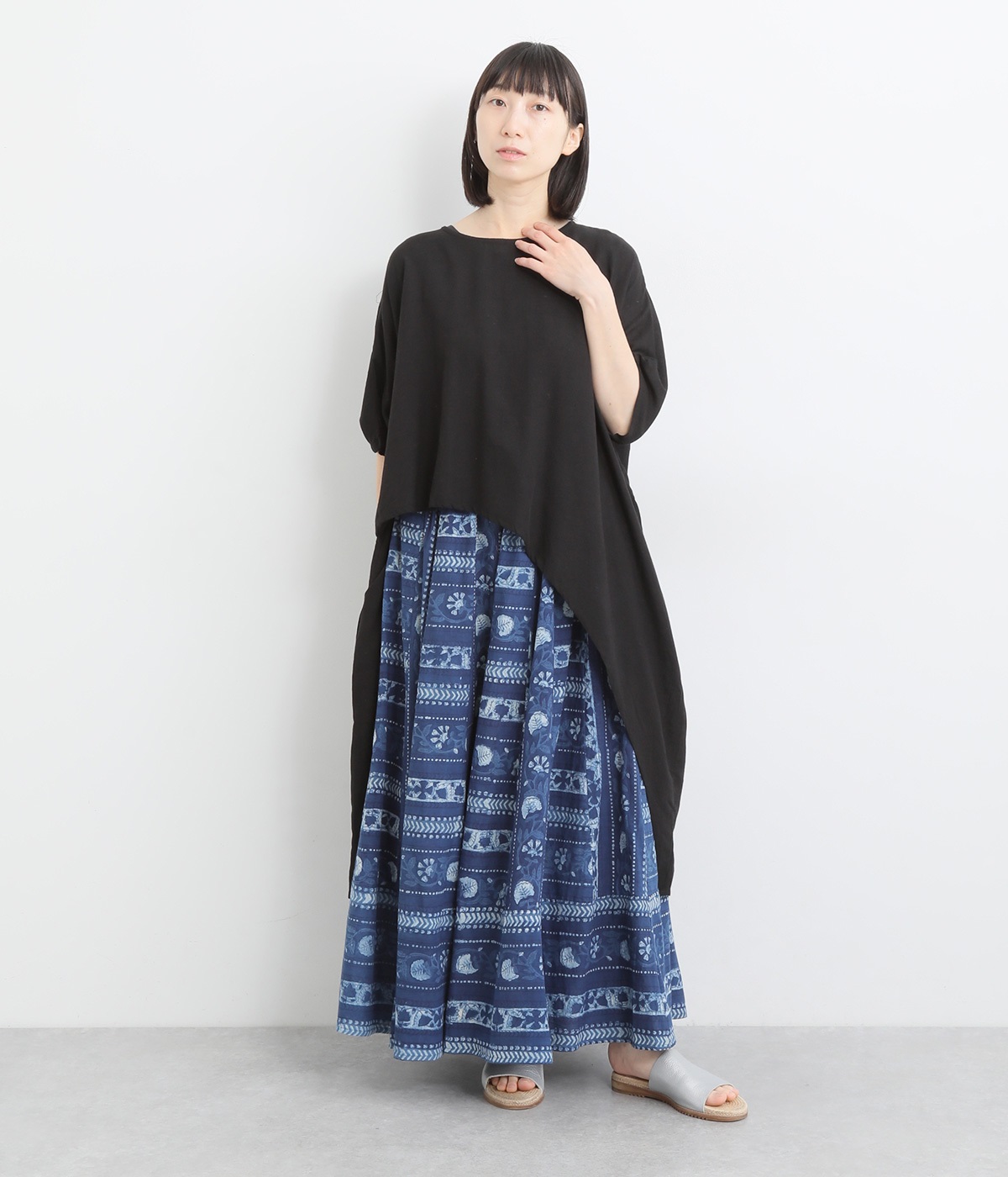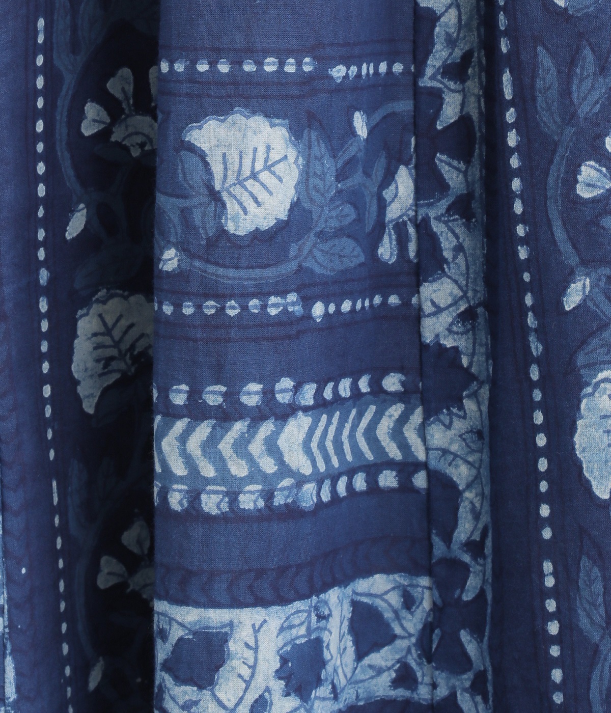 肌ざわりのよい、やわらかな質感のインドコットンを使用しています。泥を用いて防染する、インド伝統のダブプリントは深い色合いが特徴です。