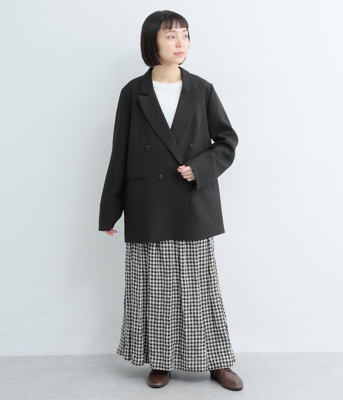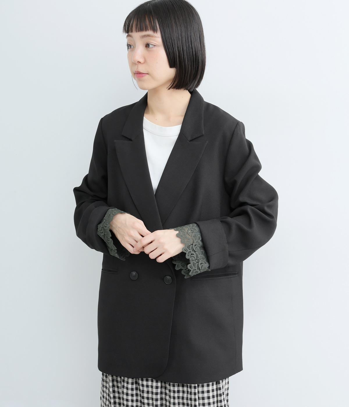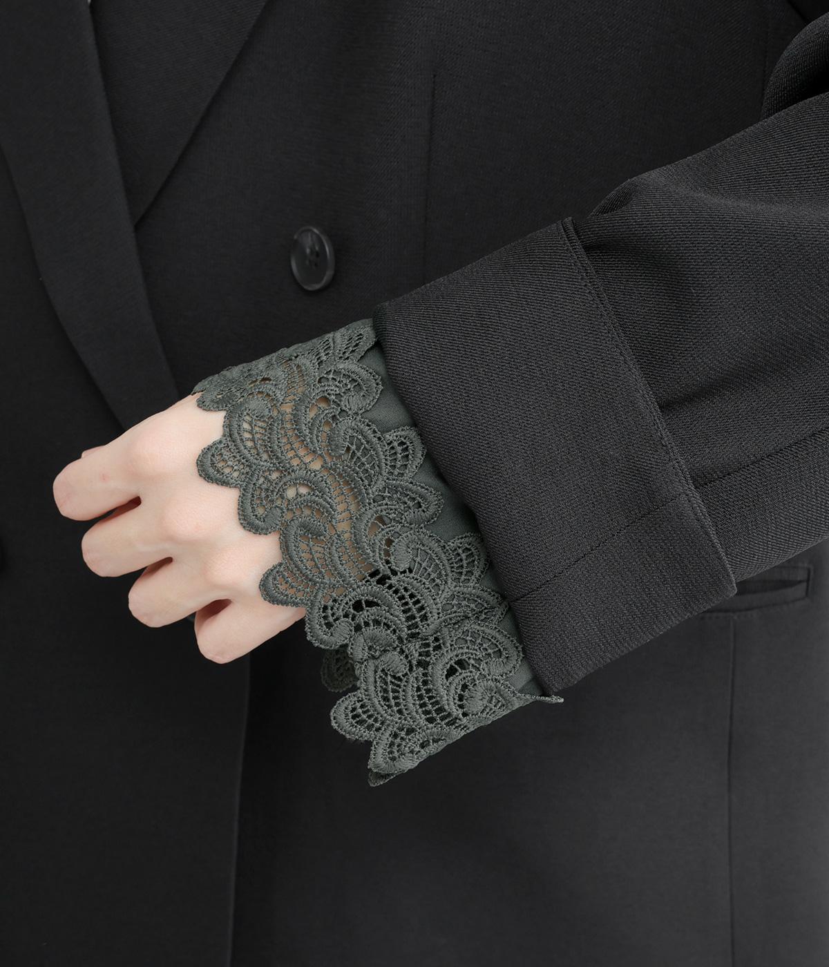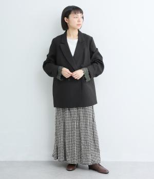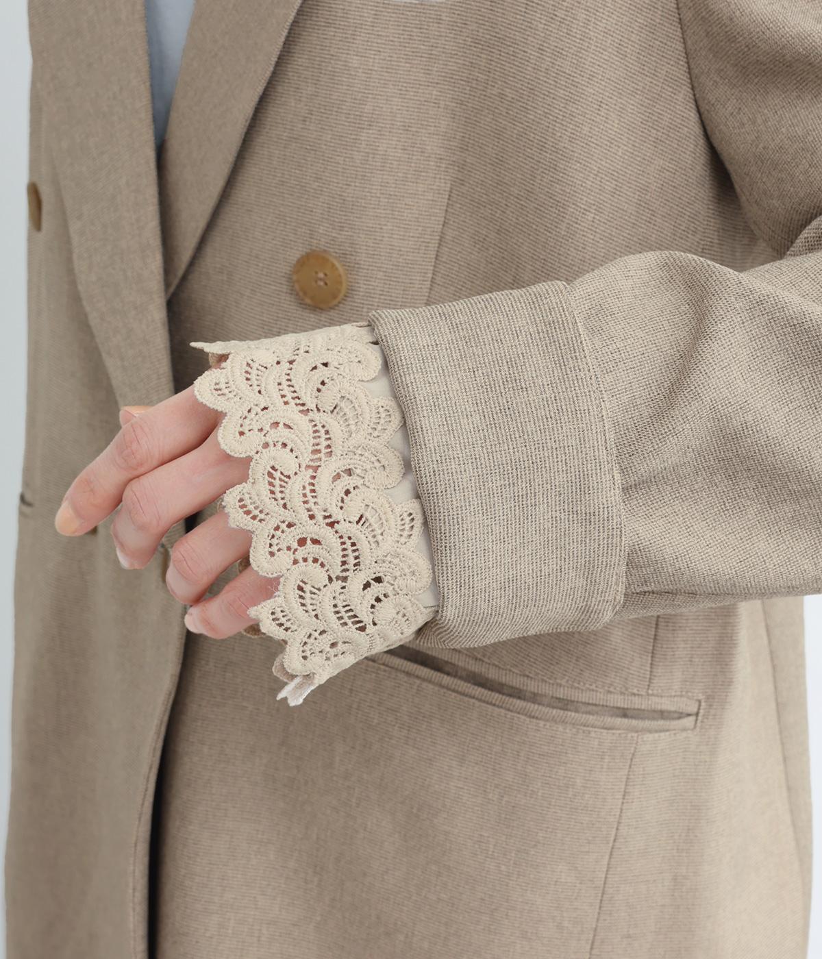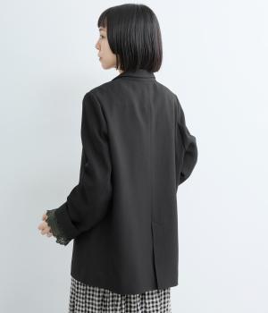 ほどよくゆとりのあるオーバーサイズシルエットが、抜け感のある着こなしを叶えます。袖口を折り返すことで見えるレースがアクセントになり、マニッシュさのなかにやわらかな女性らしいニュアンスをプラス。開きのある襟元が抜け感を生み、すっきりとした印象に導きます。