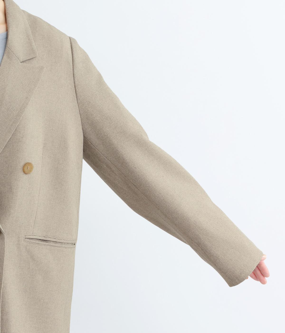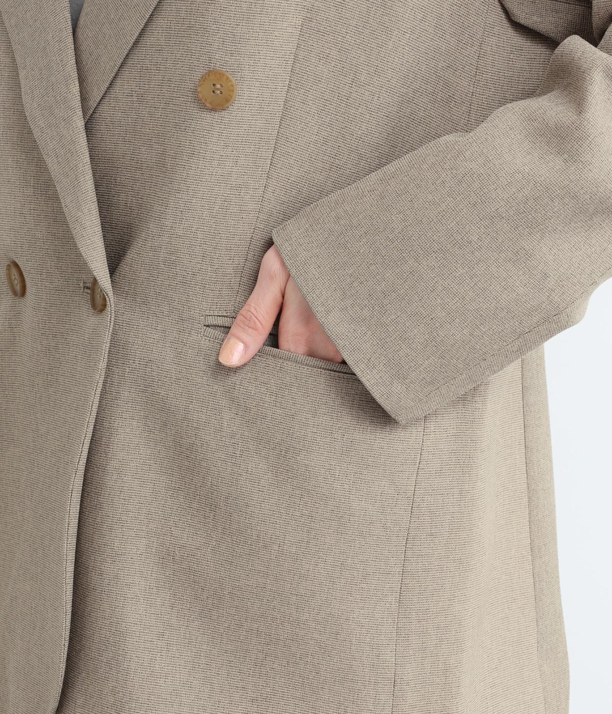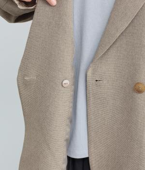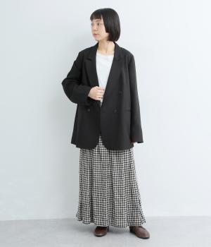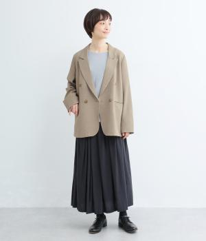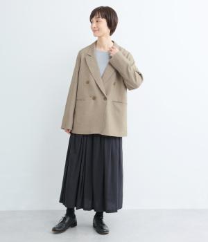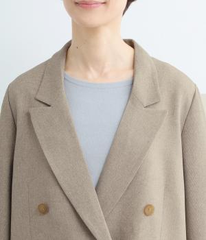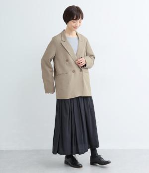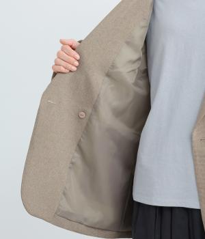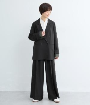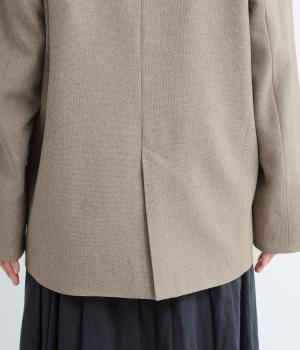 さらりとしたドライなタッチが心地よい、ポリエステルベースの生地を使用しました。杢調の表情にほのかな光沢が加わり、カジュアルになりすぎない落ち着いた印象に。ほんのりストレッチがきいて動きやすく、シワになりにくい扱いやすさも魅力です。