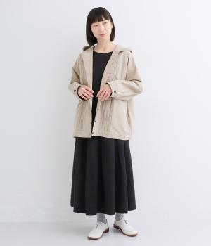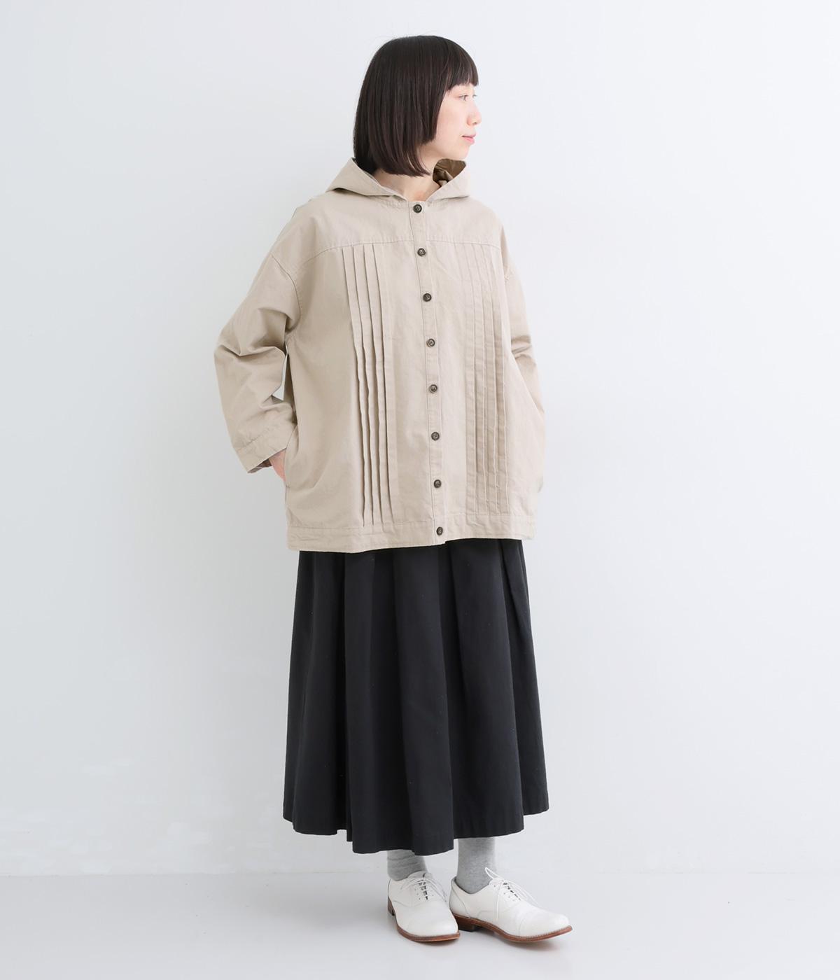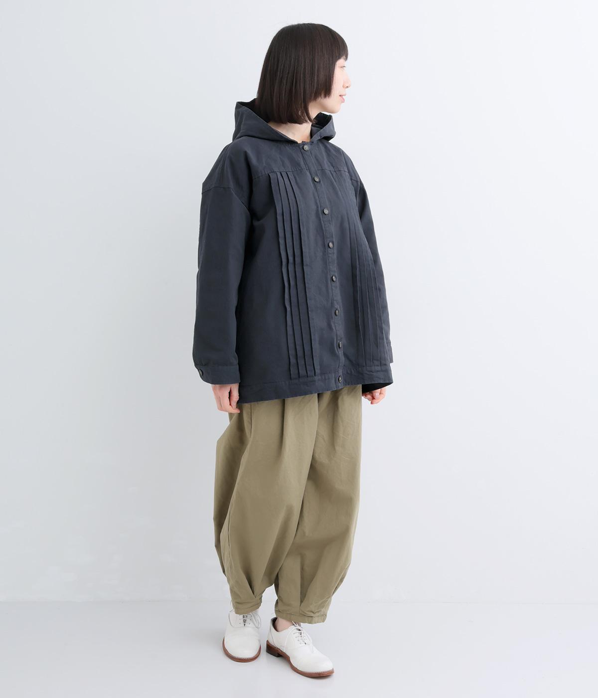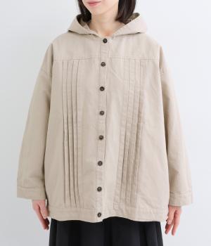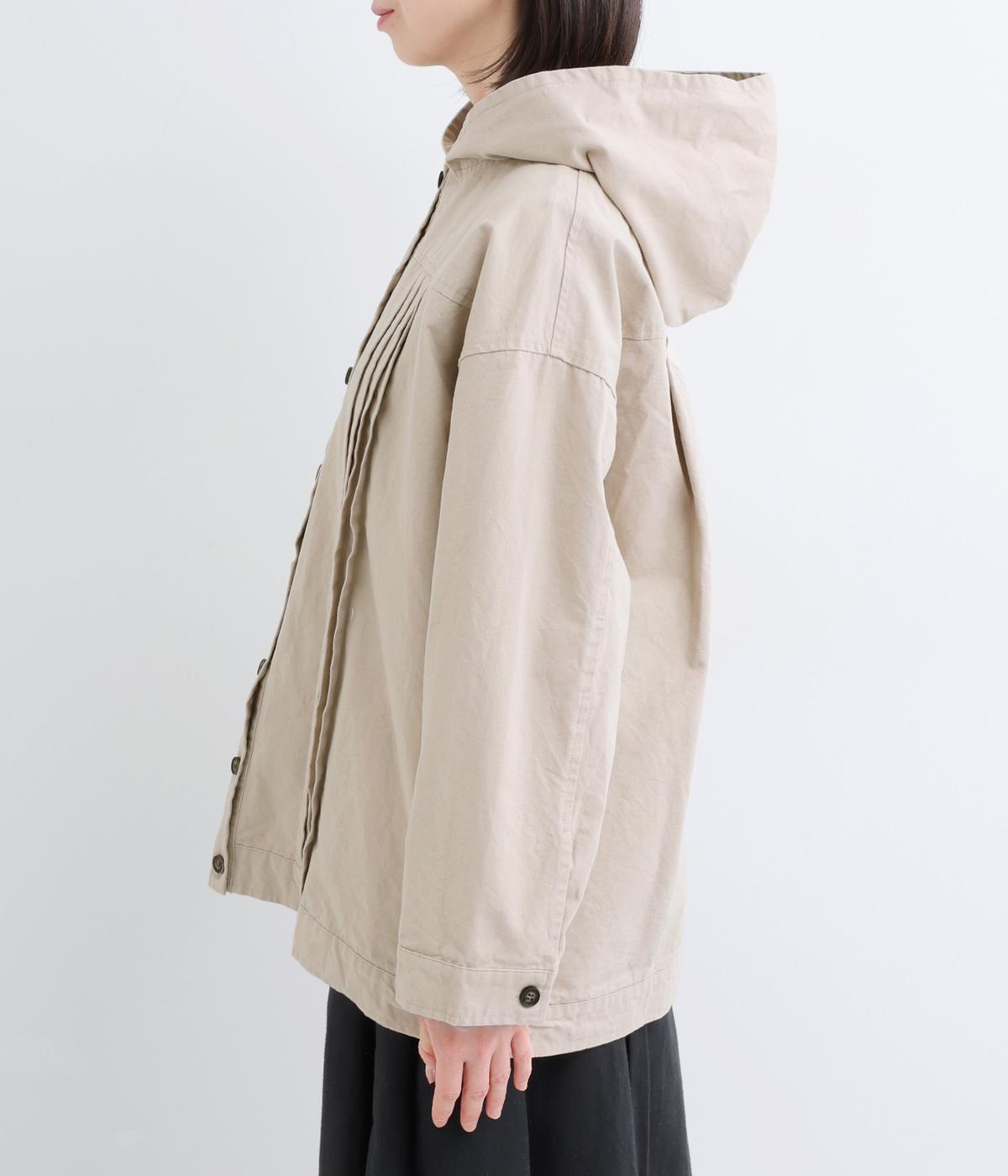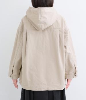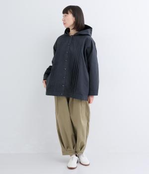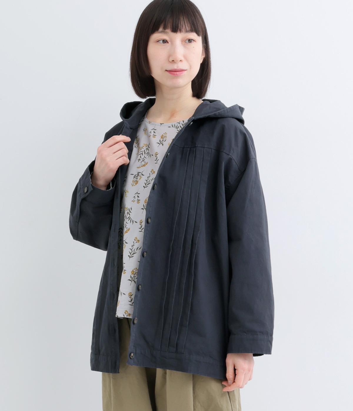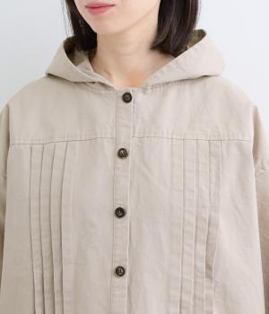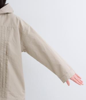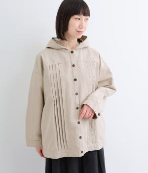 ゆったりとしたシルエットを、ヨークの切り替えとピンタックの縦ラインでほどよく引き締めたバランスに。カジュアルなフードジャケットにひとさじのデザイン性を加え、ラフさの中に品のある大人の表情に仕上げました。