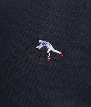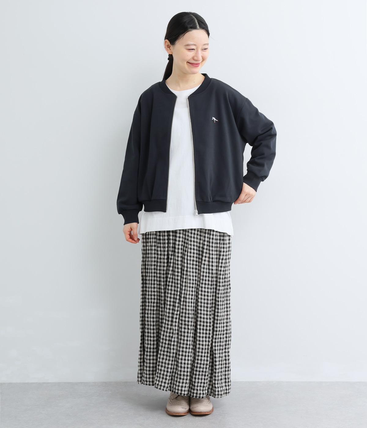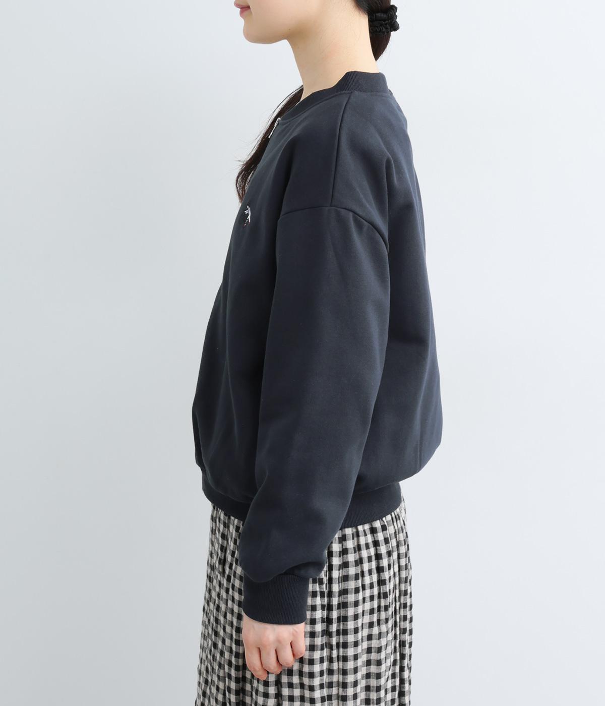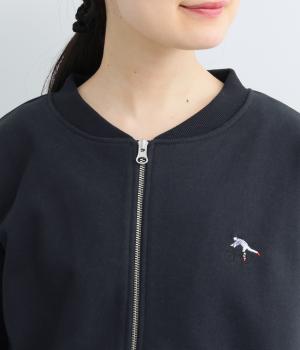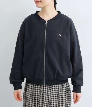 刺しゅうで表現した自転車に乗ろうとしている男の子がワンポイントのジャケット。デイリーにぴったりなスウェット素材に、ほどよい開き具合の首まわりやすっきりした丈感で、バランスの良いシルエットに仕上げました。
