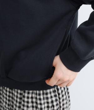 コットンの柔らかな肌ざわりに、ポリエステルの軽量性や型崩れのしにくさが合わさった機能的なスウェット素材です。ゴワつきが少なくしなやかで、春先や初夏でもスッキリと着こなせます。