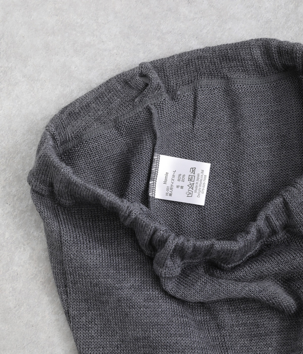 内側をシルク、外側をウールでふんわり編み立てました。天然素材なので静電気が起こりにくく、やさしい肌触りが特徴です。
