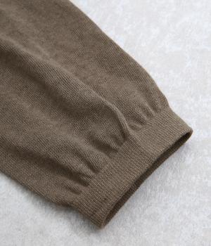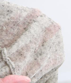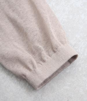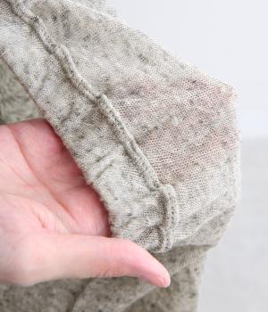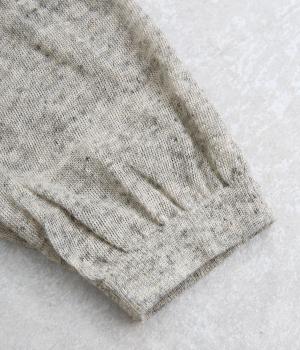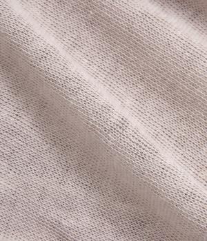 綿麻の天然素材で編み上げ、裏糸を使わず締め付け感を抑えました。風通しがよく、ふんわり軽やかな着心地です。ネップのある素朴な風合いも魅力です。