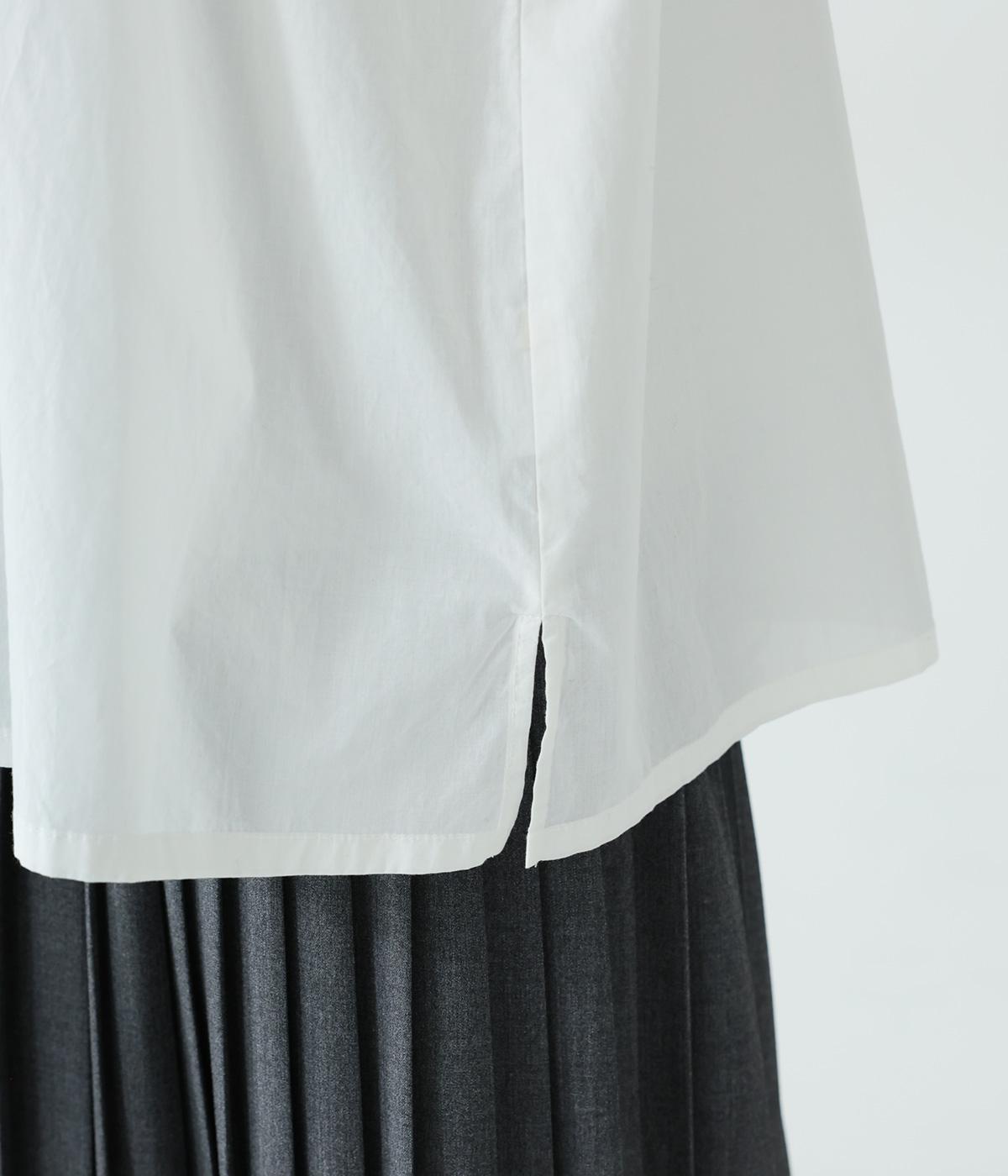 細い糸を使って高密度に織り上げた、とても軽くさらりとした肌ざわりのコットン生地です。ほどよいハリ感が、ふんわりと広がる女性らしいシルエットを表現。薄手でロングシーズン着まわせます。