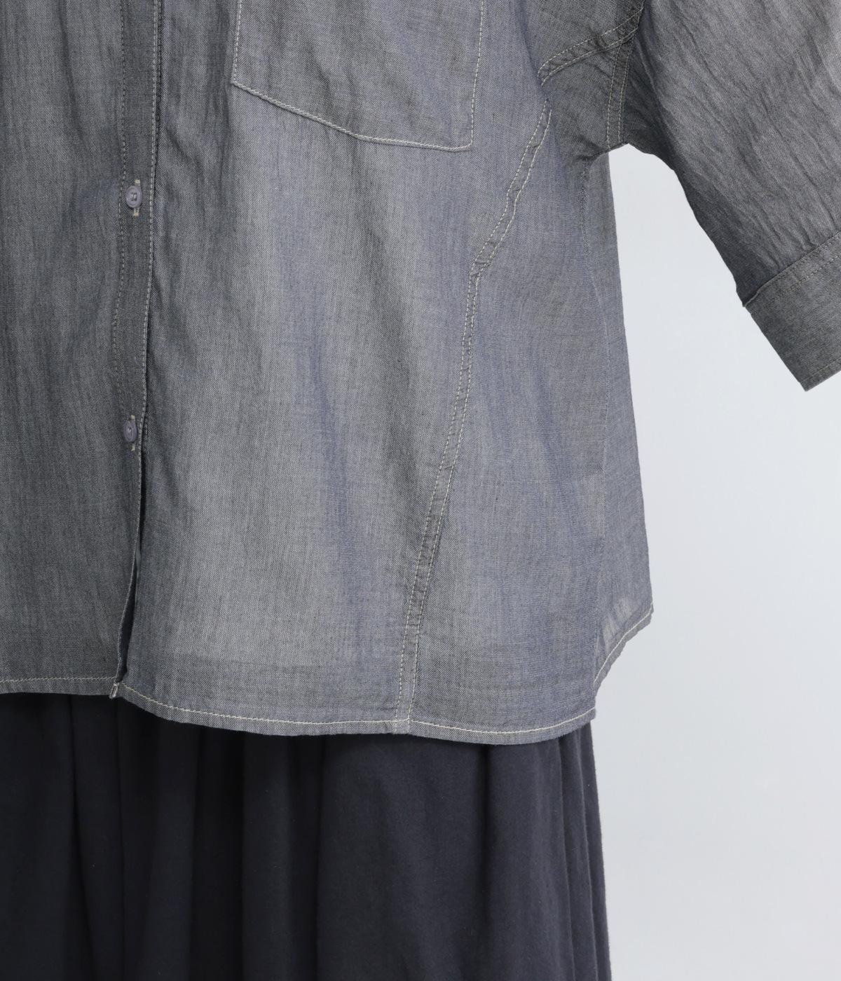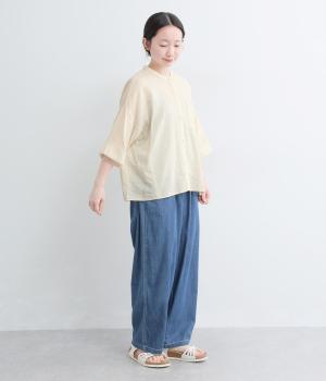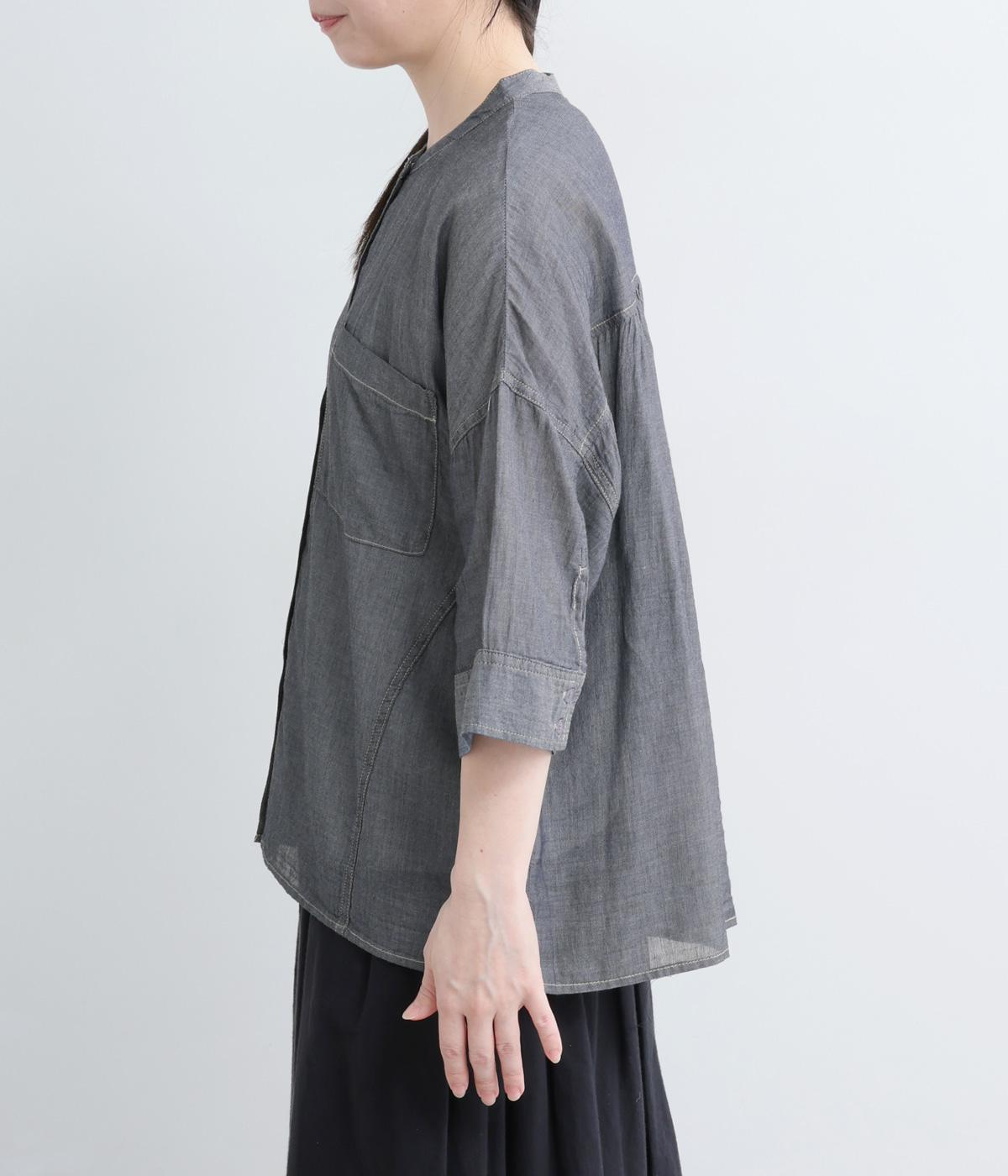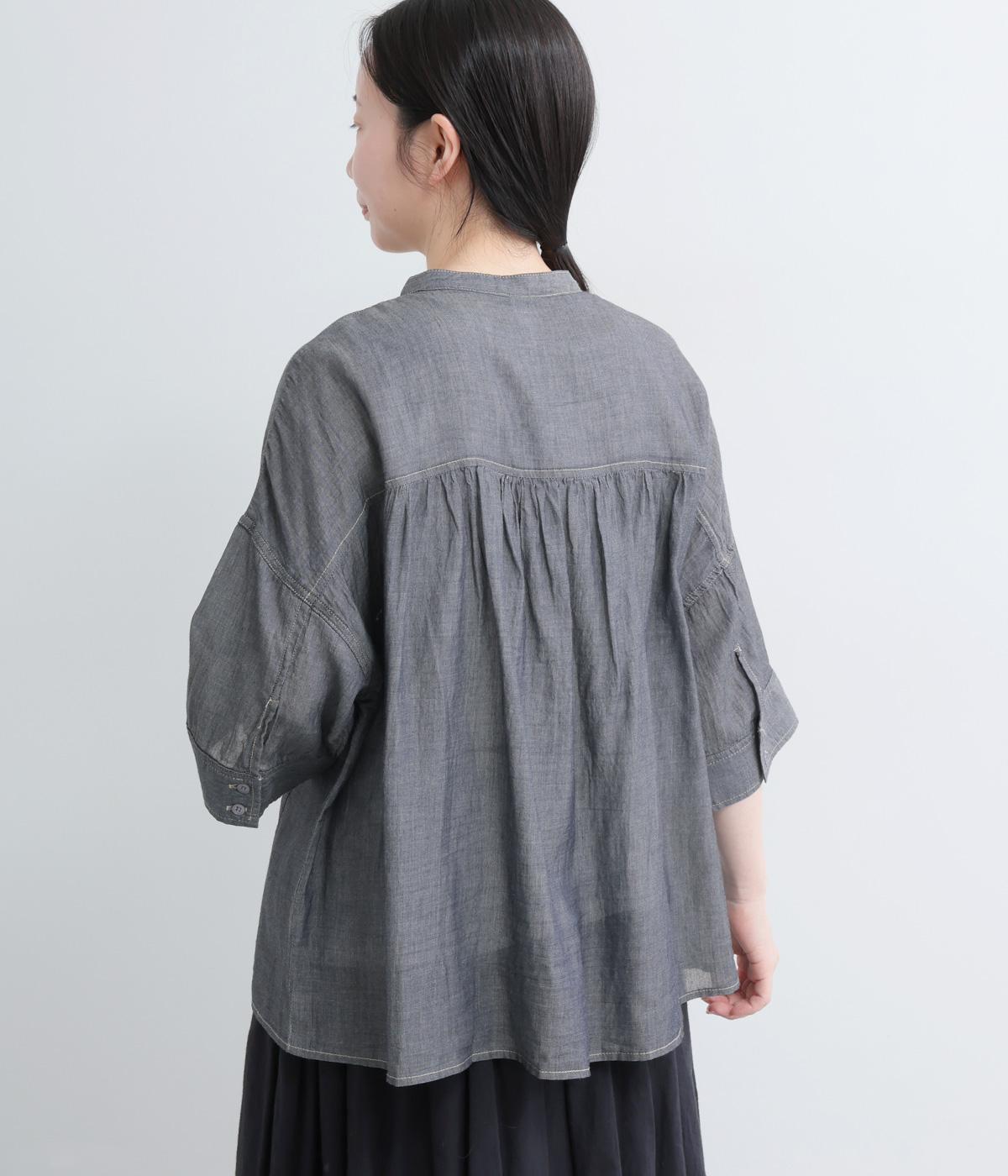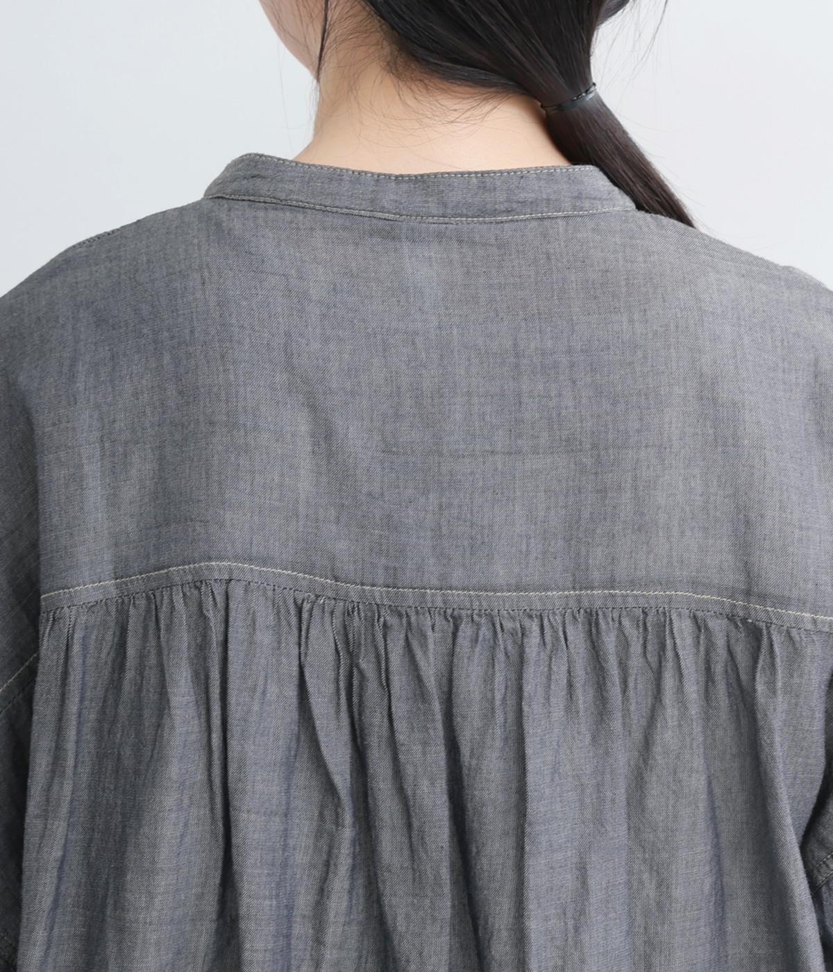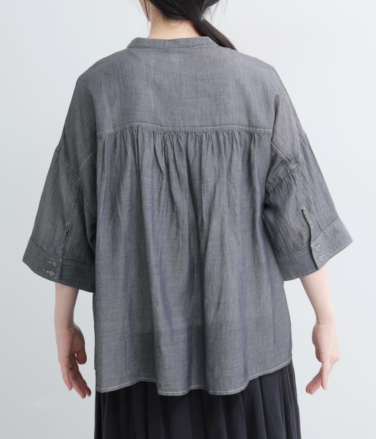 3.25ozデニム ウエスト切替ギャザーブラウス