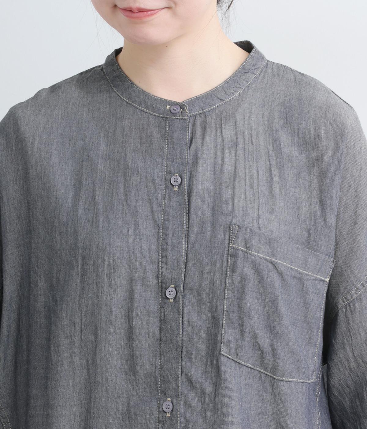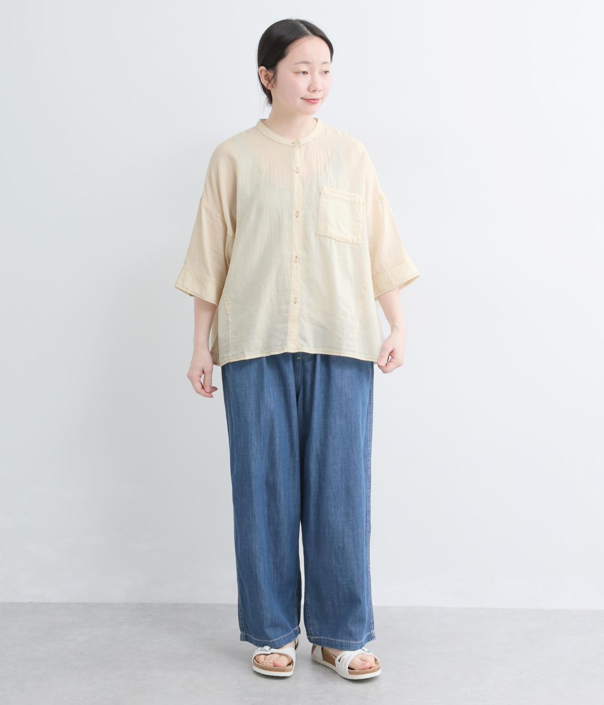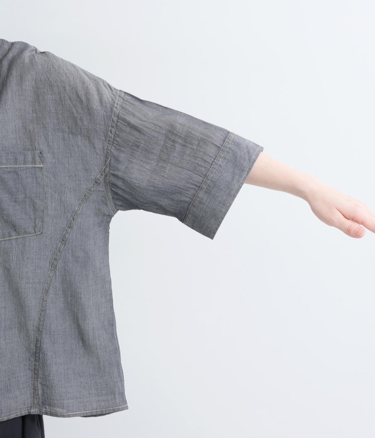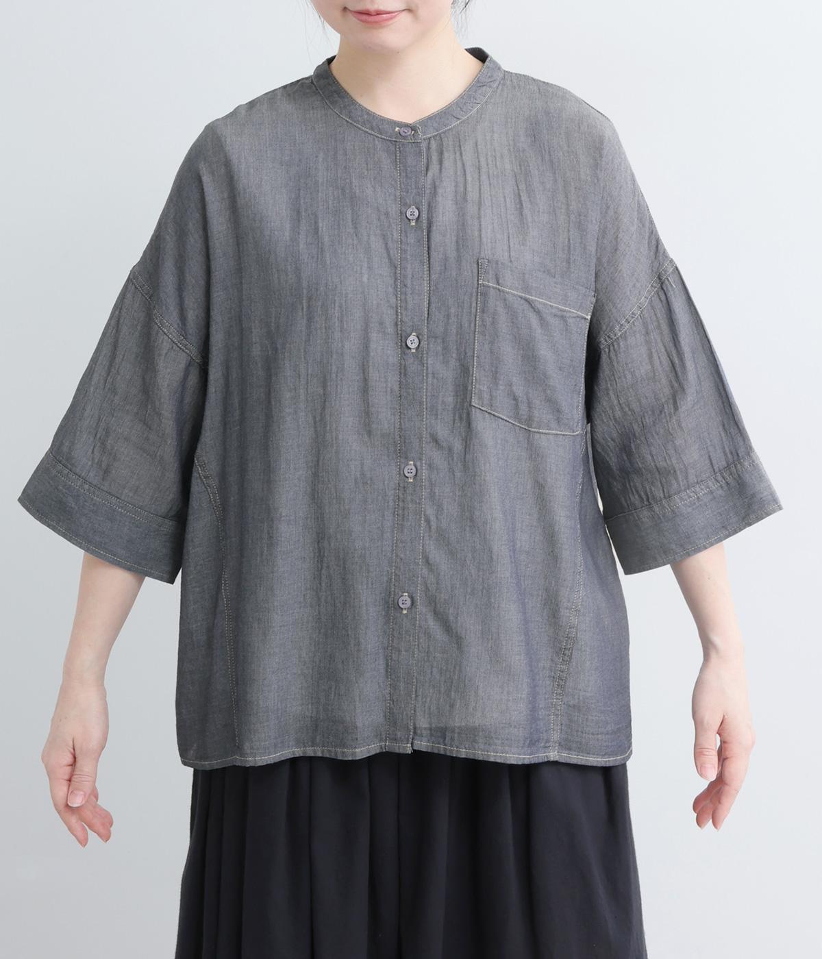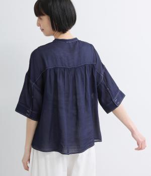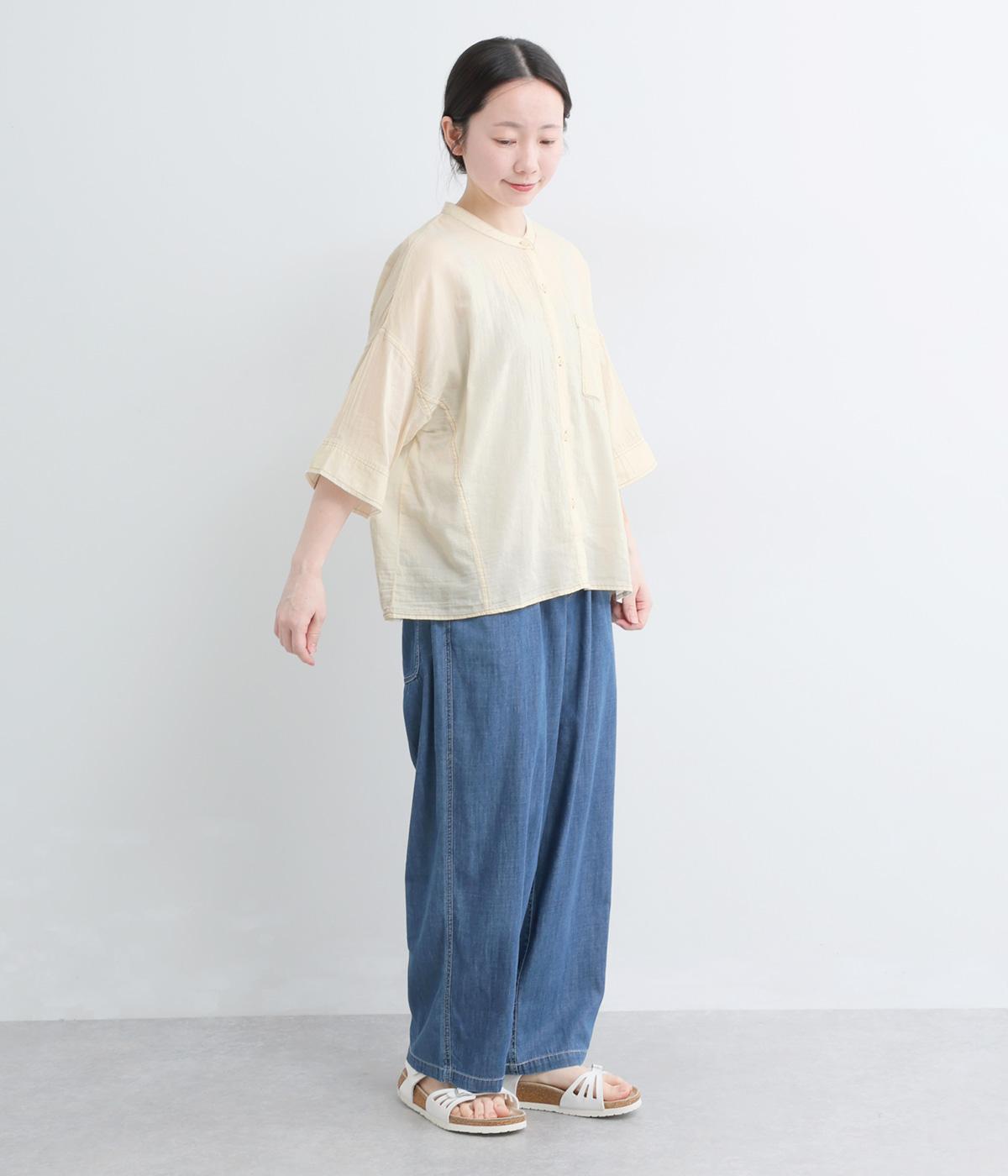 3.25ozデニム ウエスト切替ギャザーブラウス