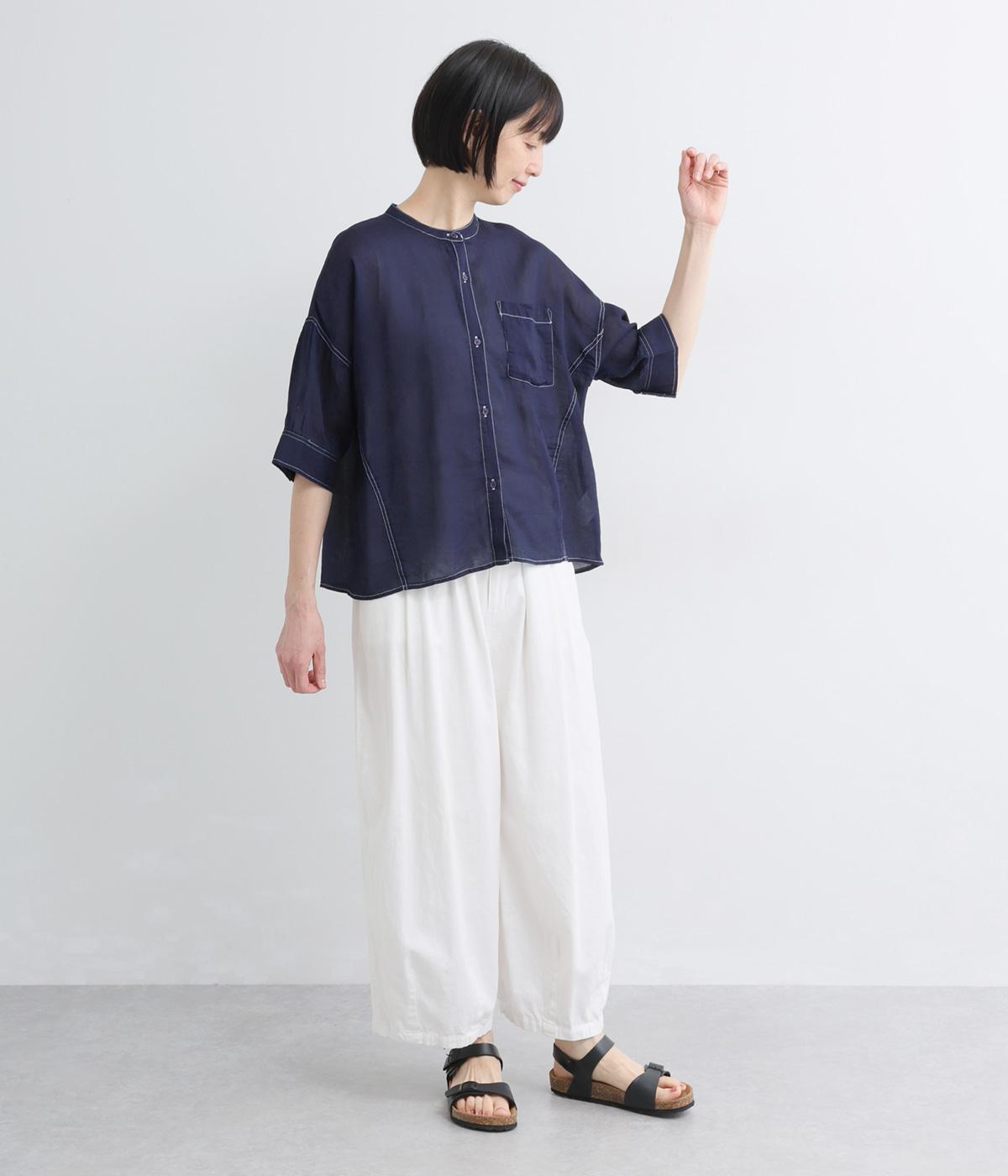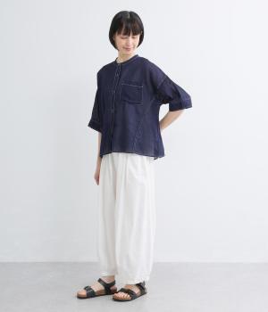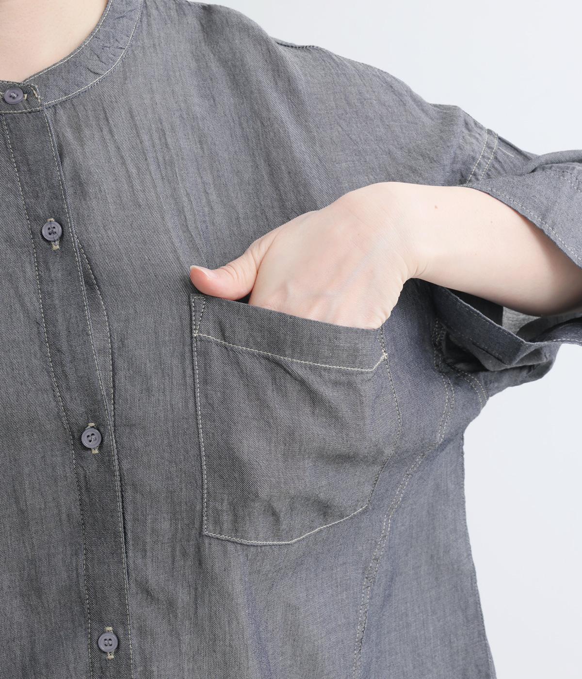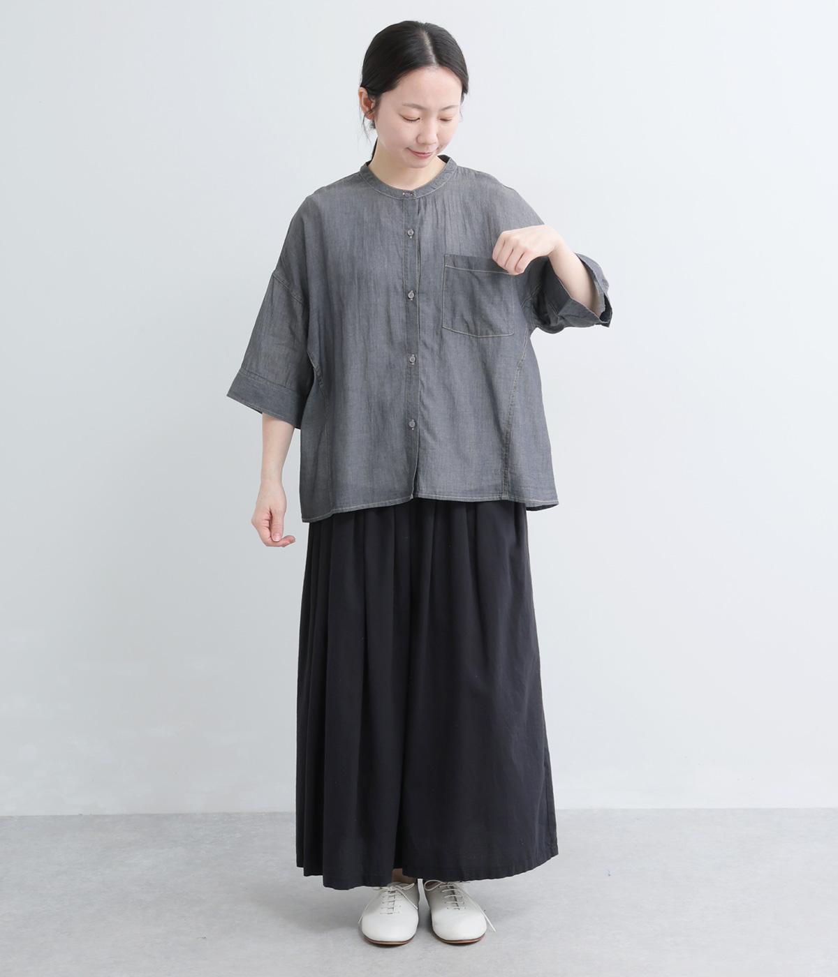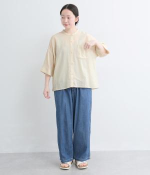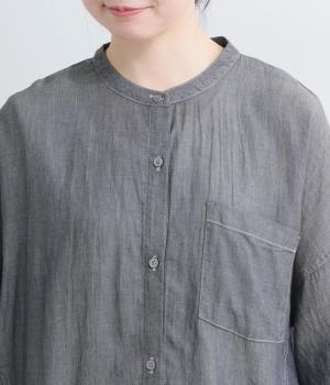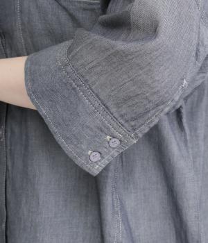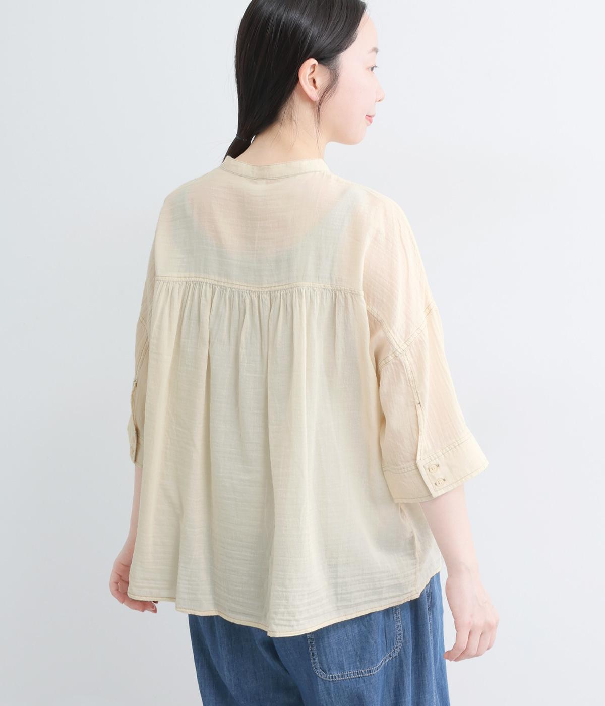 3.25ozデニム ウエスト切替ギャザーブラウス