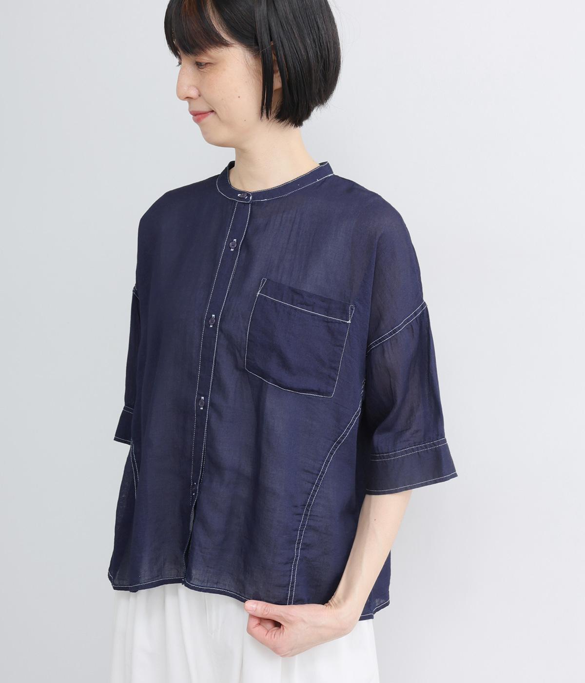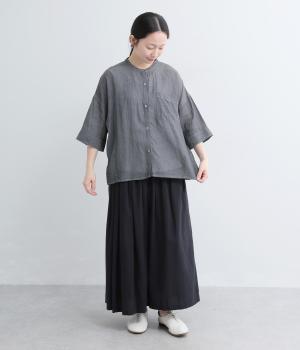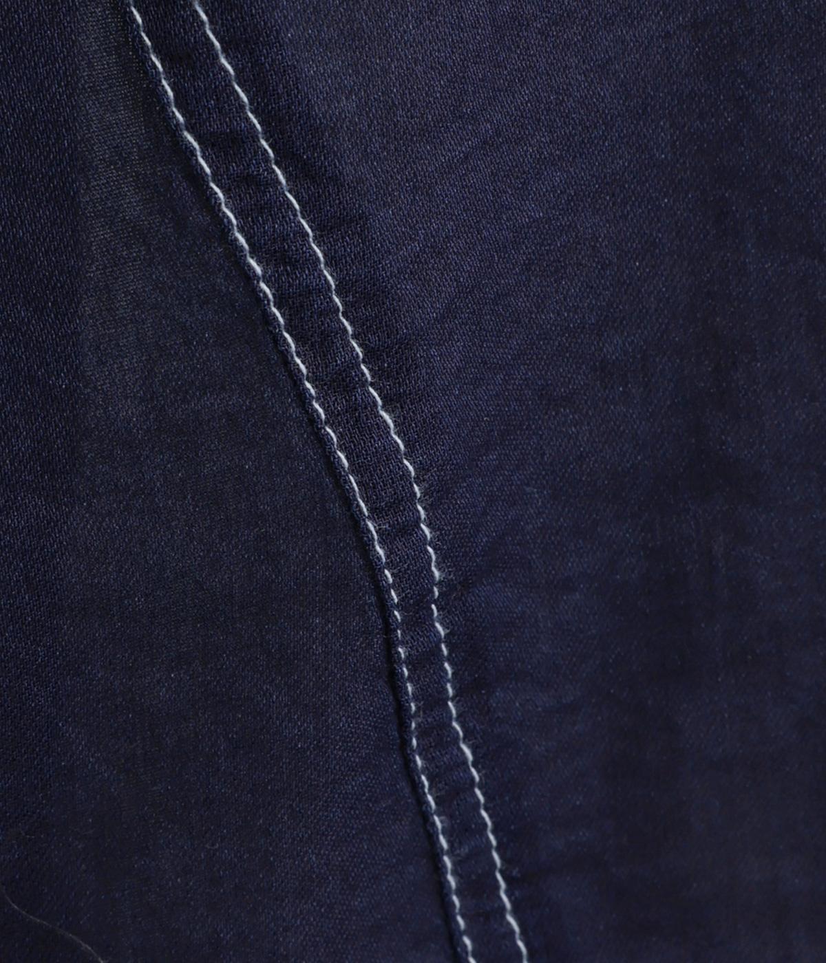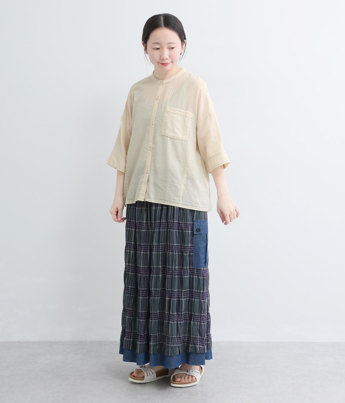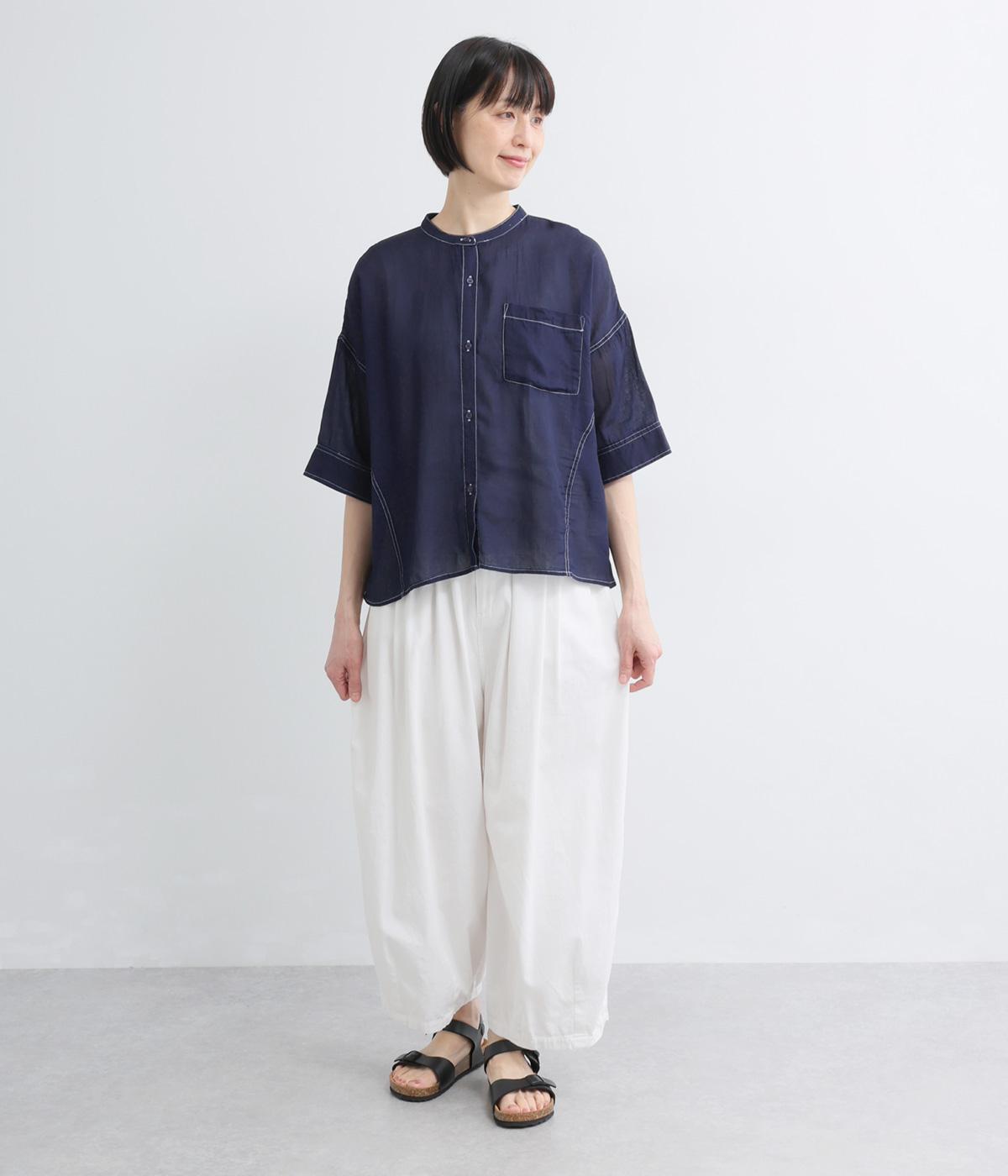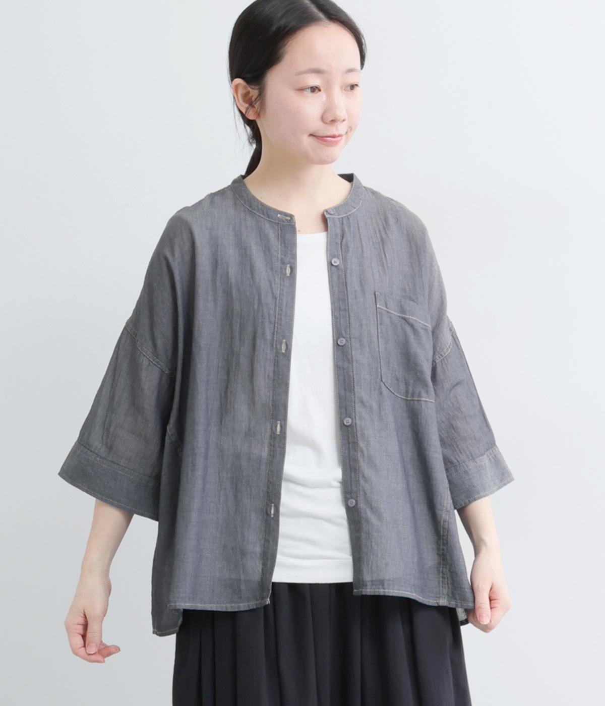 3.25ozデニム ウエスト切替ギャザーブラウス