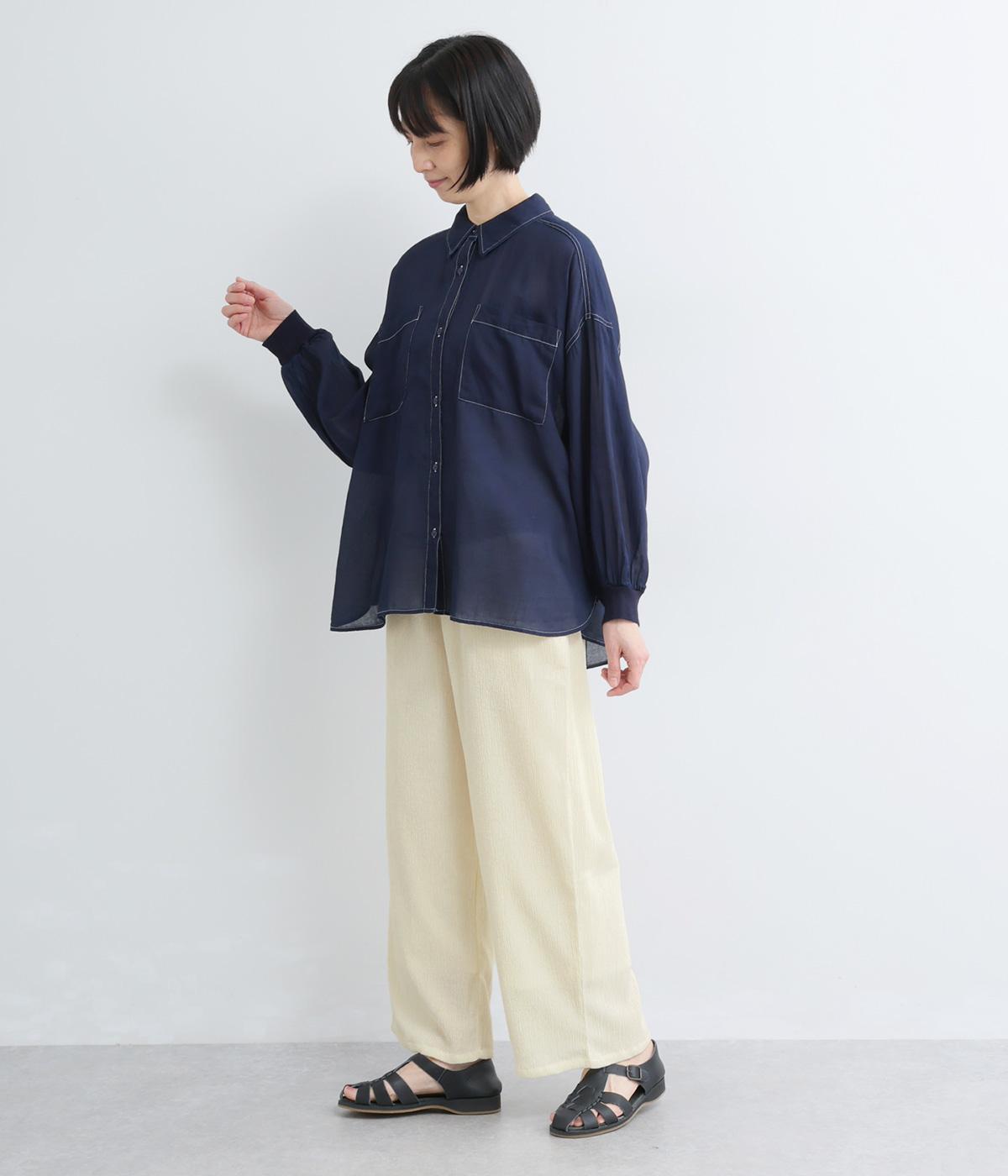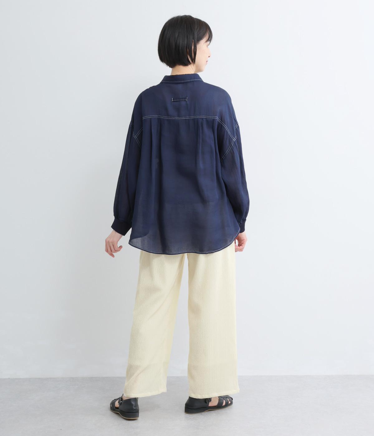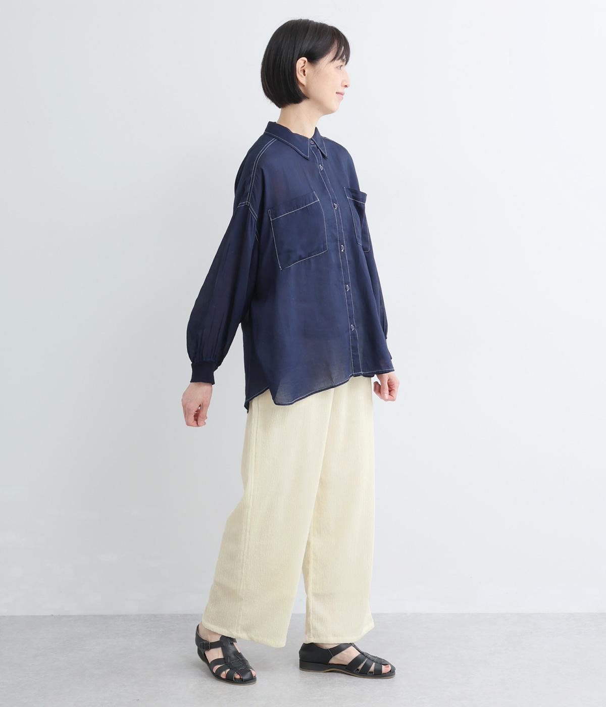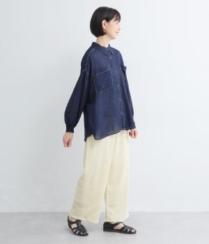 2.2OZデニムステッチ配色 リブ袖ワイドシャツ(インディゴ)