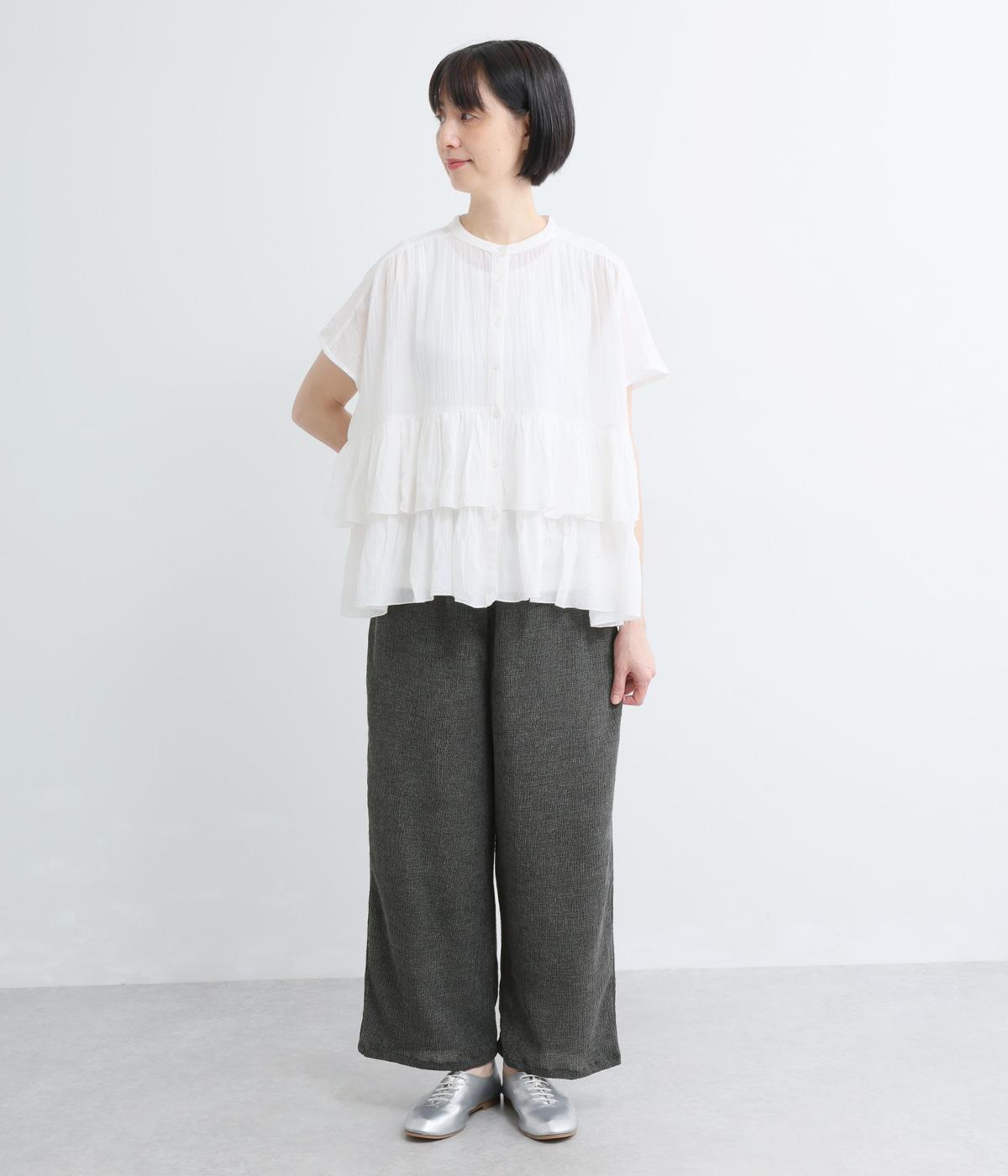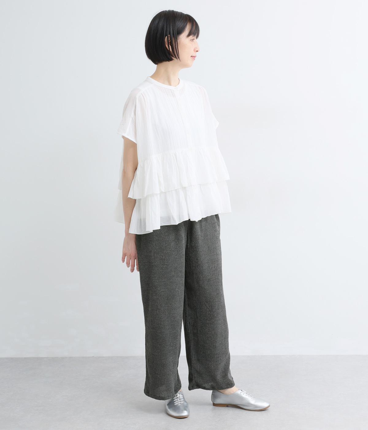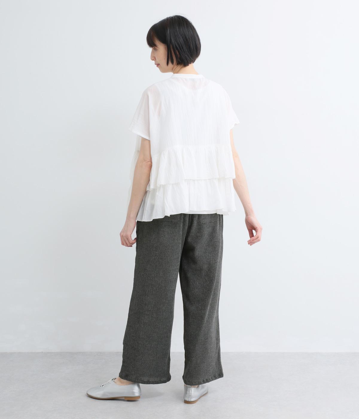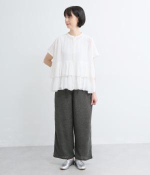 シャーリング裾ゴムワイドパンツ