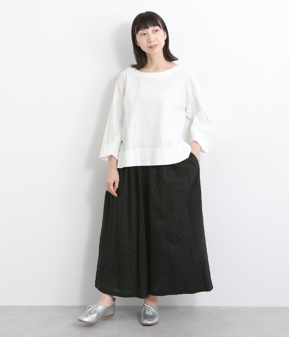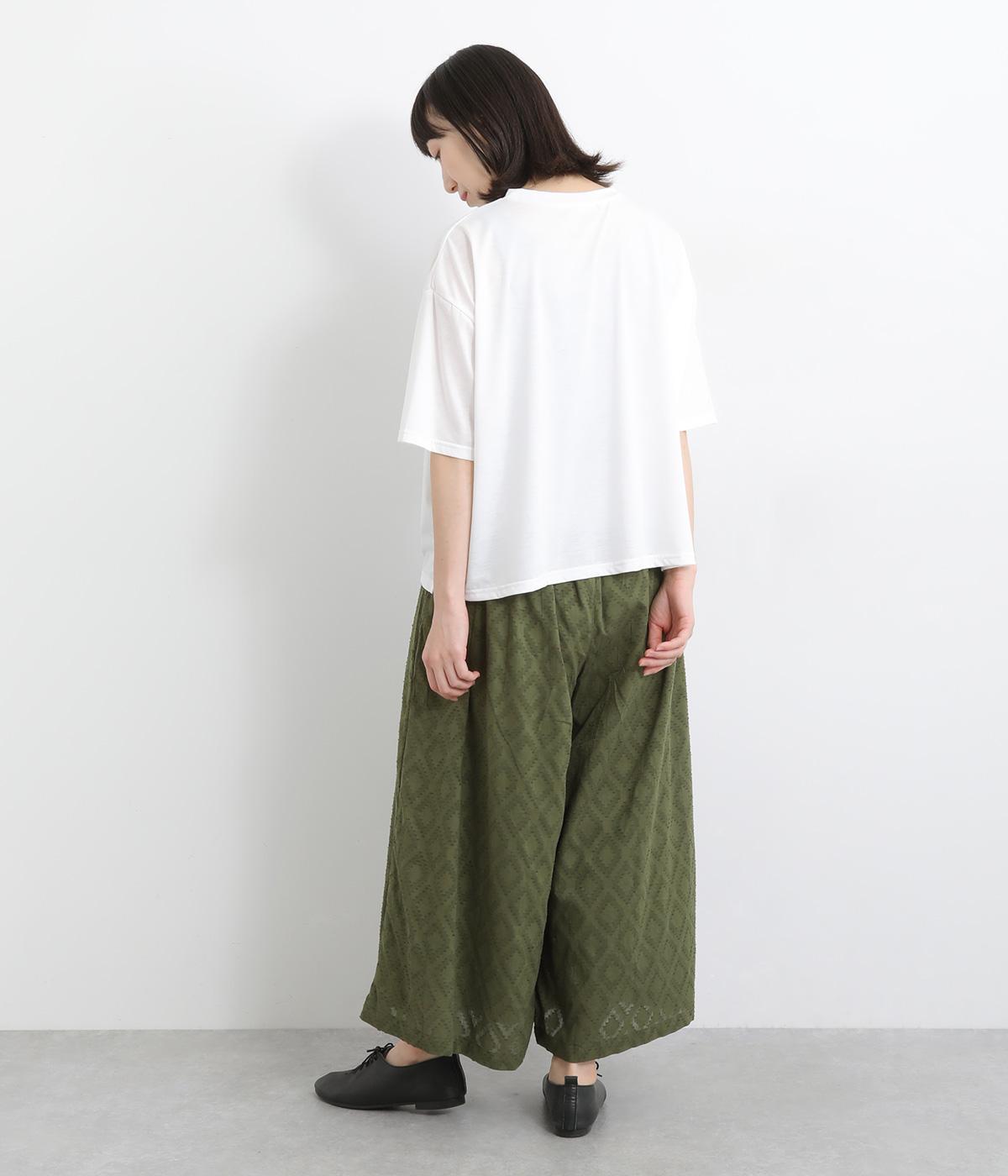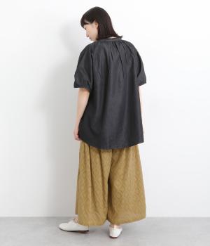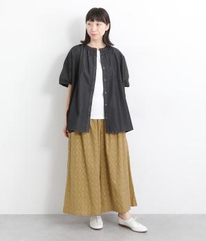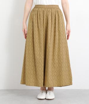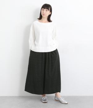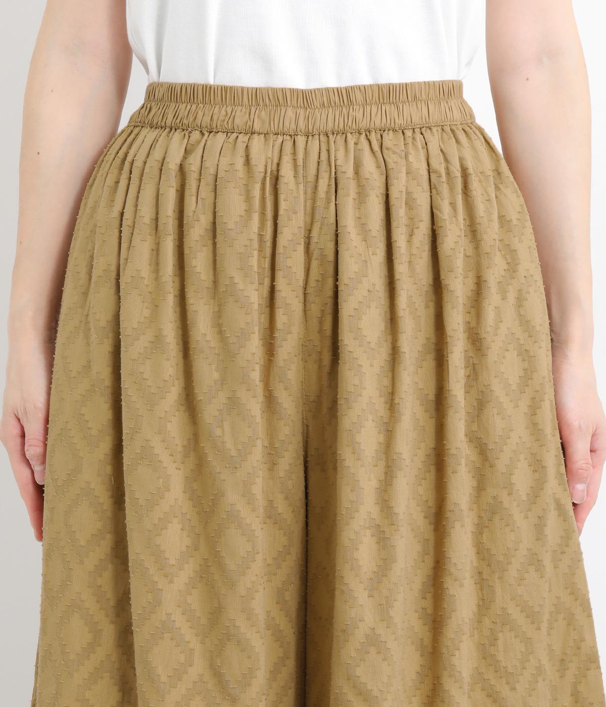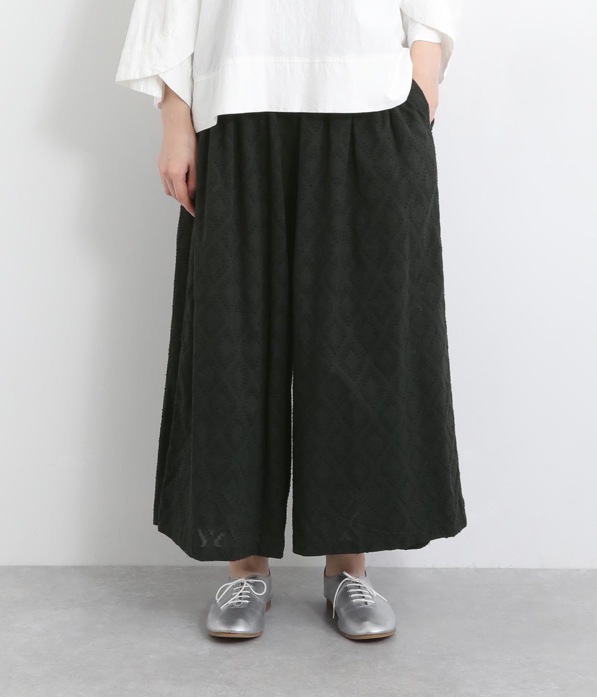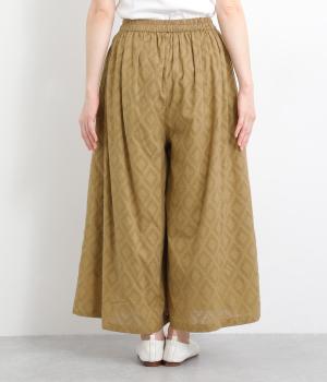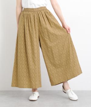 ギャザーを寄せてたっぷりボリューム感を持たせた、スカート見えするワイドパンツです。生地の織柄で着映え力を上げつつ、コーディネートしやすいのがグッドポイント。ウエスト総ゴムで心地よくフィットします。