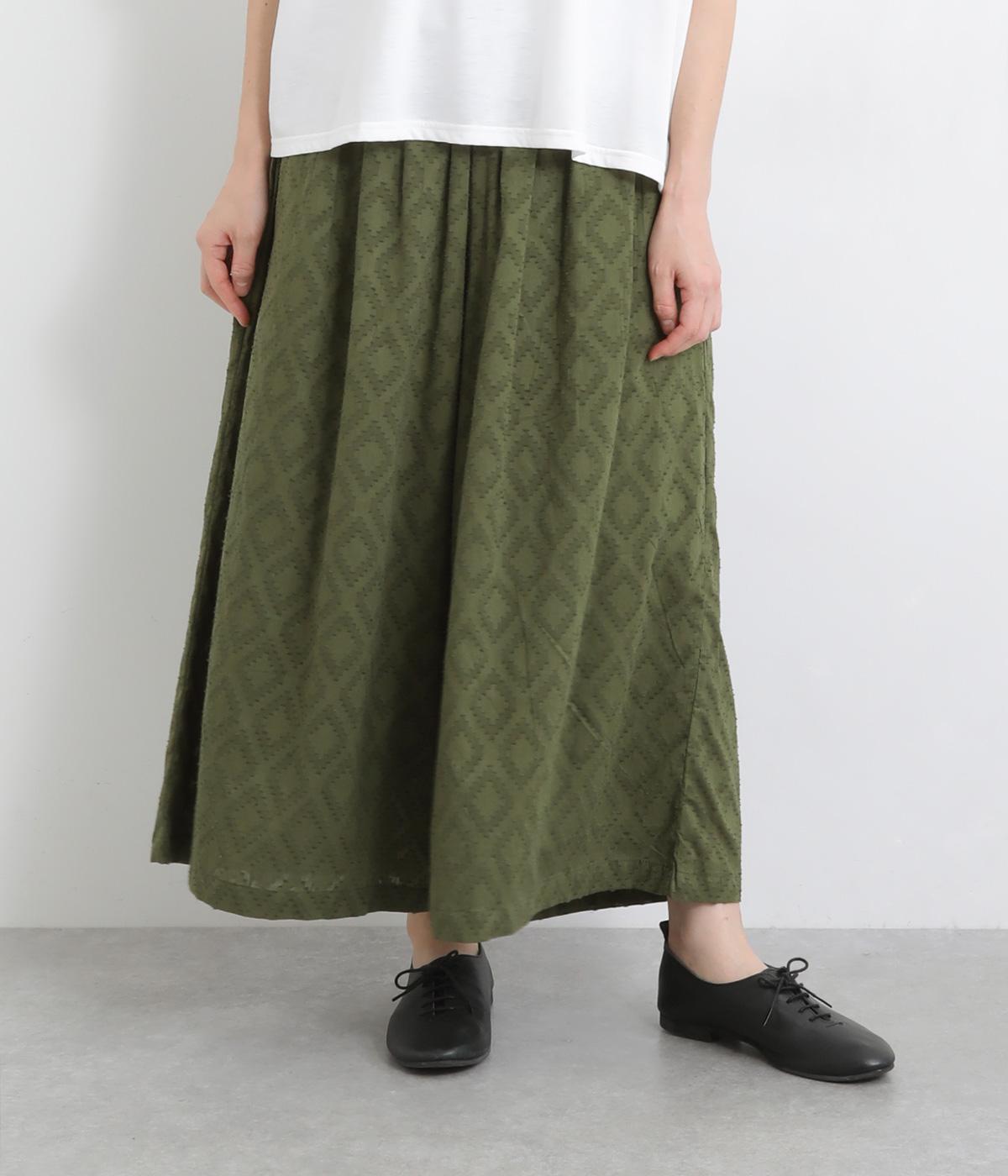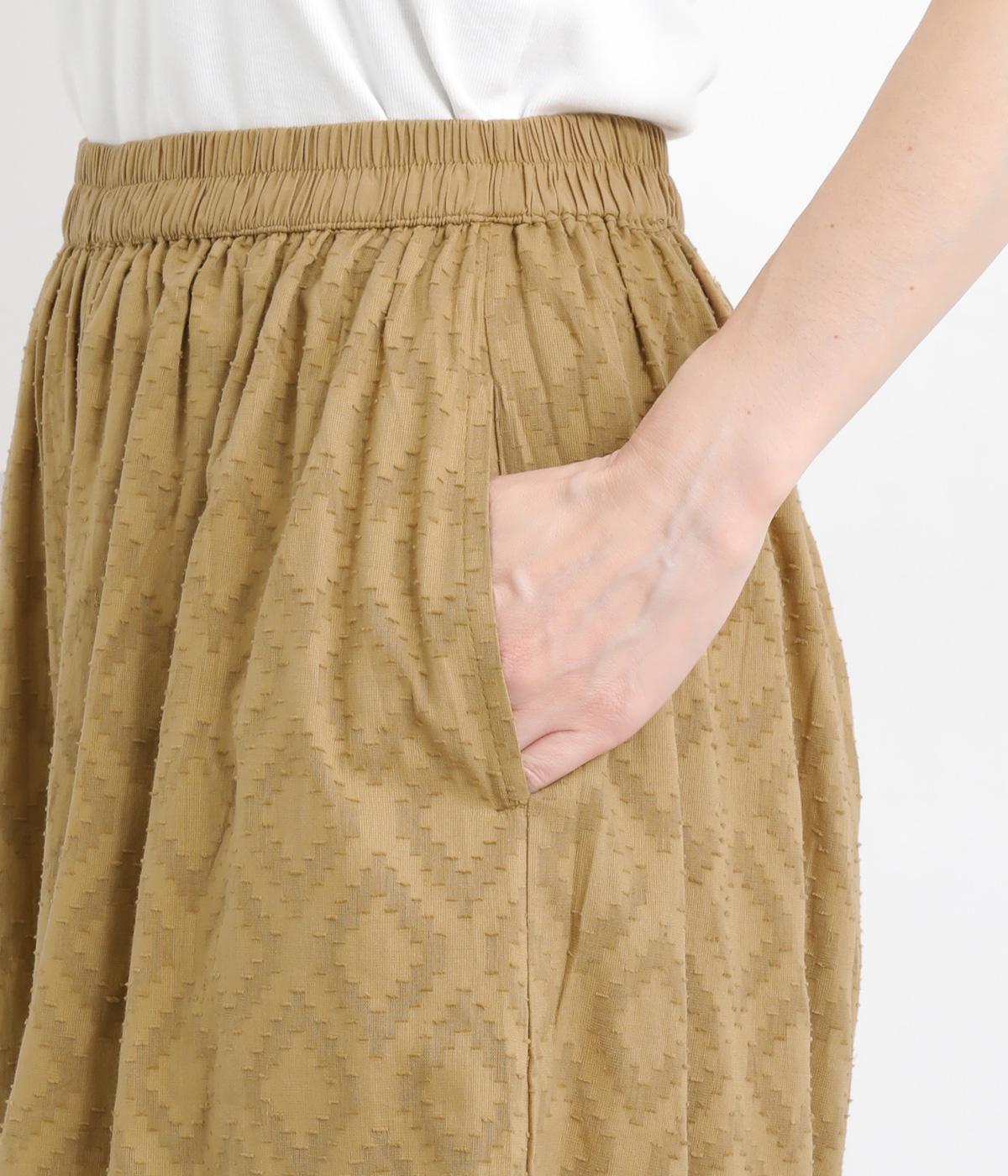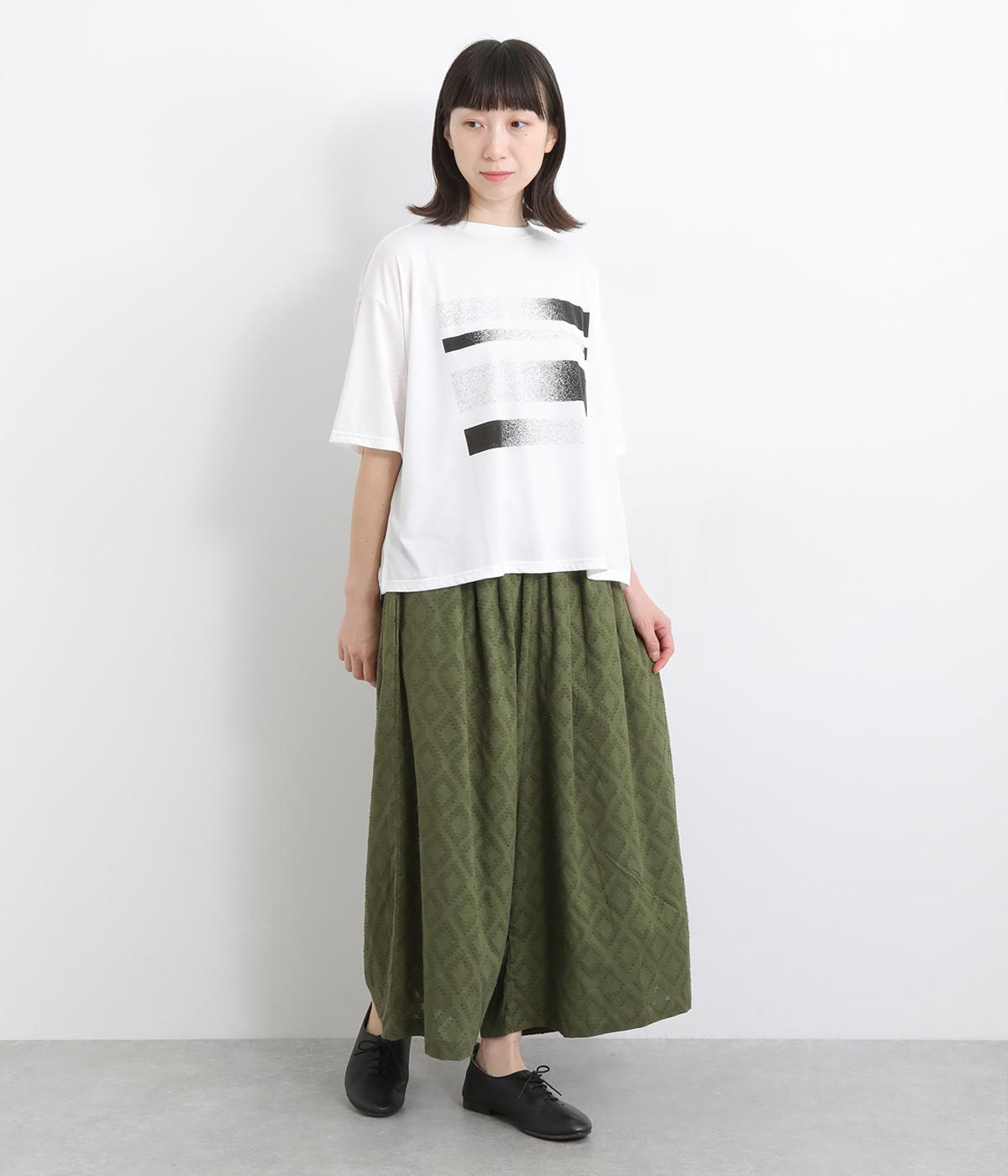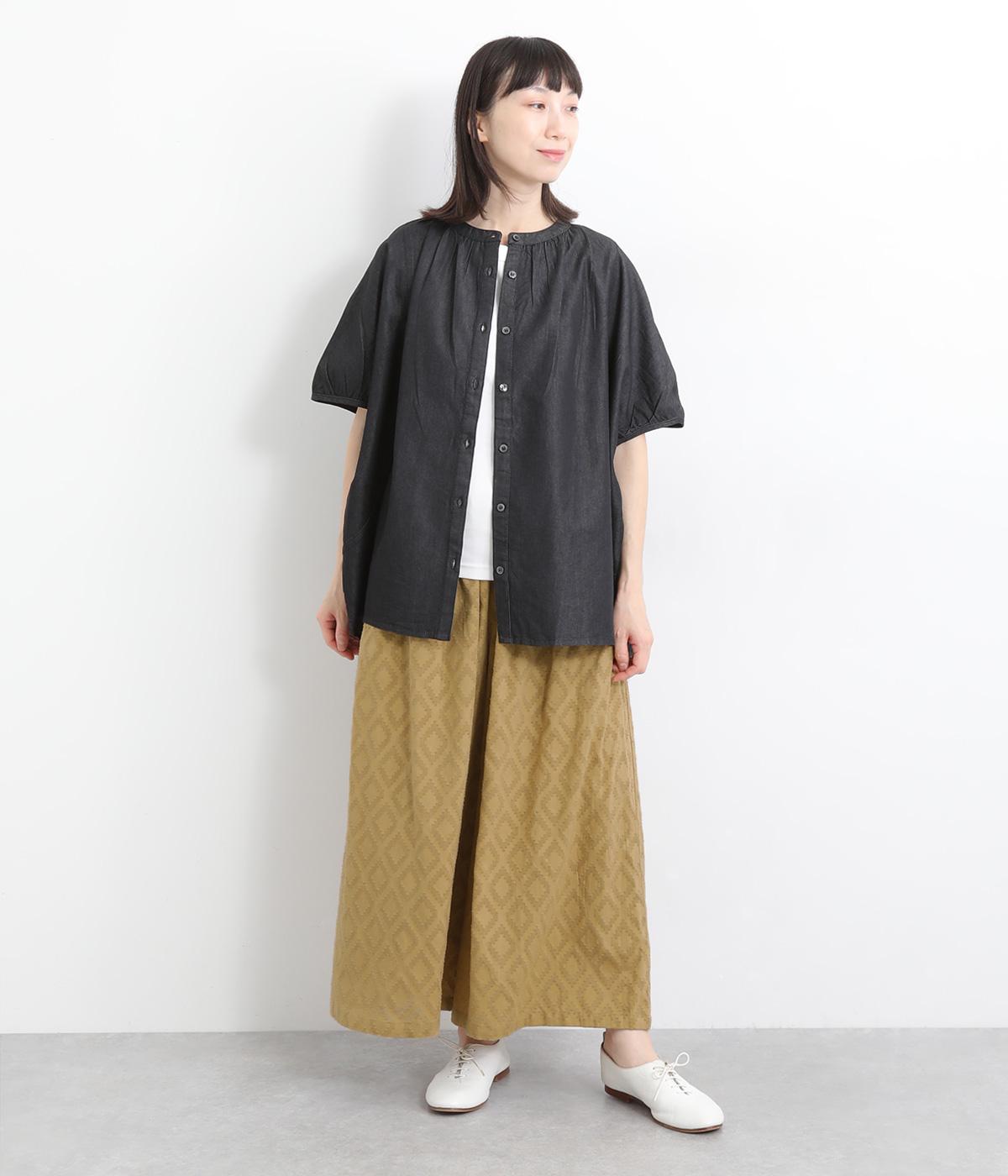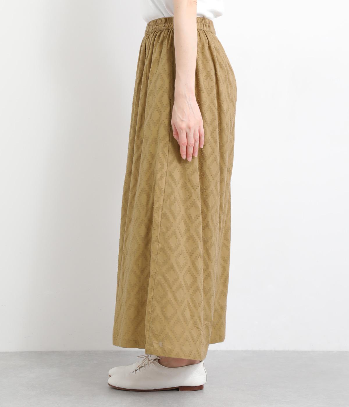 ギャザーを寄せてたっぷりボリューム感を持たせた、スカート見えするワイドパンツです。生地の織柄で着映え力を上げつつ、コーディネートしやすいのがグッドポイント。ウエスト総ゴムで心地よくフィットします。
