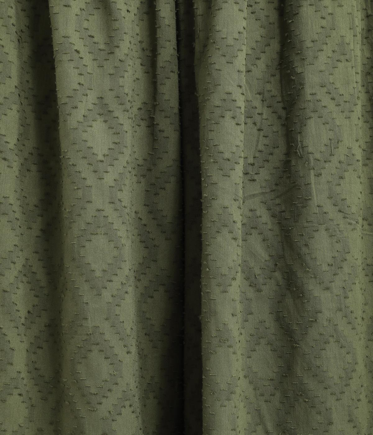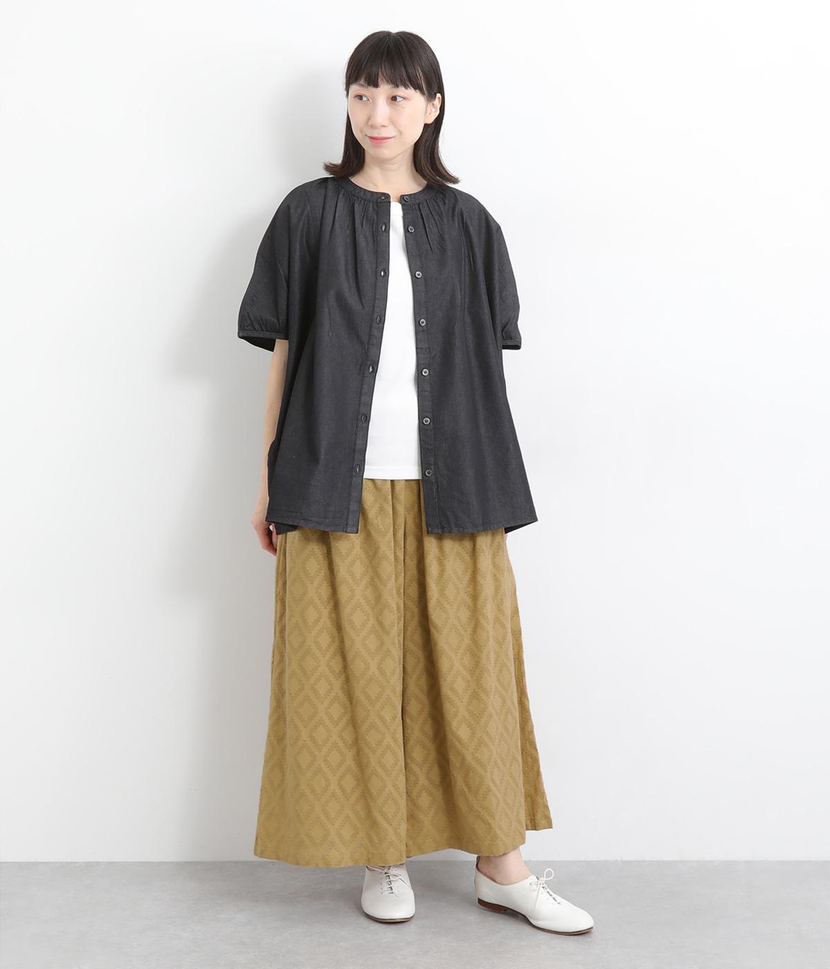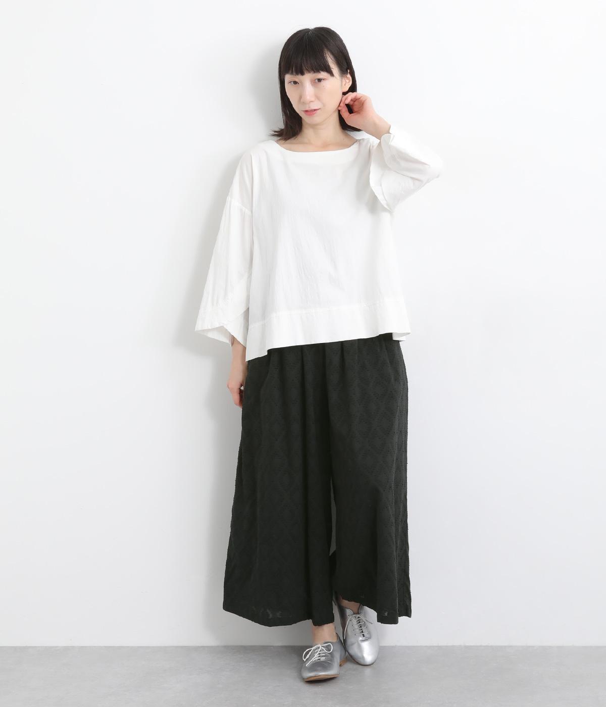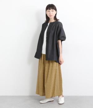 ベースの生地に糸を織りこむことで独特の凹凸が表現された、印象的なダイヤ柄のコットンドビー生地を採用。適度な凹凸感で肌にまとわりつきにくくはき心地も◎。綿の裏地がやさしく透け感をおさえてくれます。