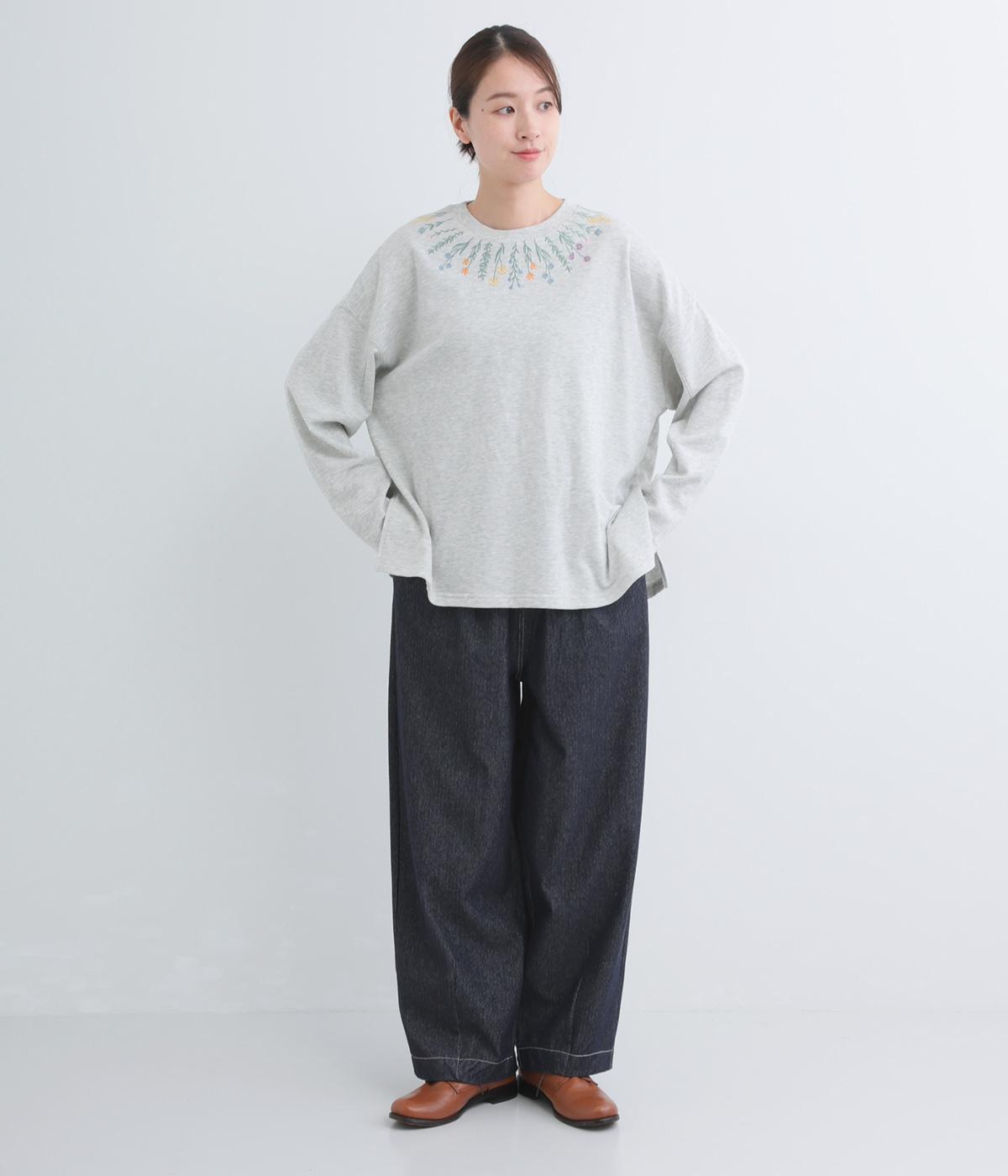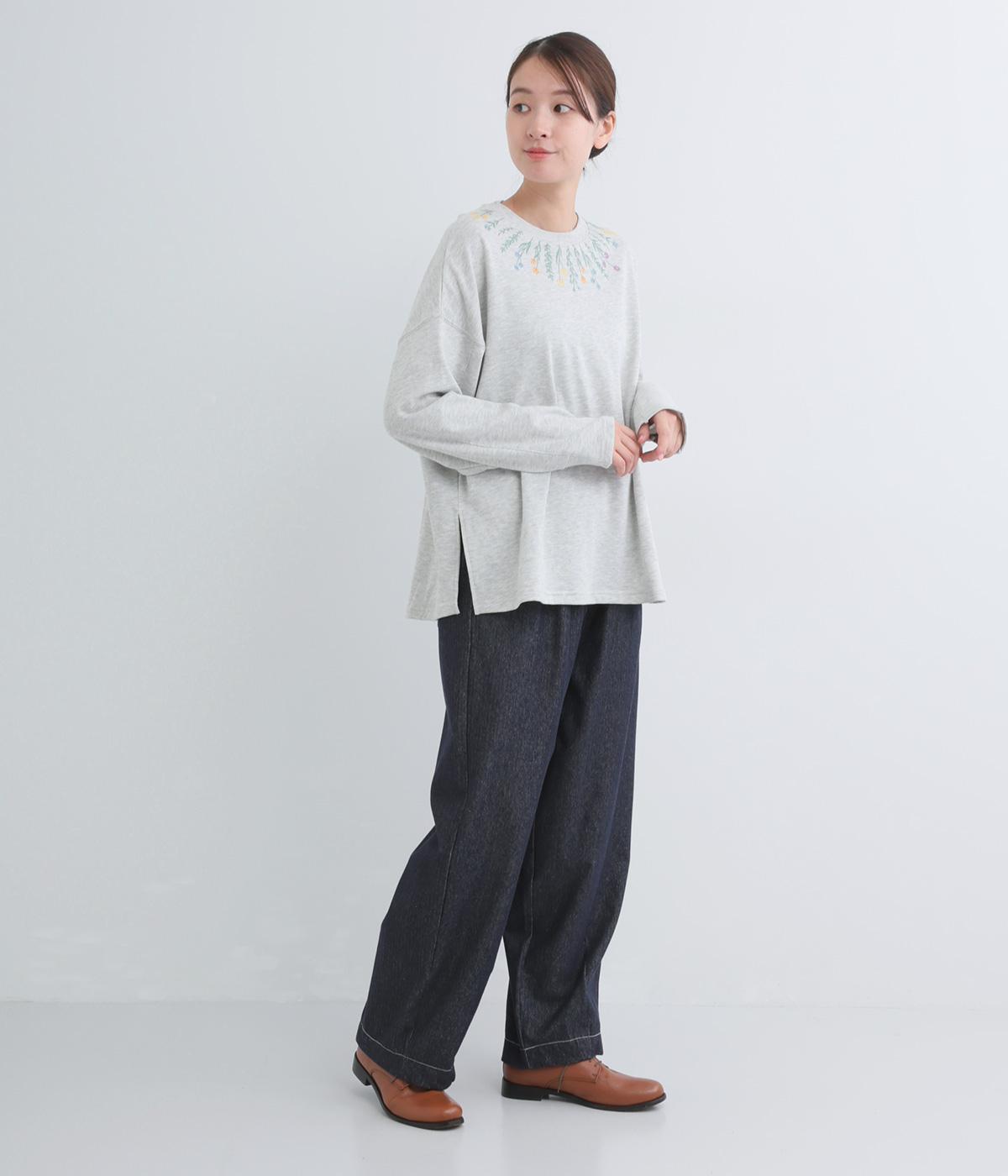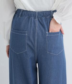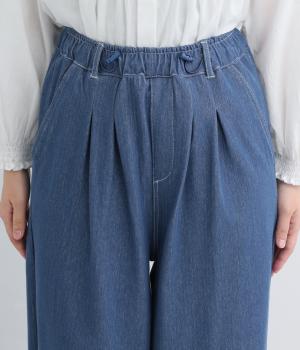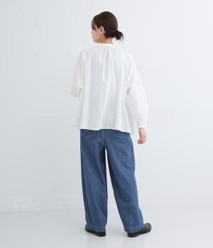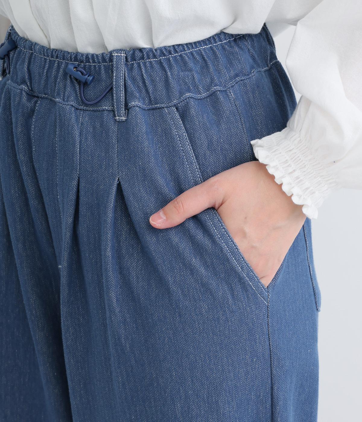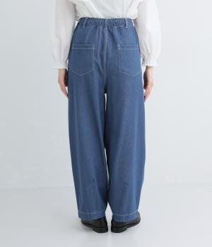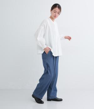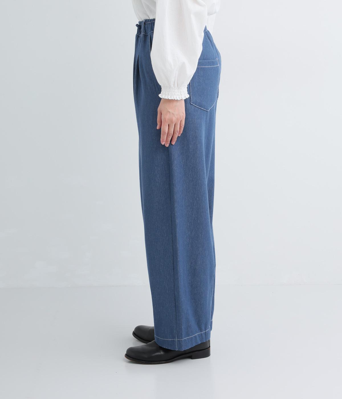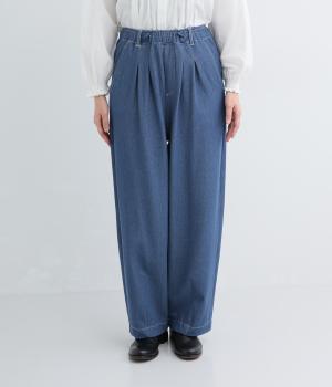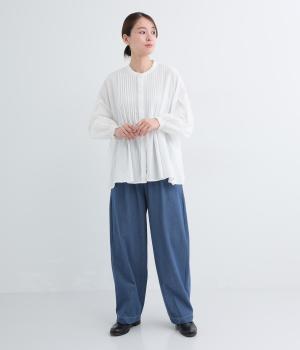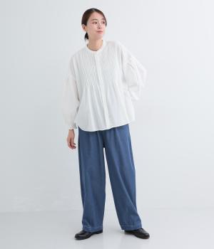 タックがストンとしたストレートシルエットをつくる、ほどよいワイド幅のパンツです。ウエストは総ゴム仕様でドロスト紐で調節できます。ナチュラルな風合いとエレガントさを両立する素材の魅力を存分に楽しめる一着です。