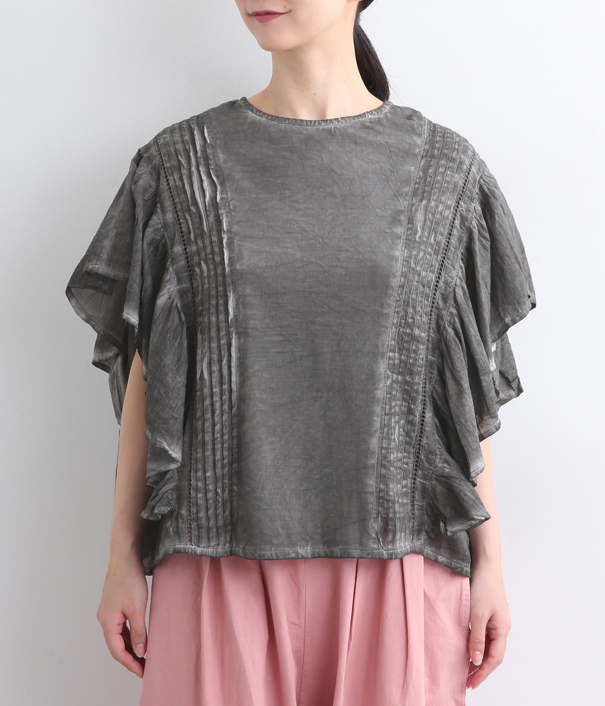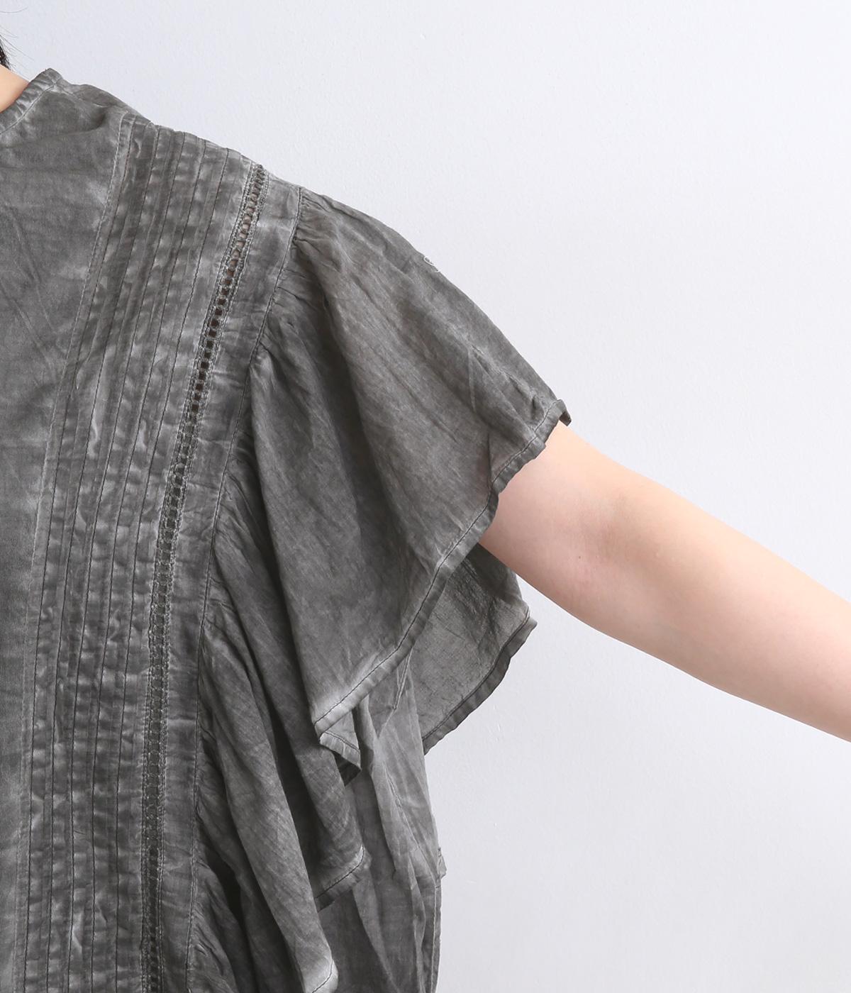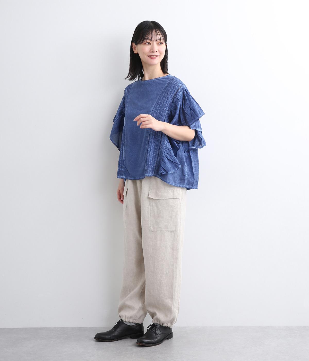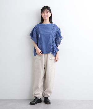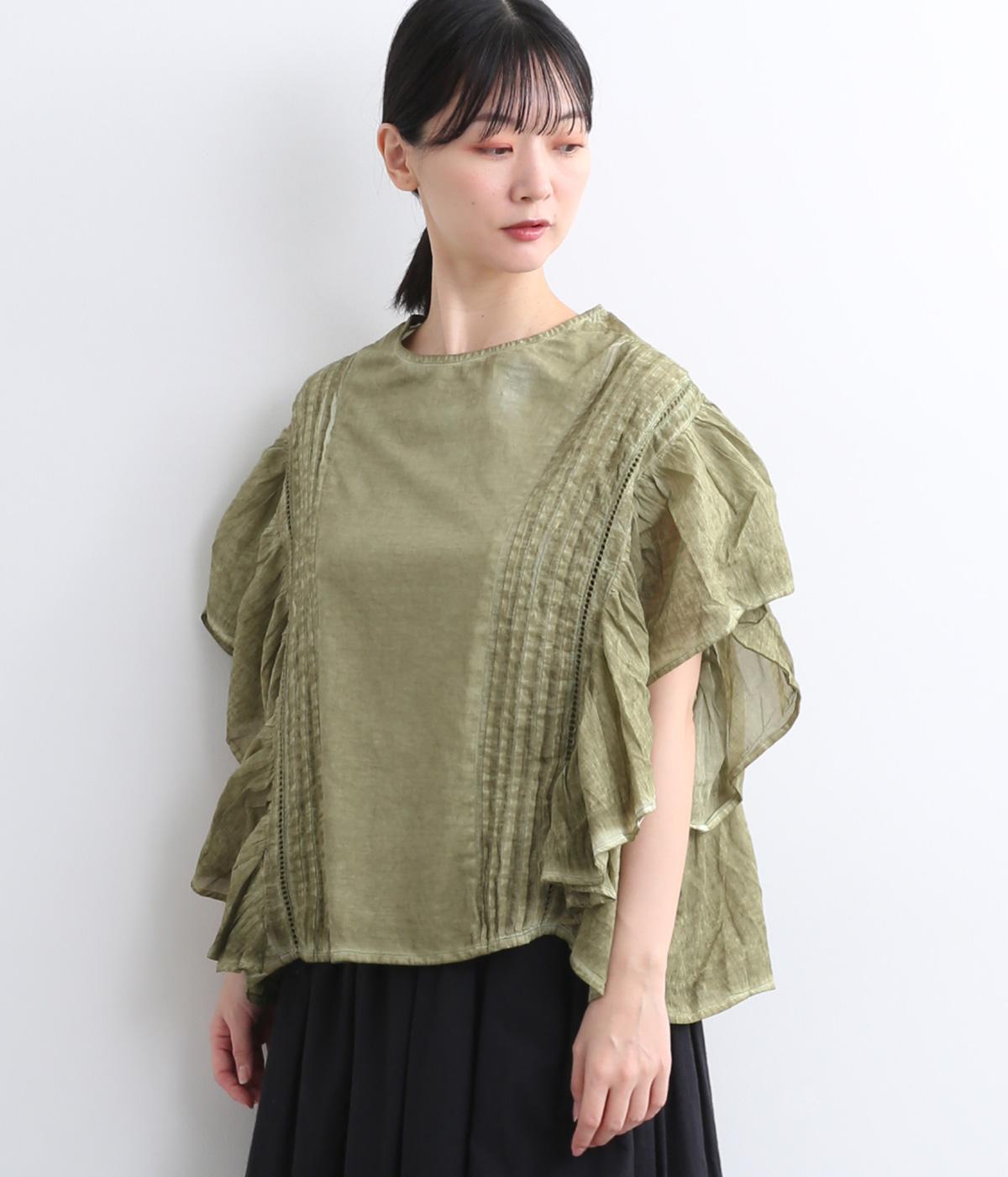 ガーリーテイストをふんだんに盛り込みつつ、雰囲気のいい生地でこなれ感ある一枚に仕上げました。身幅にゆとりがあるので着心地も良く、風通しの良さもポイント。後ろのゴムシャーリングが頭の通りをスムーズにしてくれます。