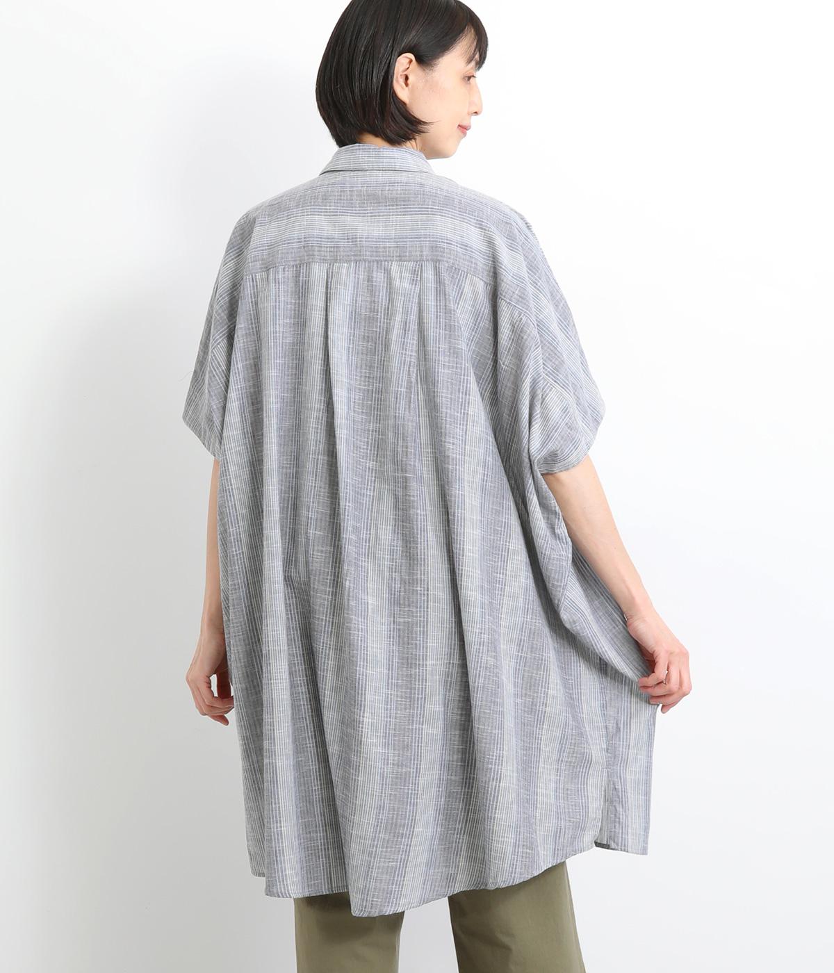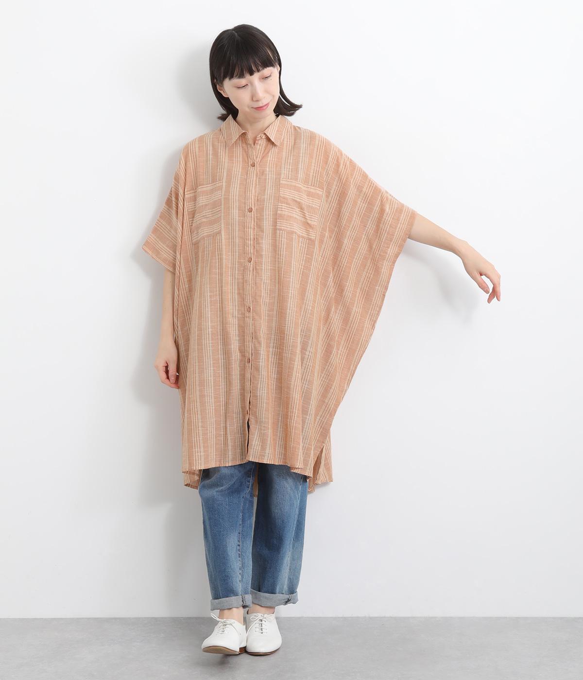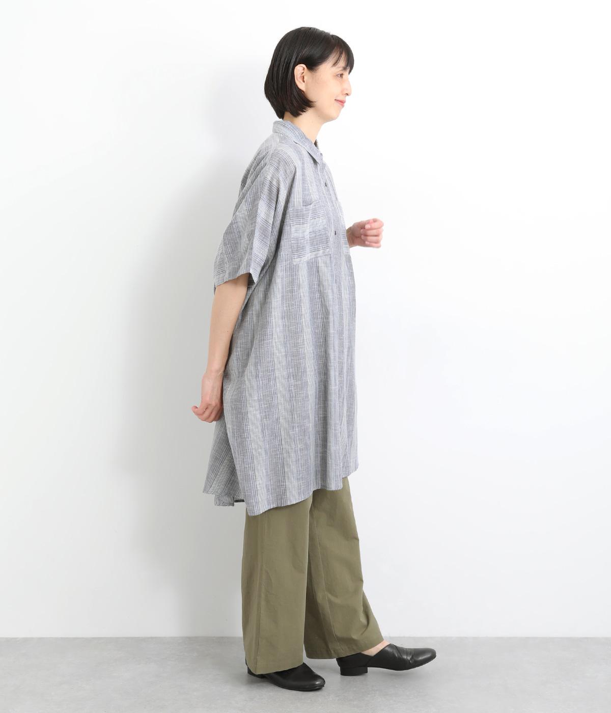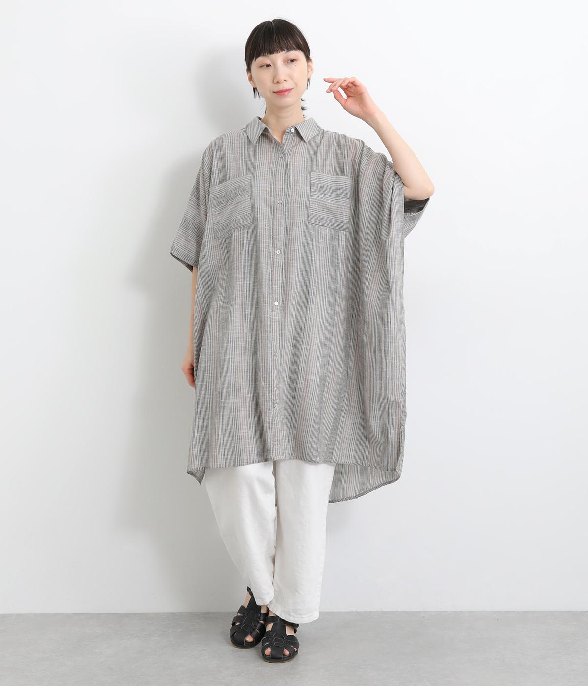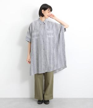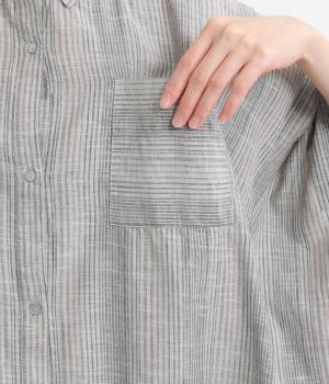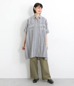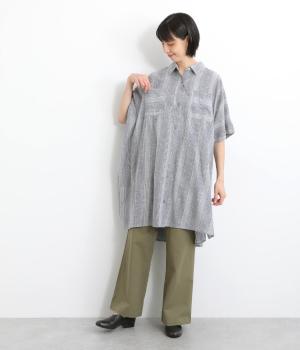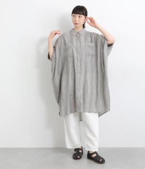 ポンチョのようにゆったりとしたボックスシルエットが目を惹く一枚。着丈は軽く前後差をつけ、サイドスリットで着こなしやすく仕立てました。羽織りにもなる前あき仕様で着まわし力も◎。両胸ポケットもポイントです。