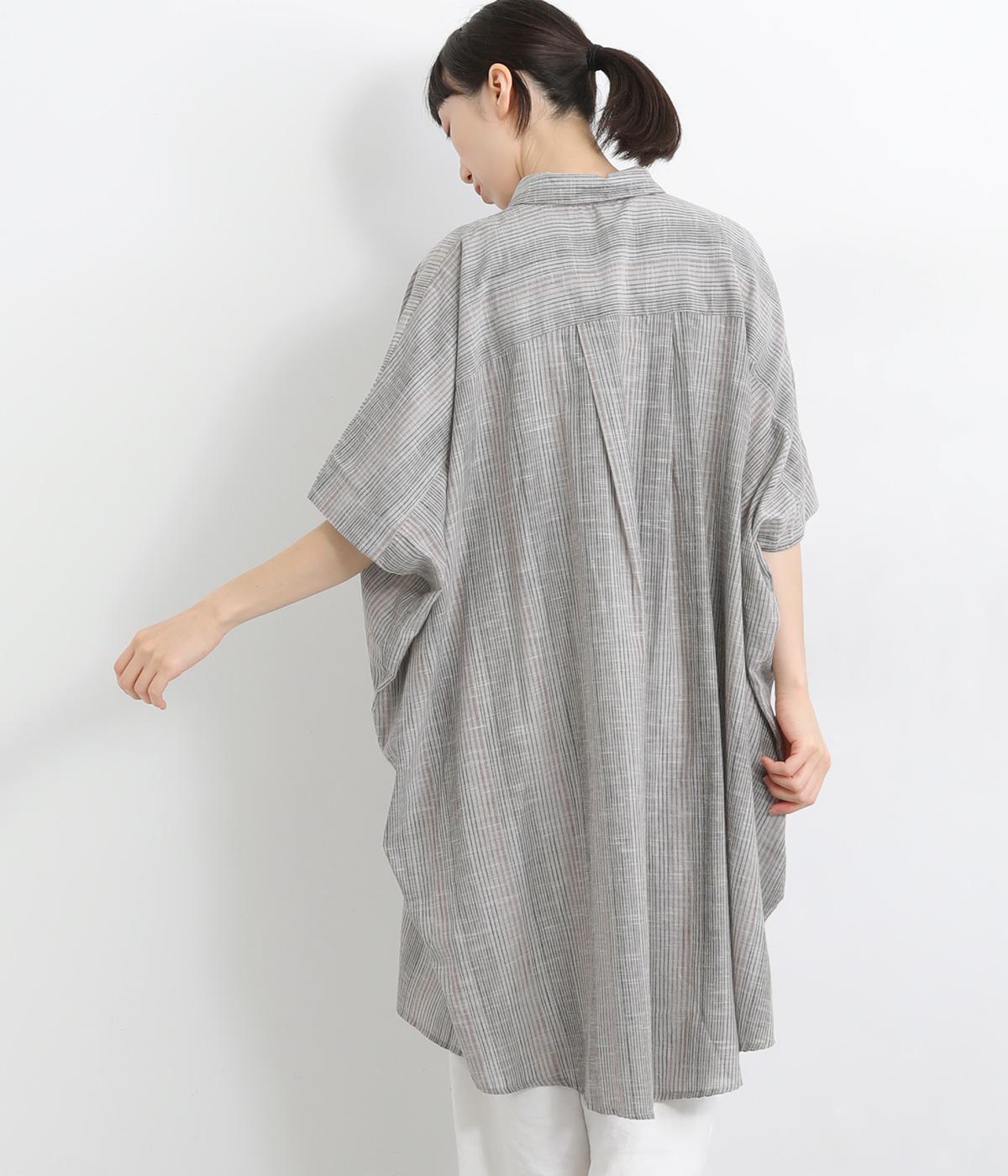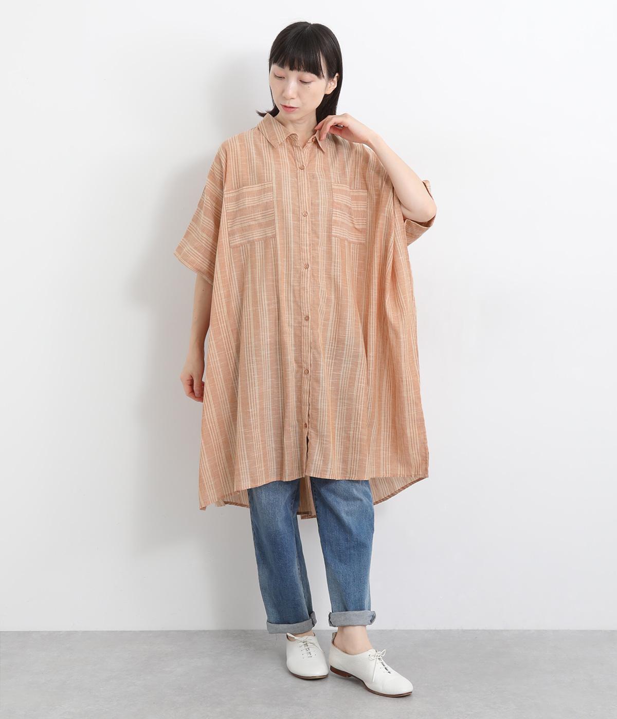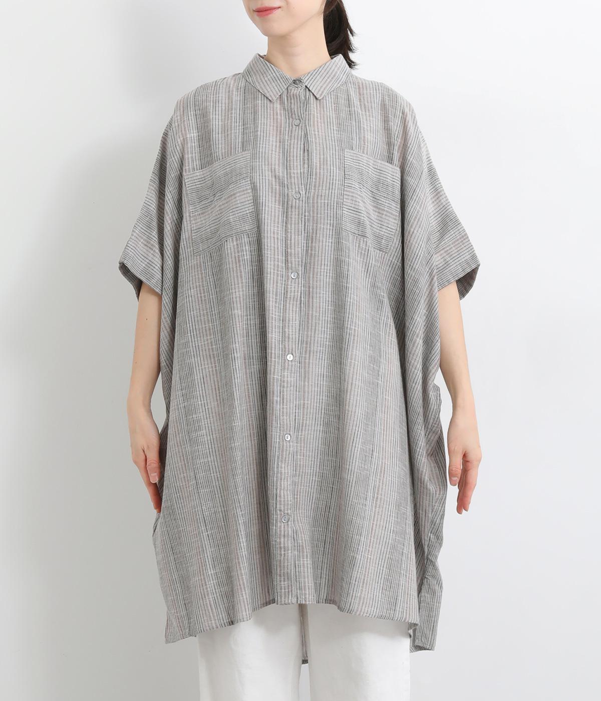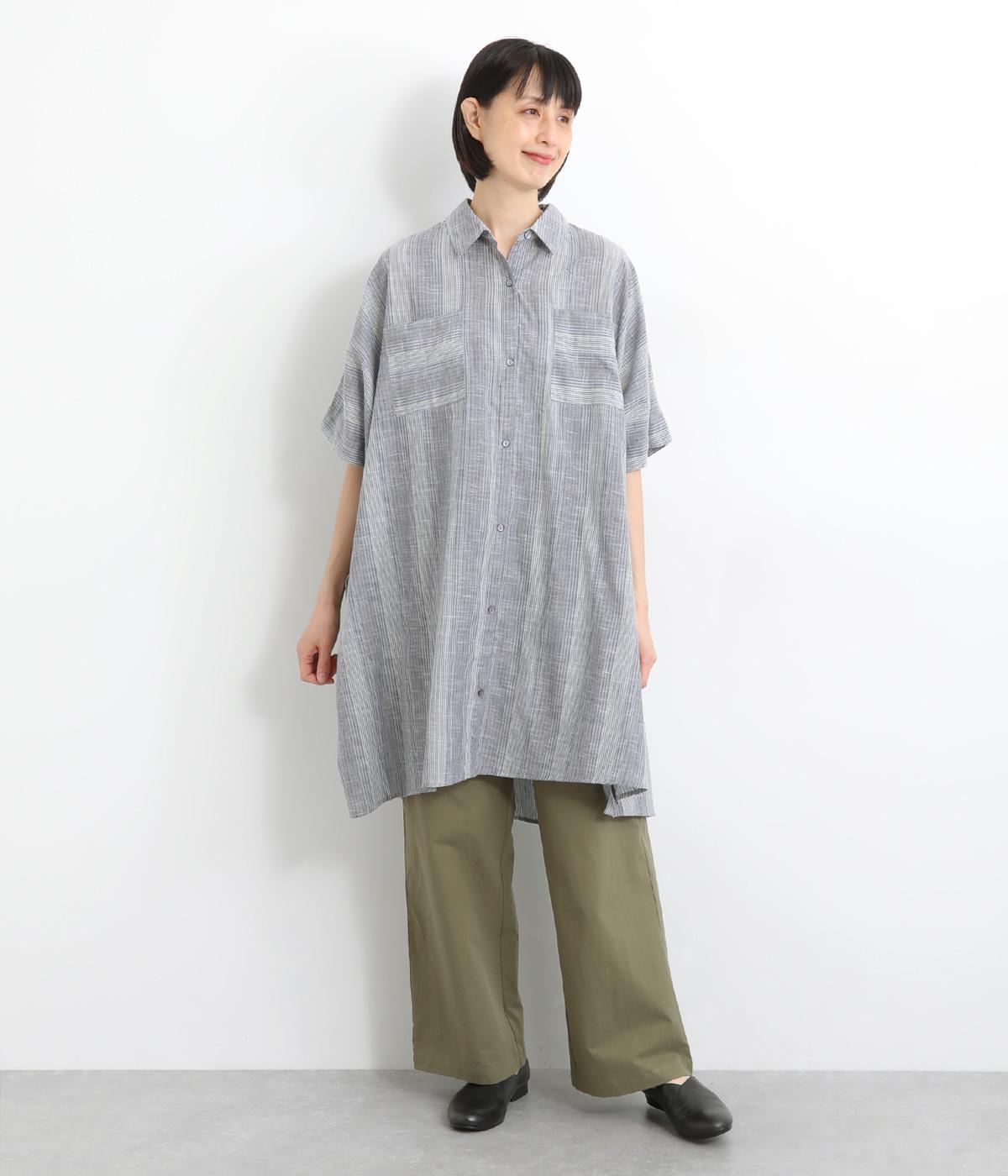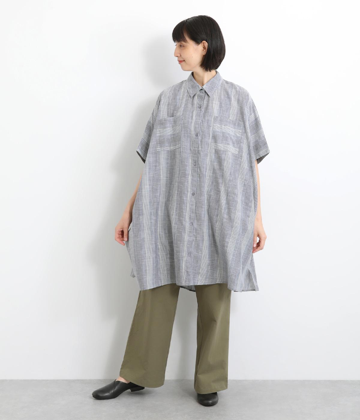 ポンチョのようにゆったりとしたボックスシルエットが目を惹く一枚。着丈は軽く前後差をつけ、サイドスリットで着こなしやすく仕立てました。羽織りにもなる前あき仕様で着まわし力も◎。両胸ポケットもポイントです。