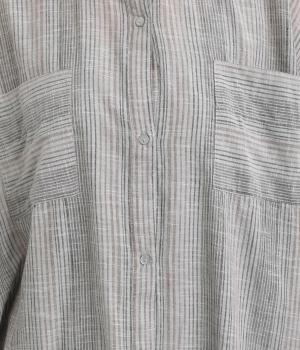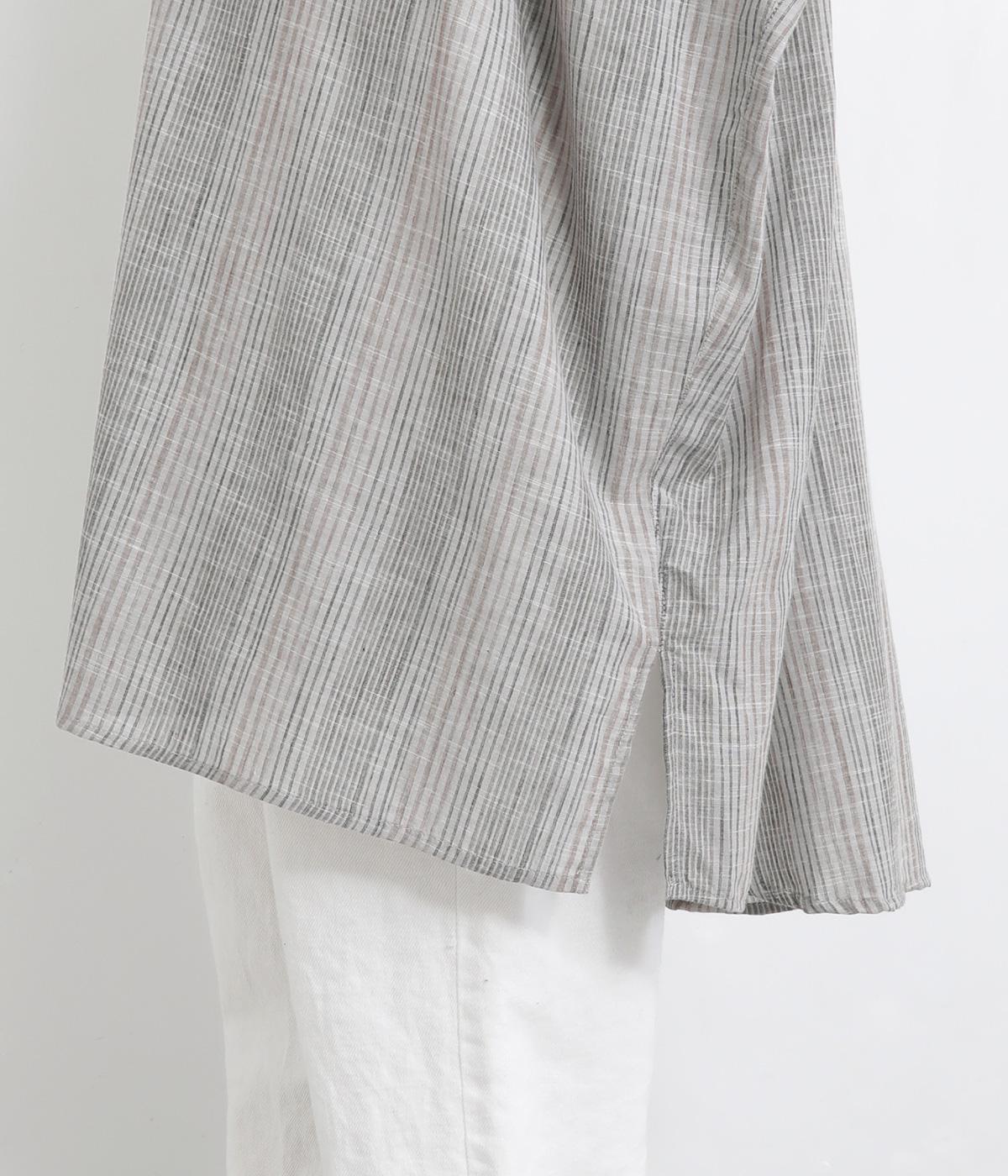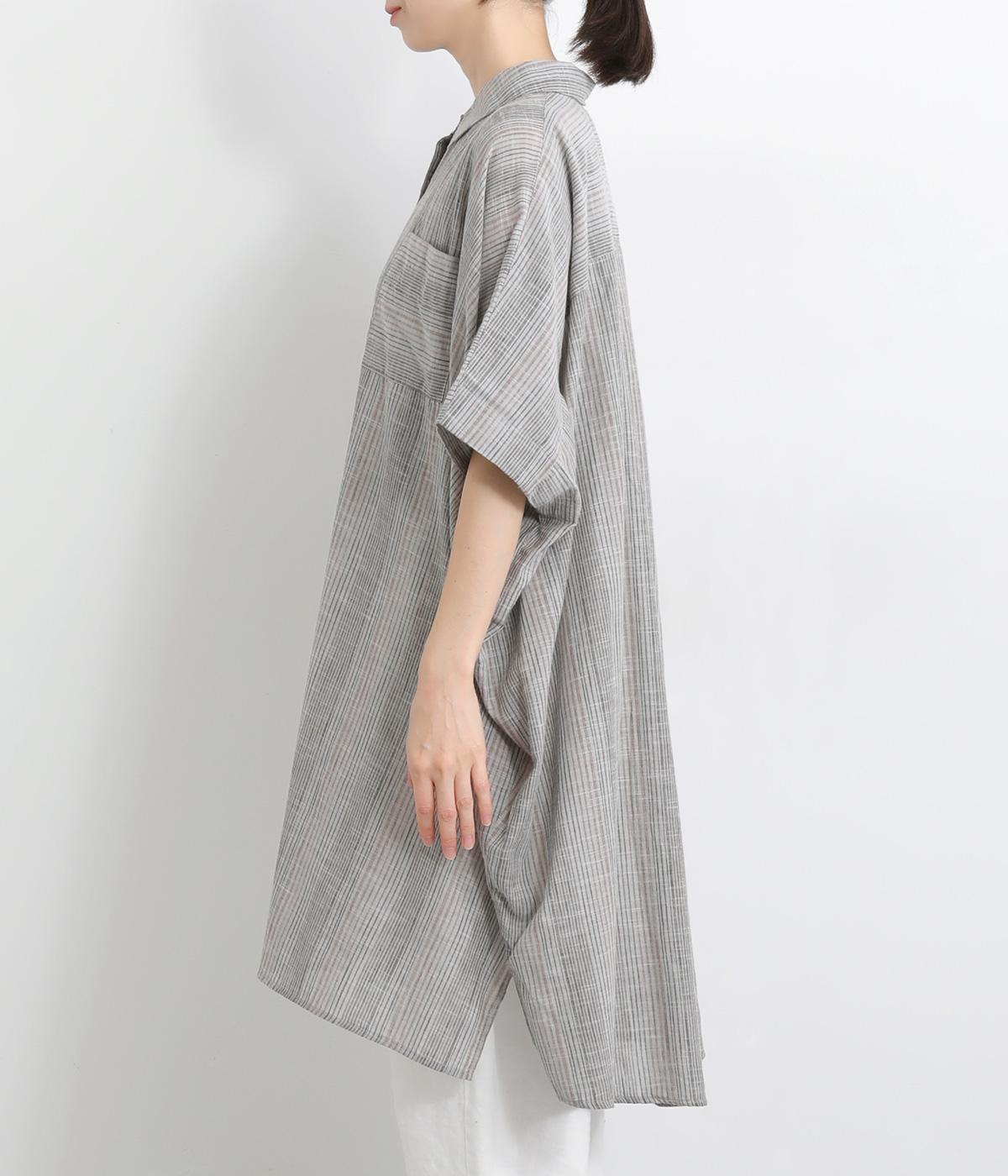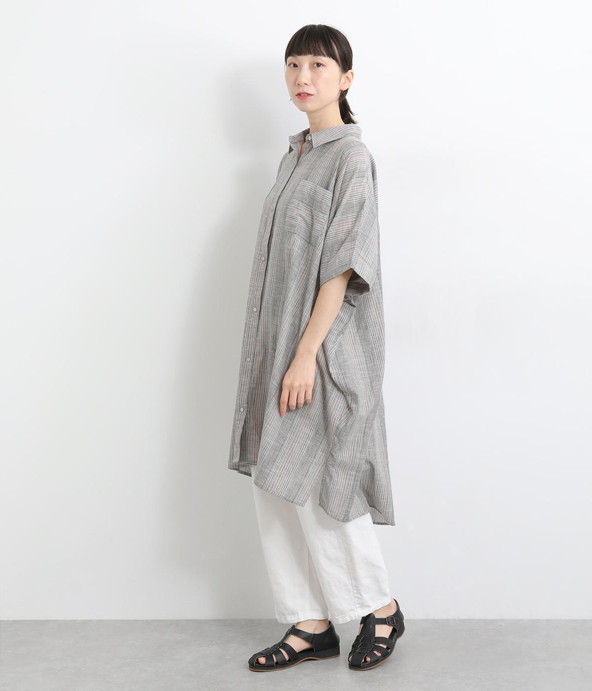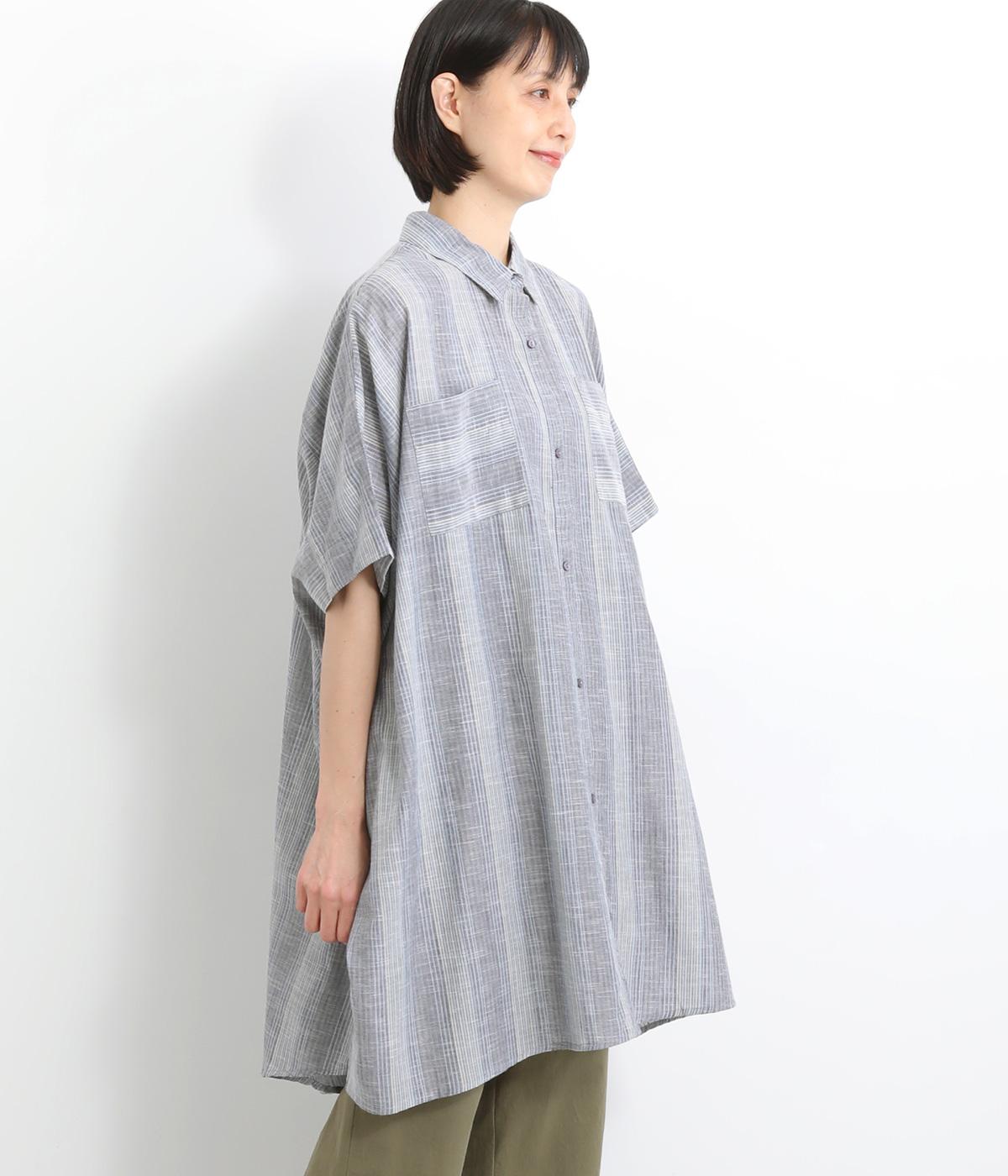 ポンチョのようにゆったりとしたボックスシルエットが目を惹く一枚。着丈は軽く前後差をつけ、サイドスリットで着こなしやすく仕立てました。羽織りにもなる前あき仕様で着まわし力も◎。両胸ポケットもポイントです。