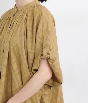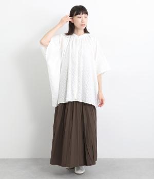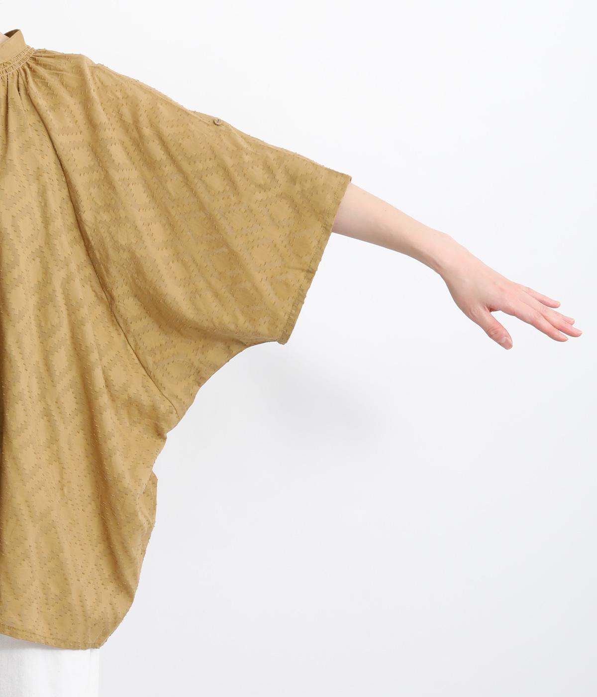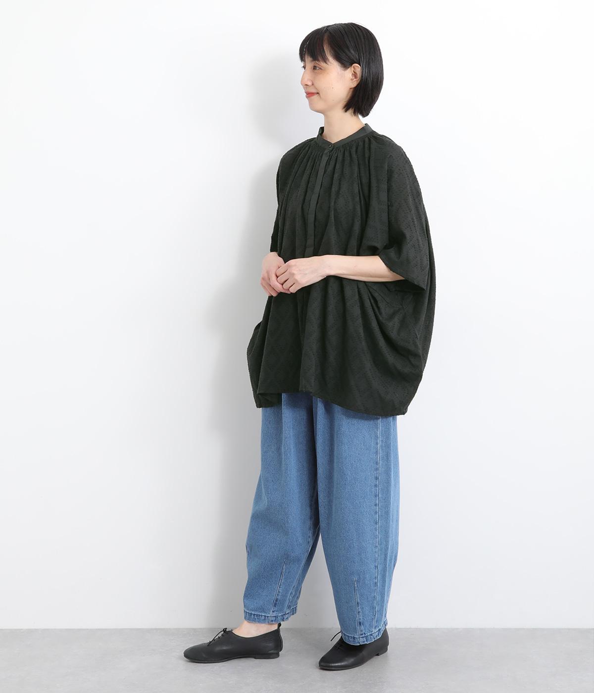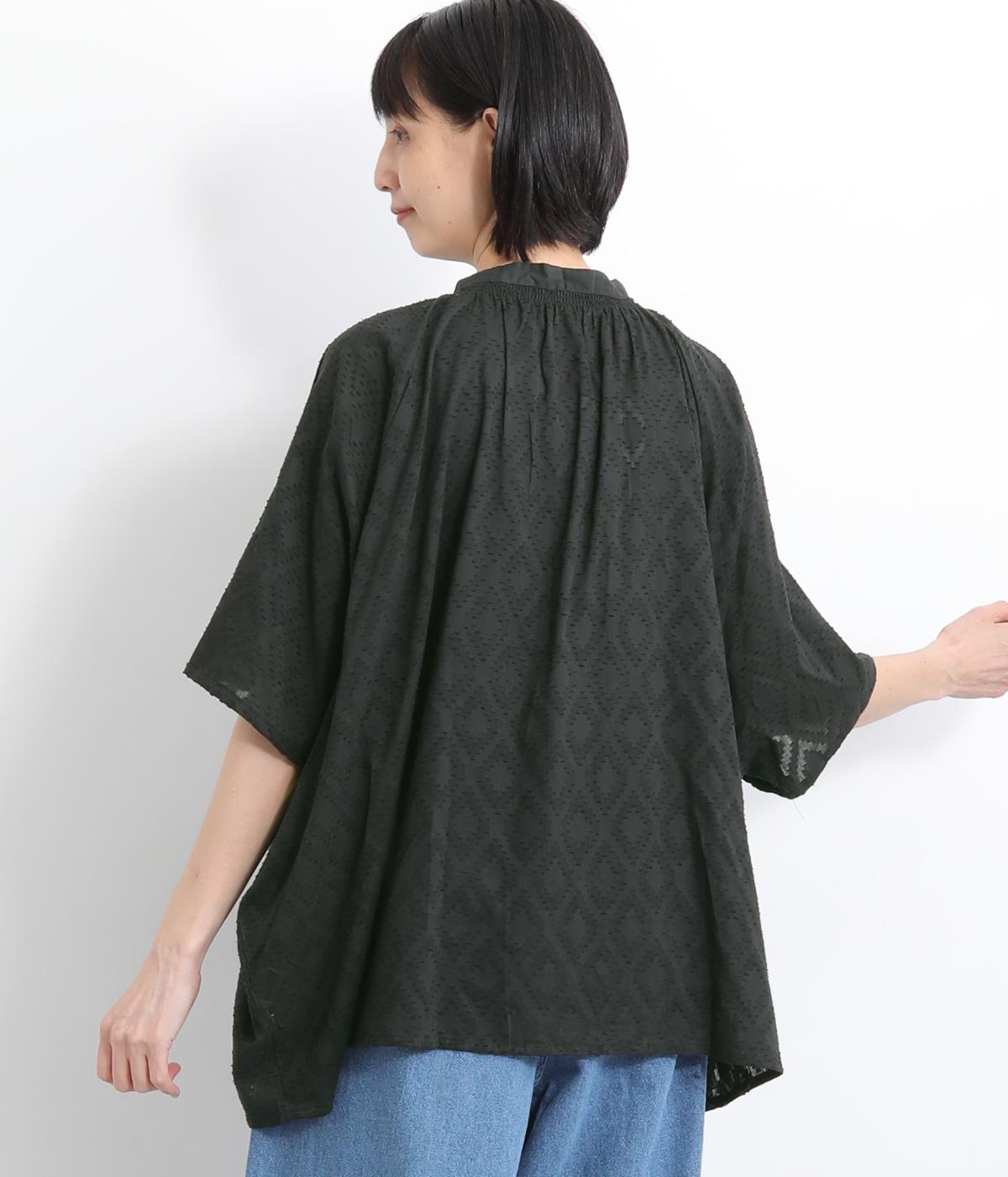 ベースの生地に糸を織りこむことで独特の凹凸が表現された、印象的なダイヤ柄のコットンドビー生地を採用。適度な凹凸感で肌にまとわりつきにくく、さらっと着用できるのがグッドポイント。